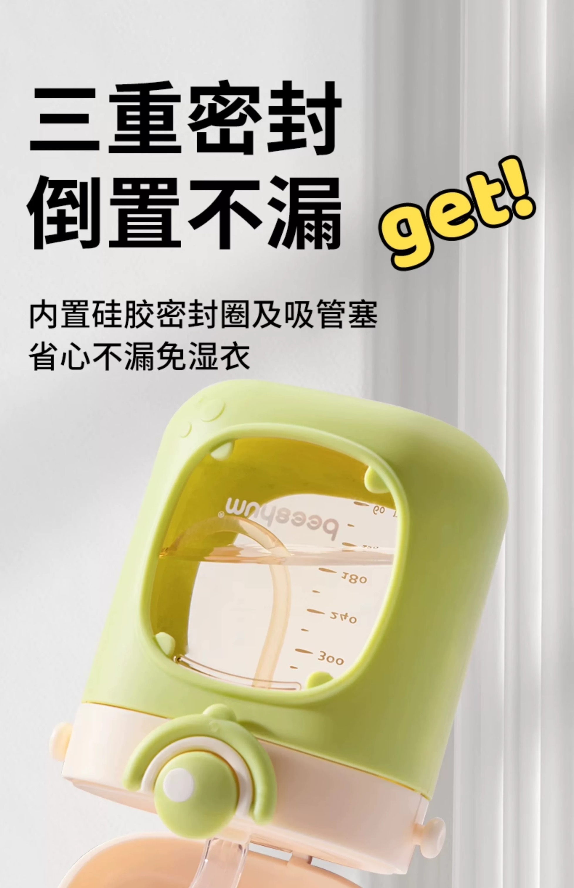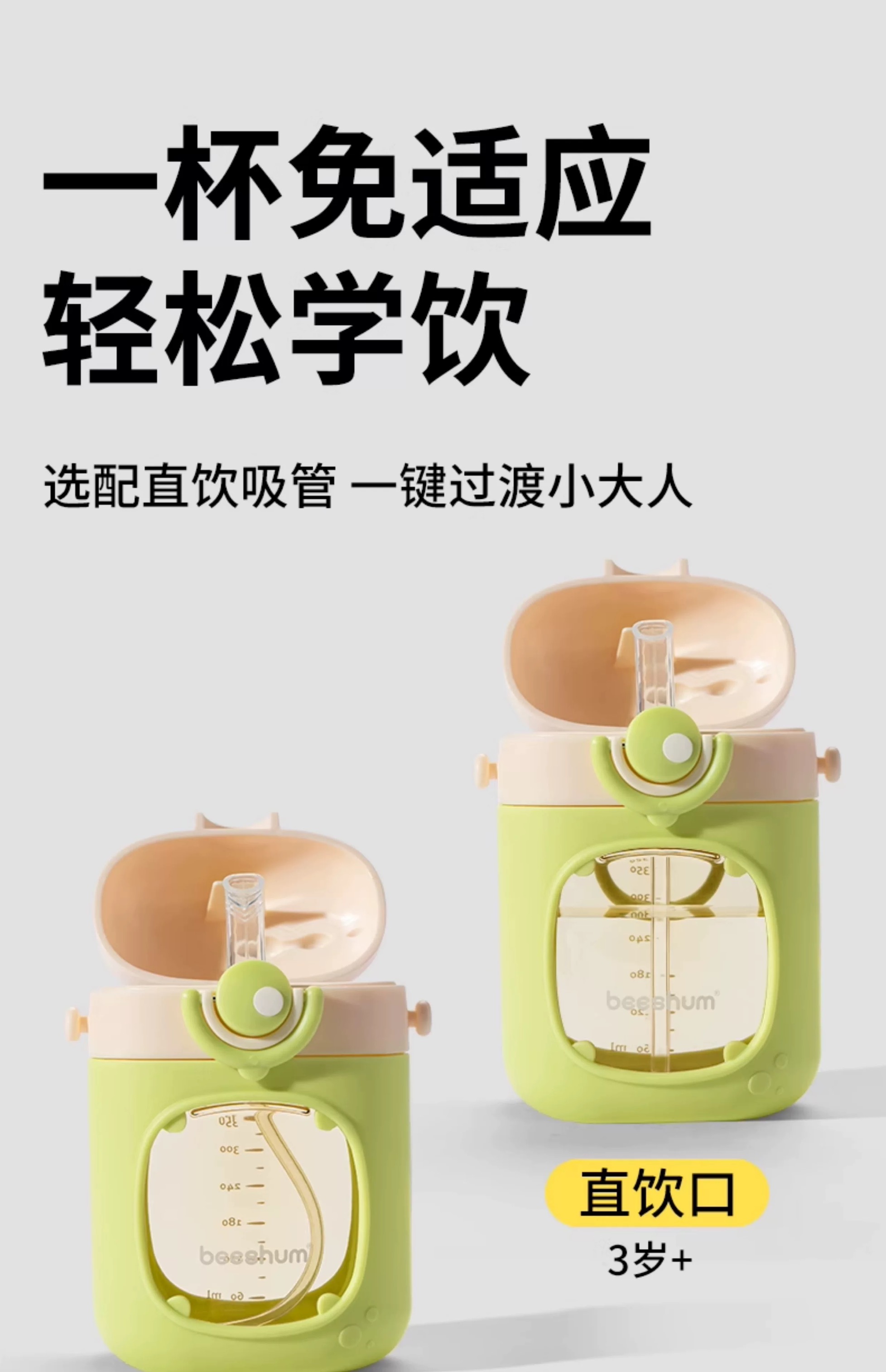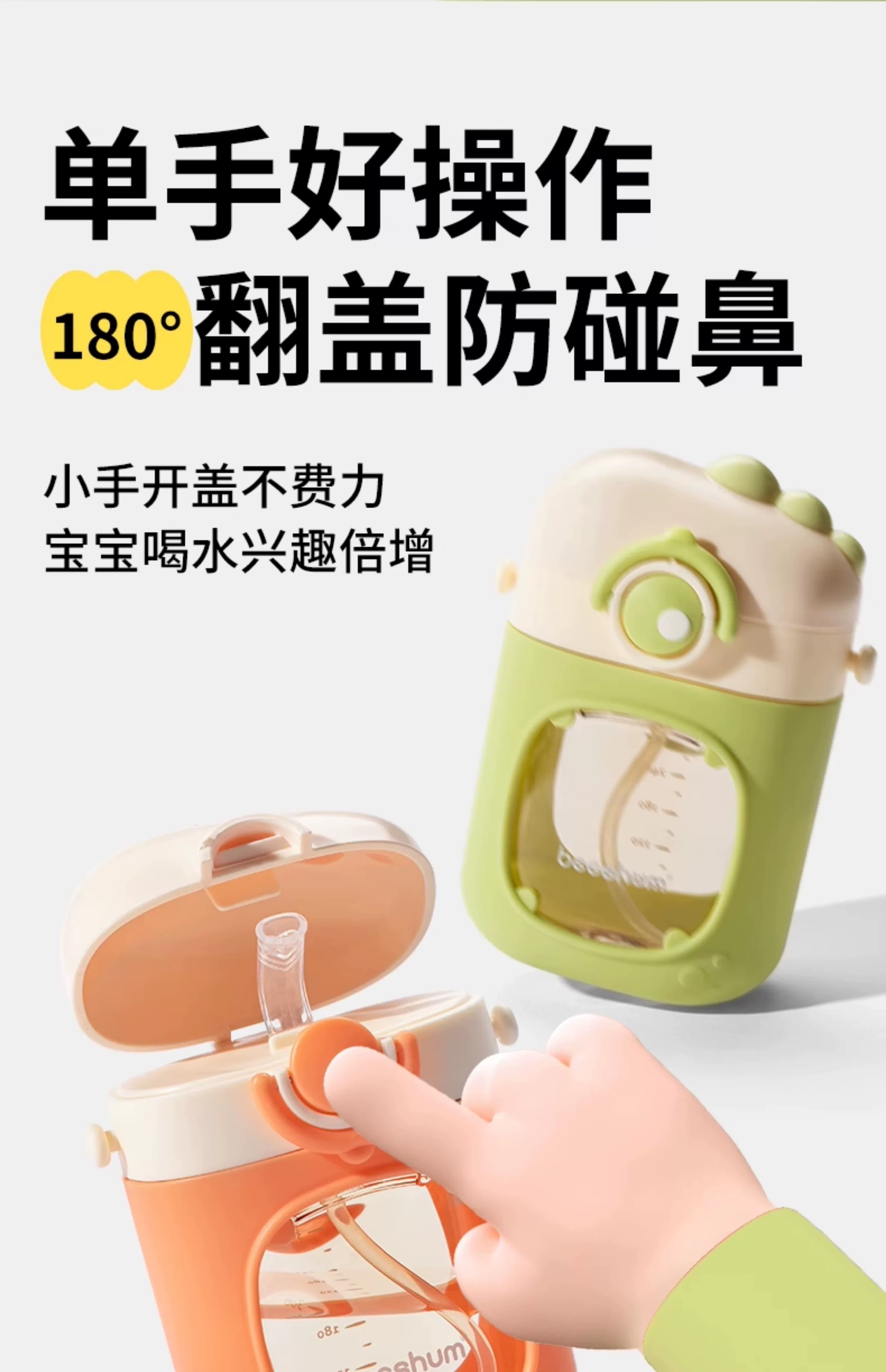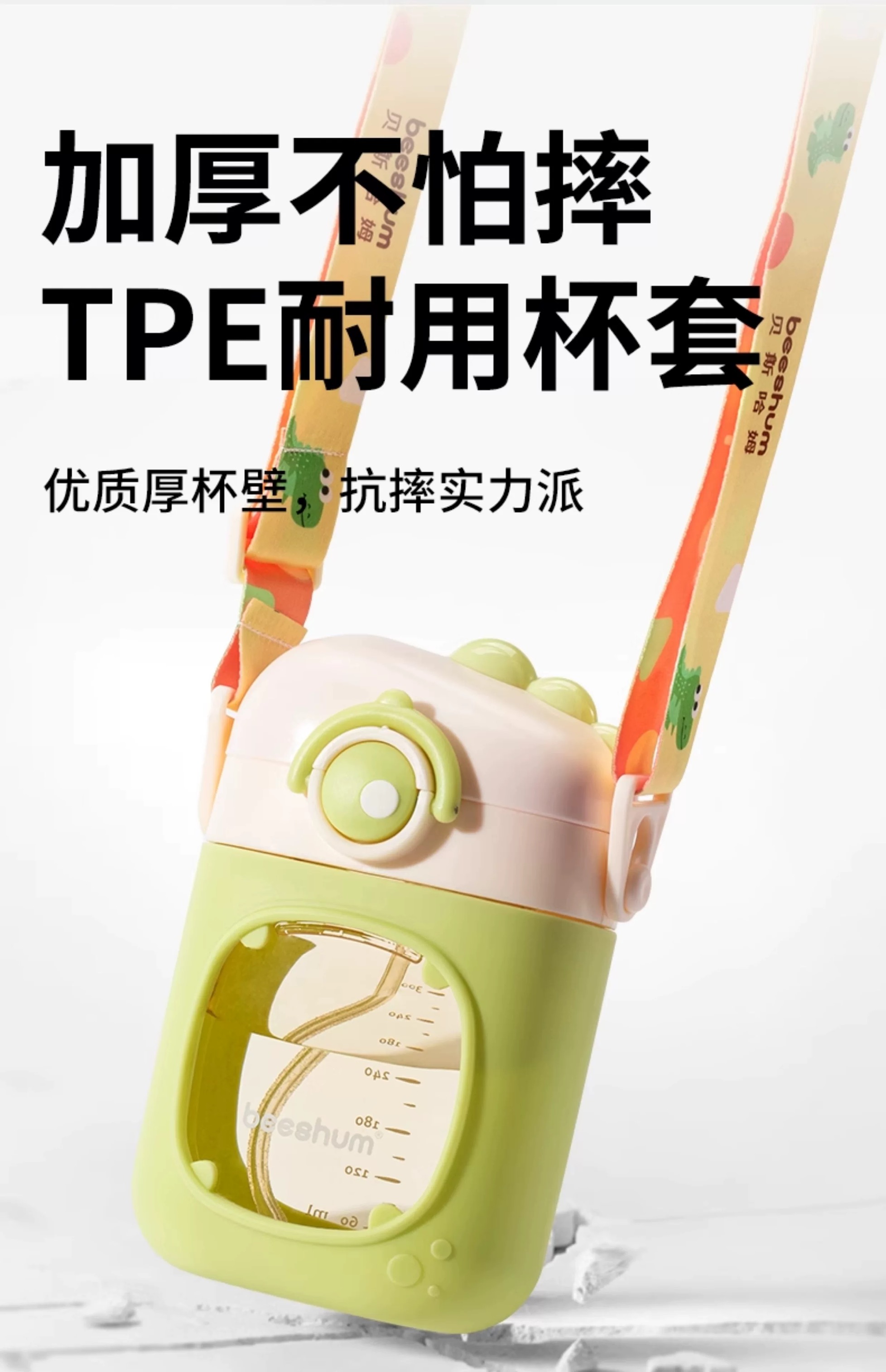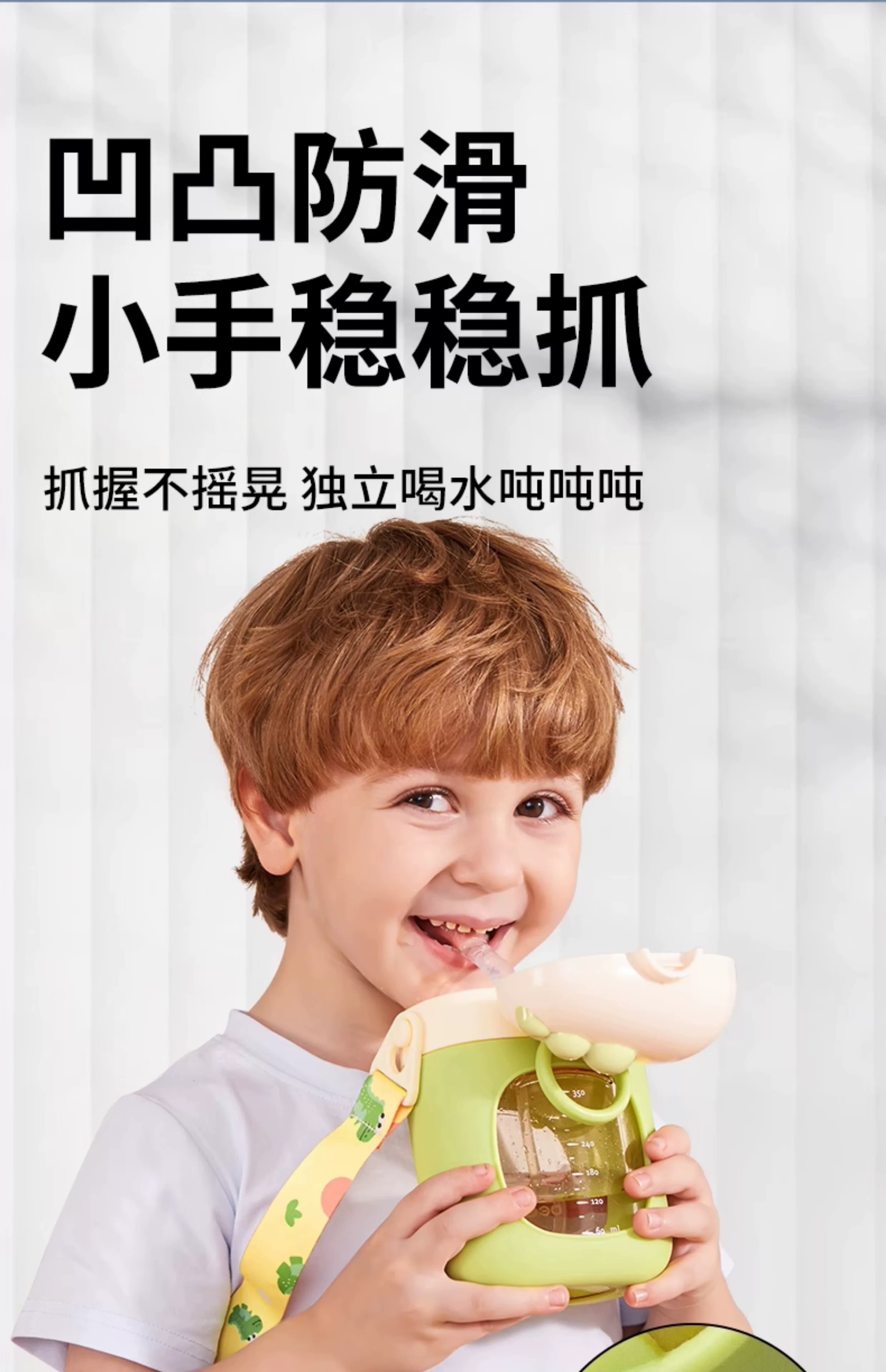 beeshum探险龙儿童水杯幼儿园外出防摔吸管学饮杯宝宝直饮喝水杯