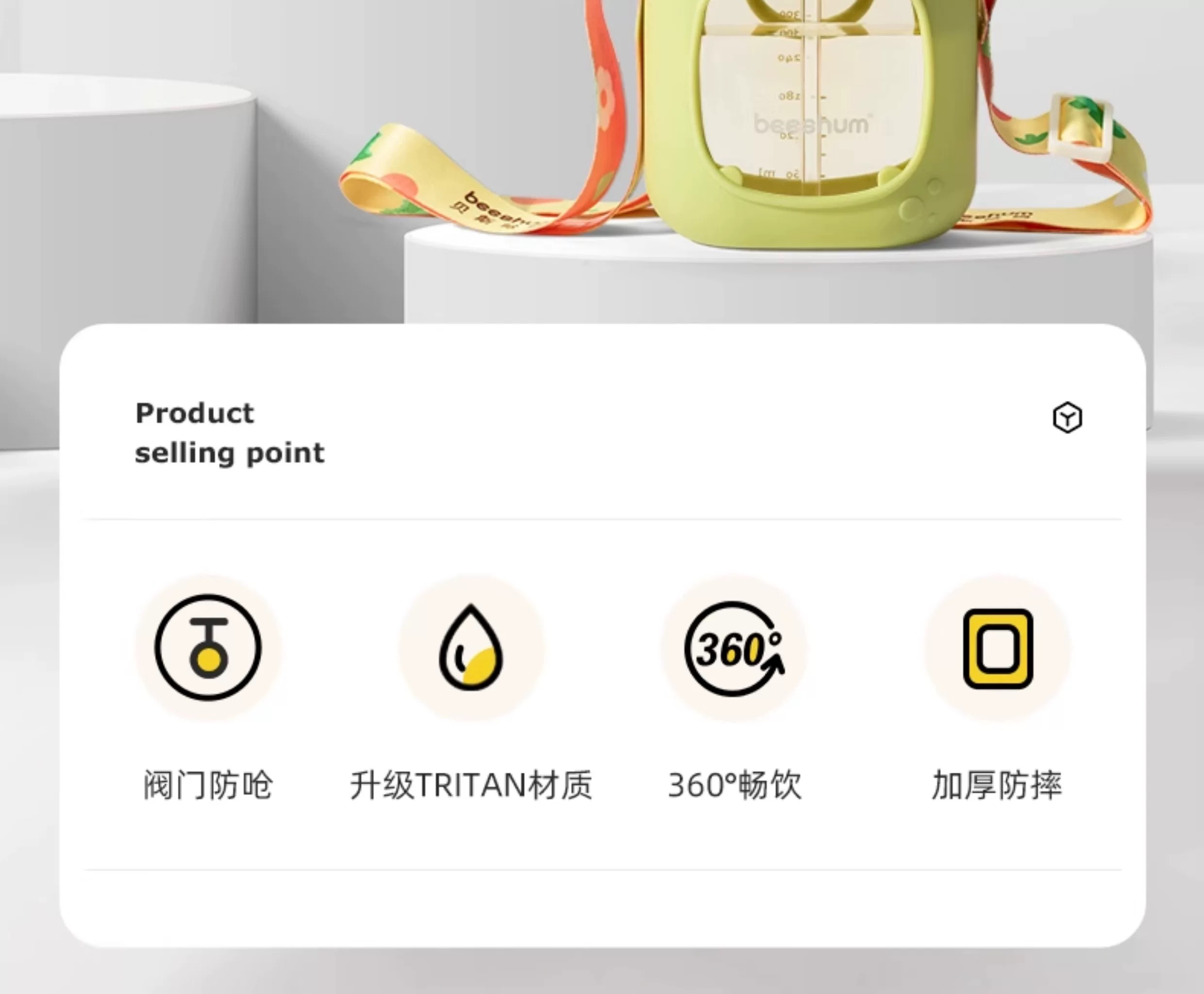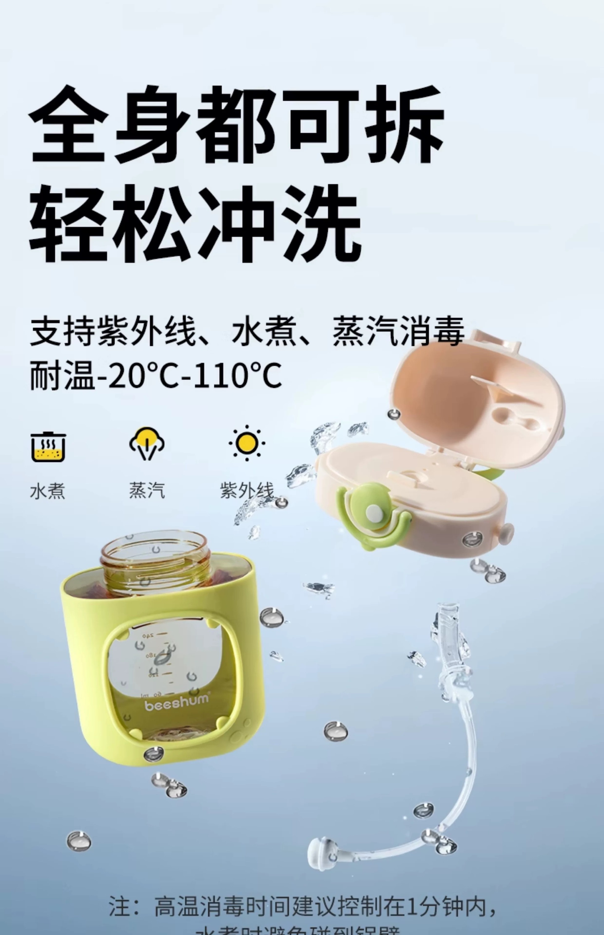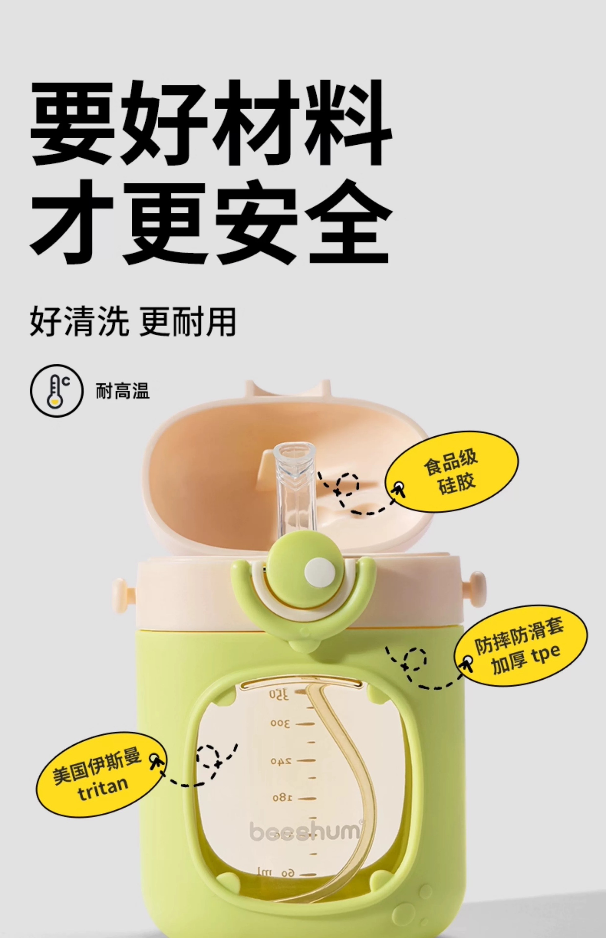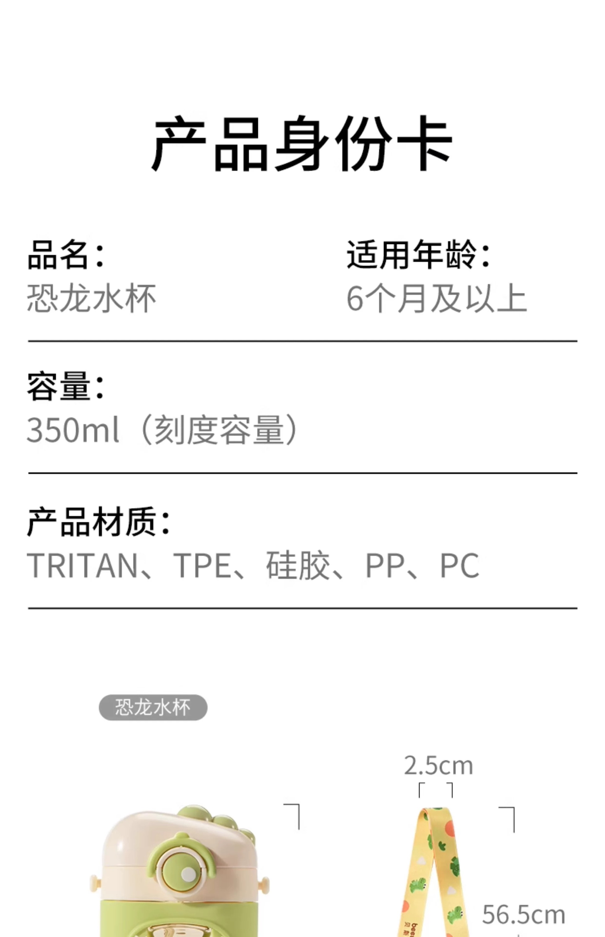 beeshum探险龙儿童水杯幼儿园外出防摔吸管学饮杯宝宝直饮喝水杯