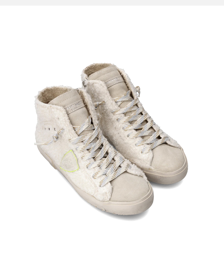 PHILIPPE MODEL 女士绒面革盾牌徽标休闲运动鞋 米色 PRHD BB02