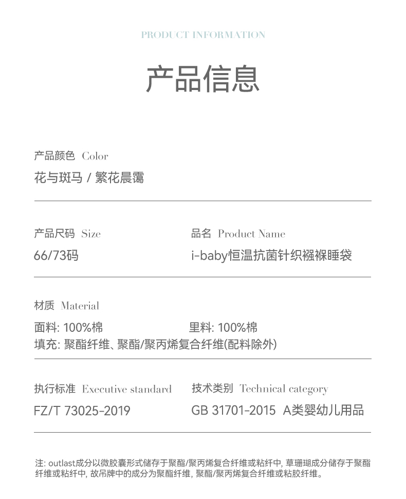 【秒杀59元】i-baby德国outlast宝宝恒温襁褓睡袋 新生儿防惊跳睡袋0-18个月婴儿防踢被【73码】