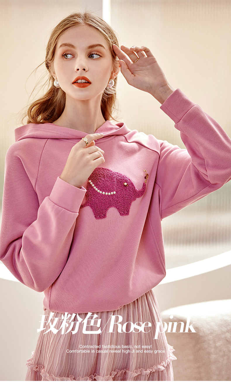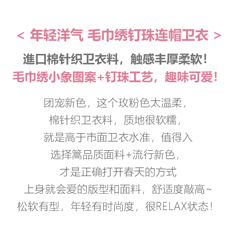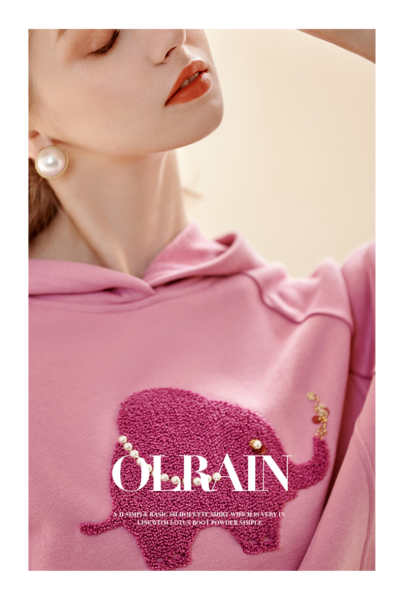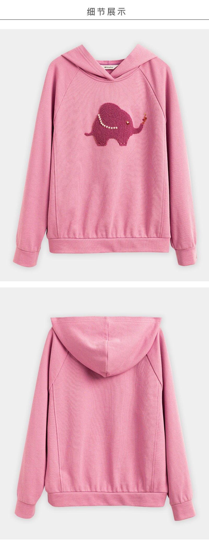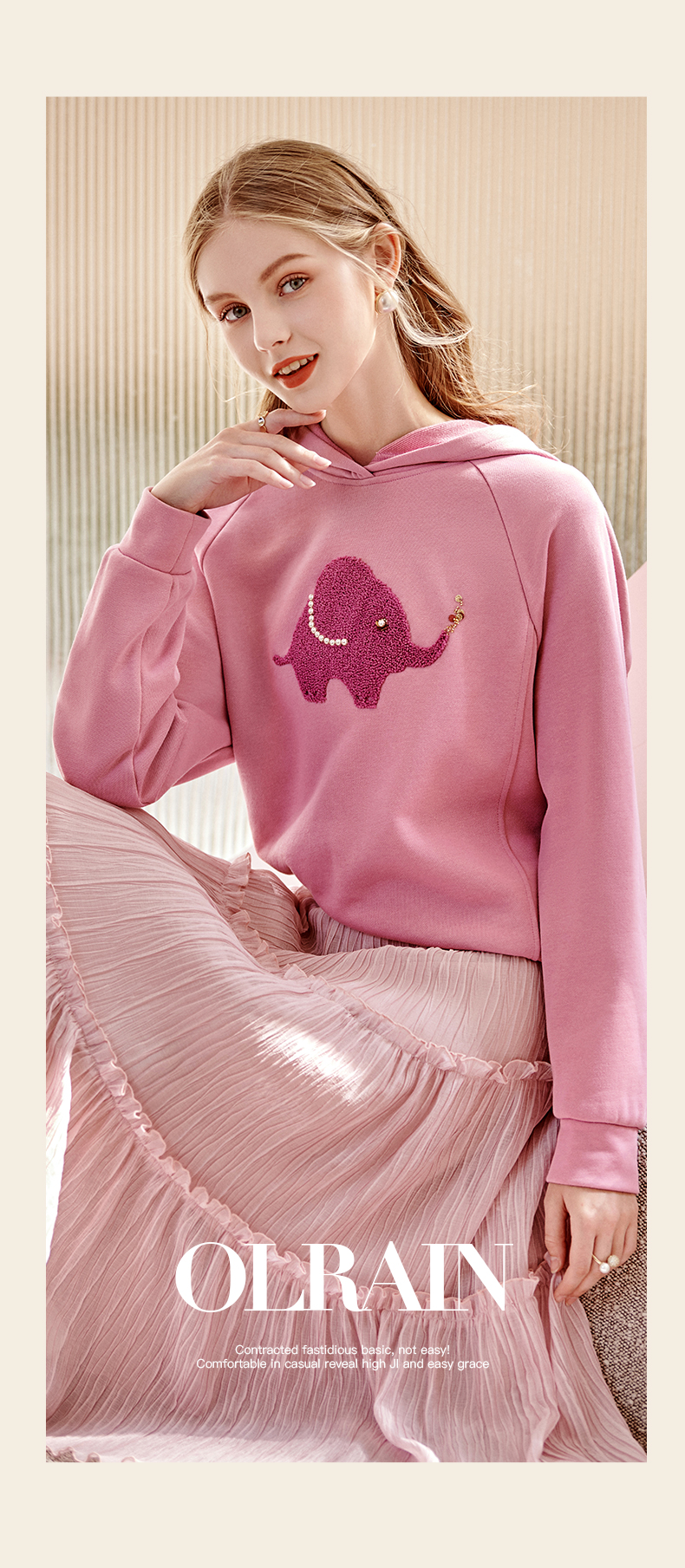 欧芮儿粉色卫衣女潮连帽2021新款春季刺绣宽松长袖小个子显瘦上衣