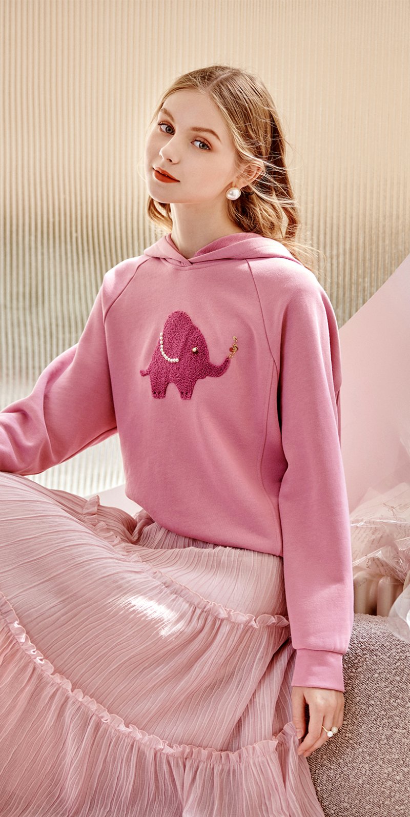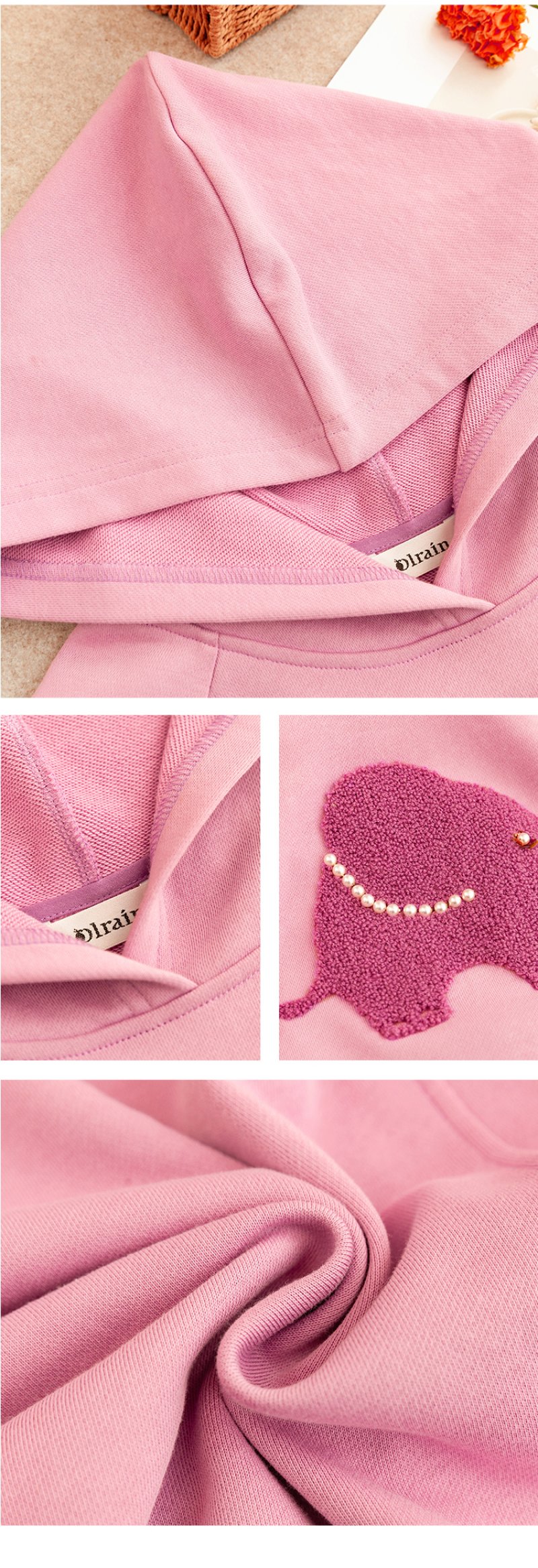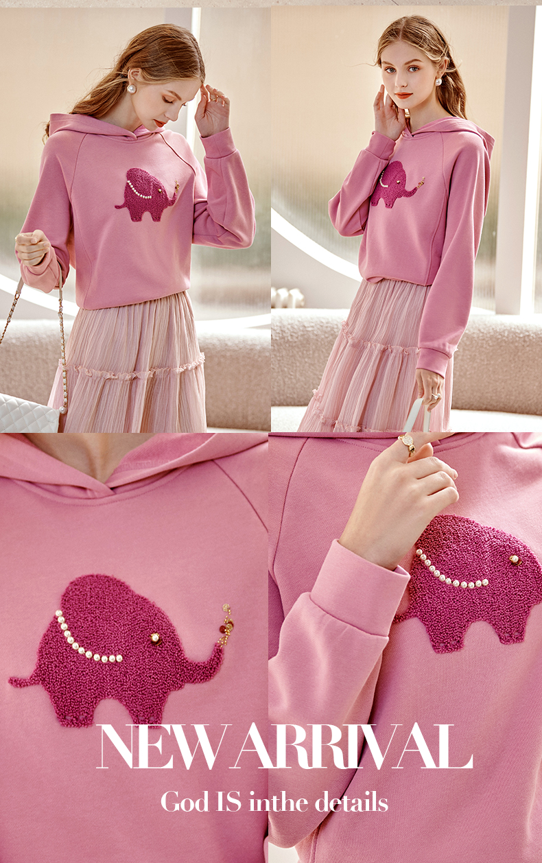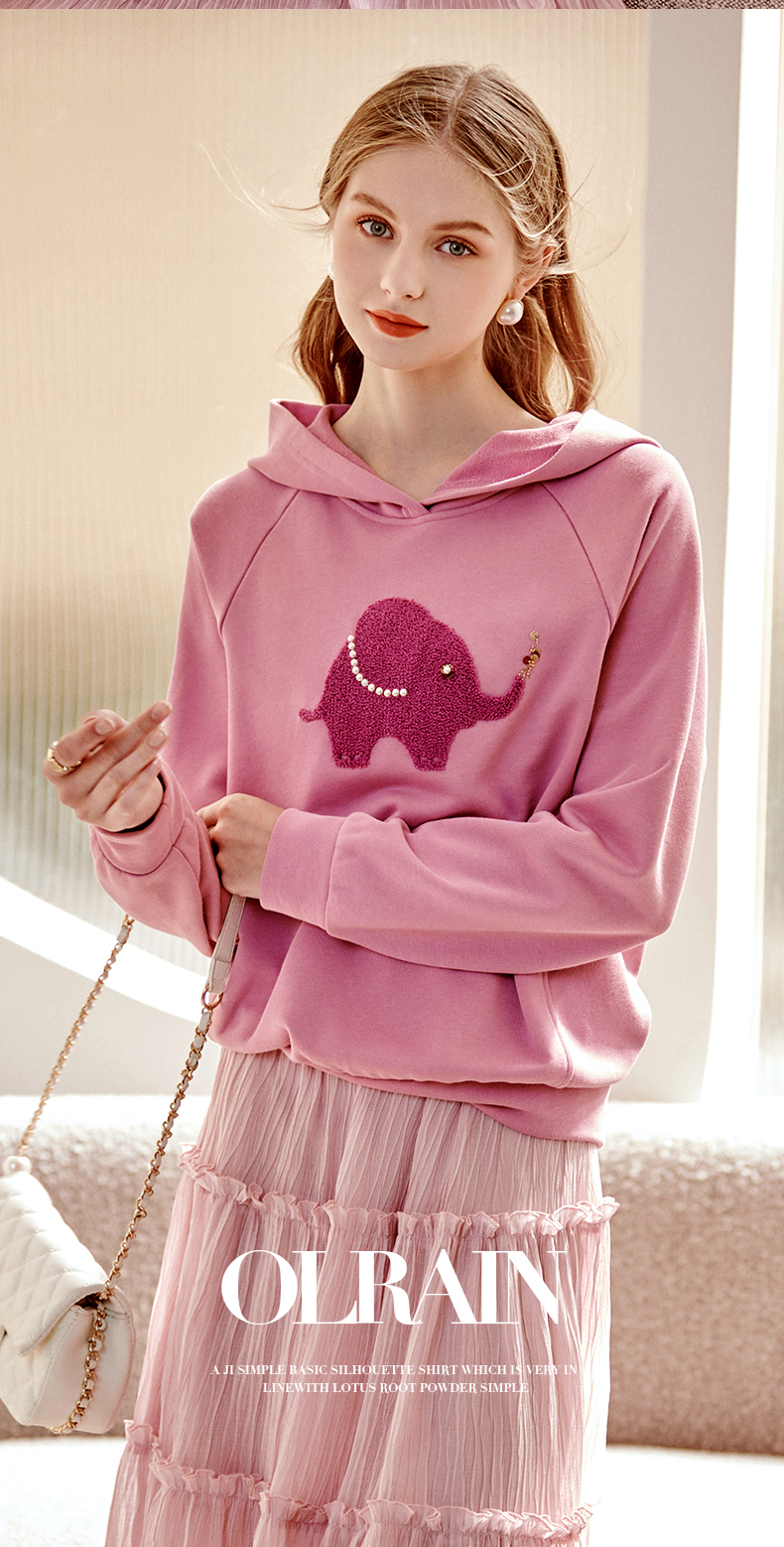 欧芮儿粉色卫衣女潮连帽2021新款春季刺绣宽松长袖小个子显瘦上衣