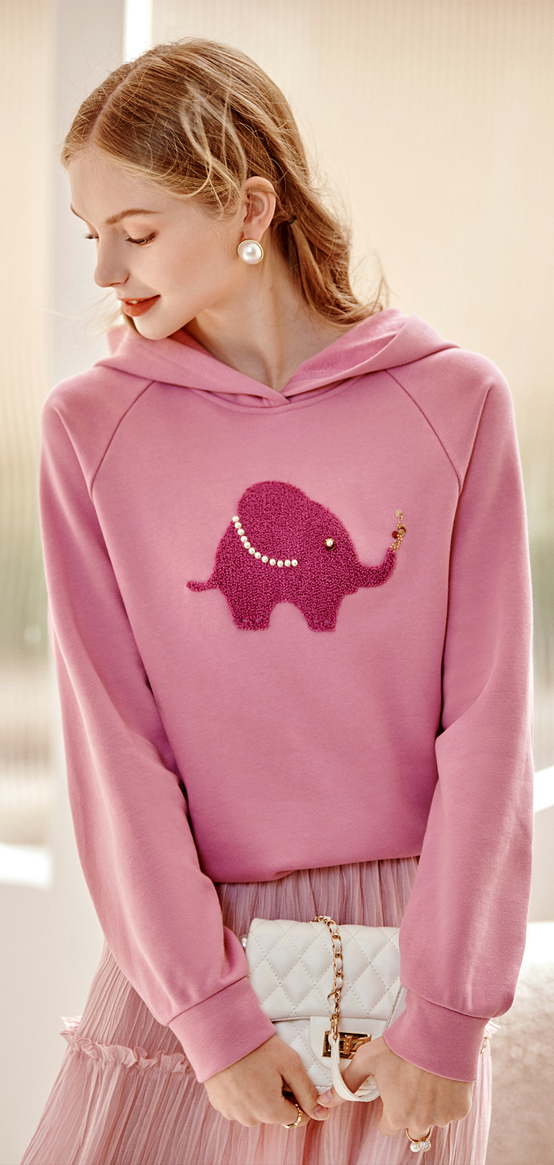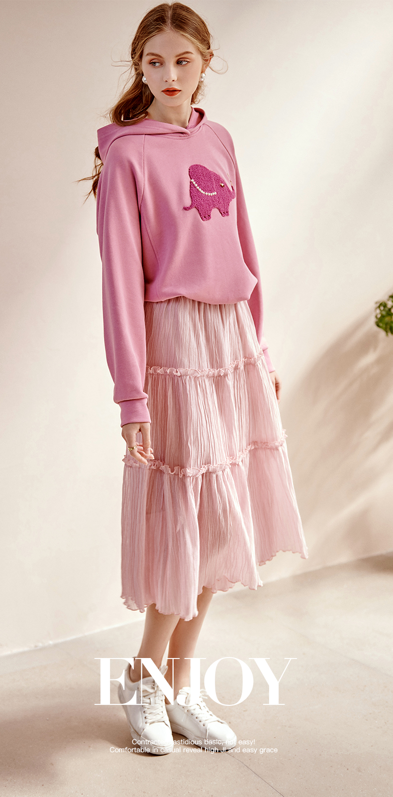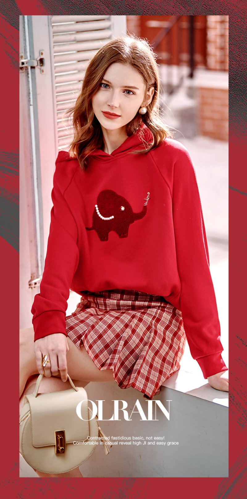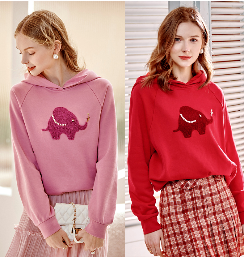 欧芮儿粉色卫衣女潮连帽2021新款春季刺绣宽松长袖小个子显瘦上衣