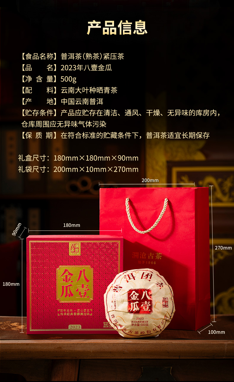 2023年八壹金瓜 熟茶 500克 2023年