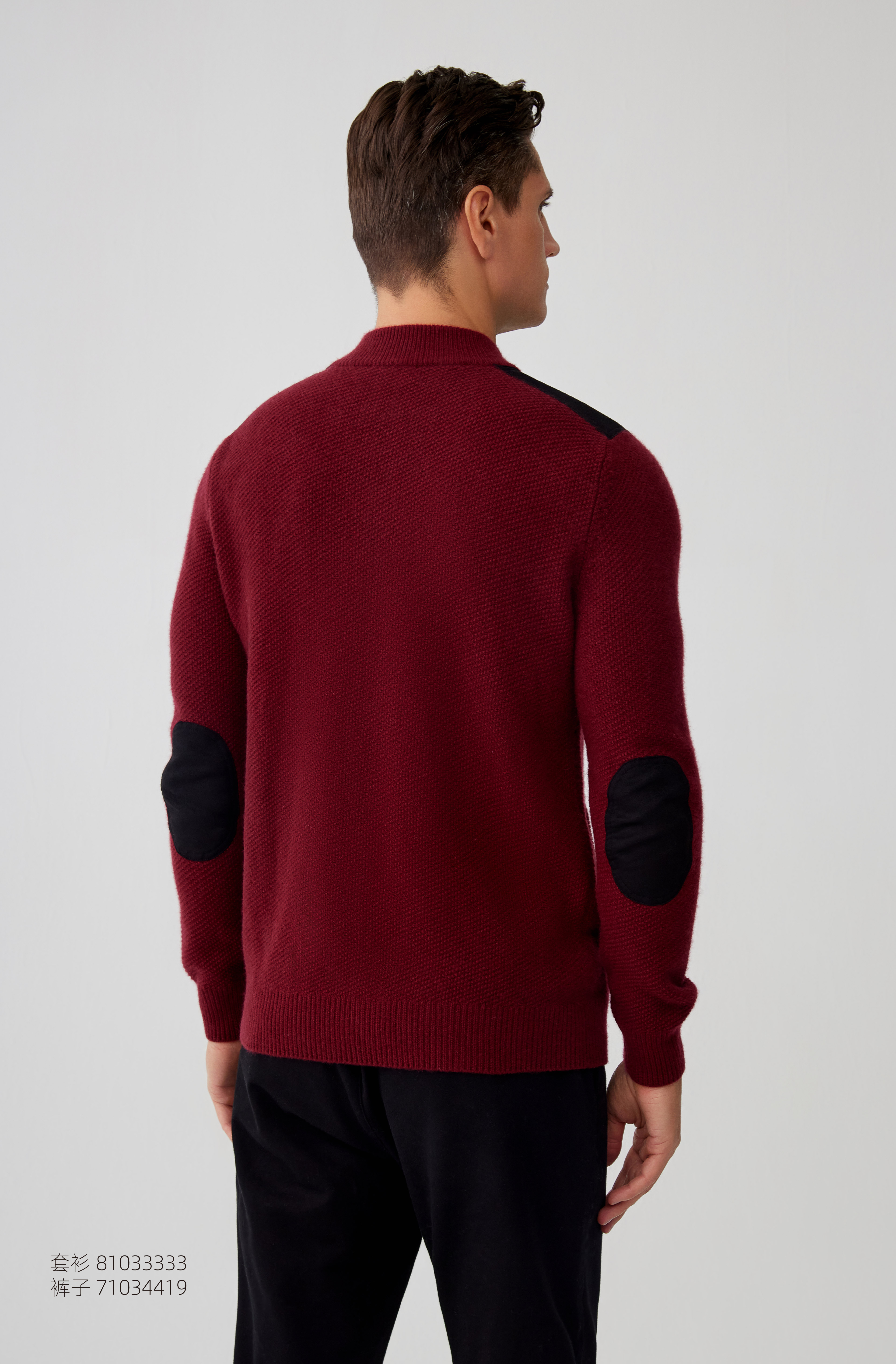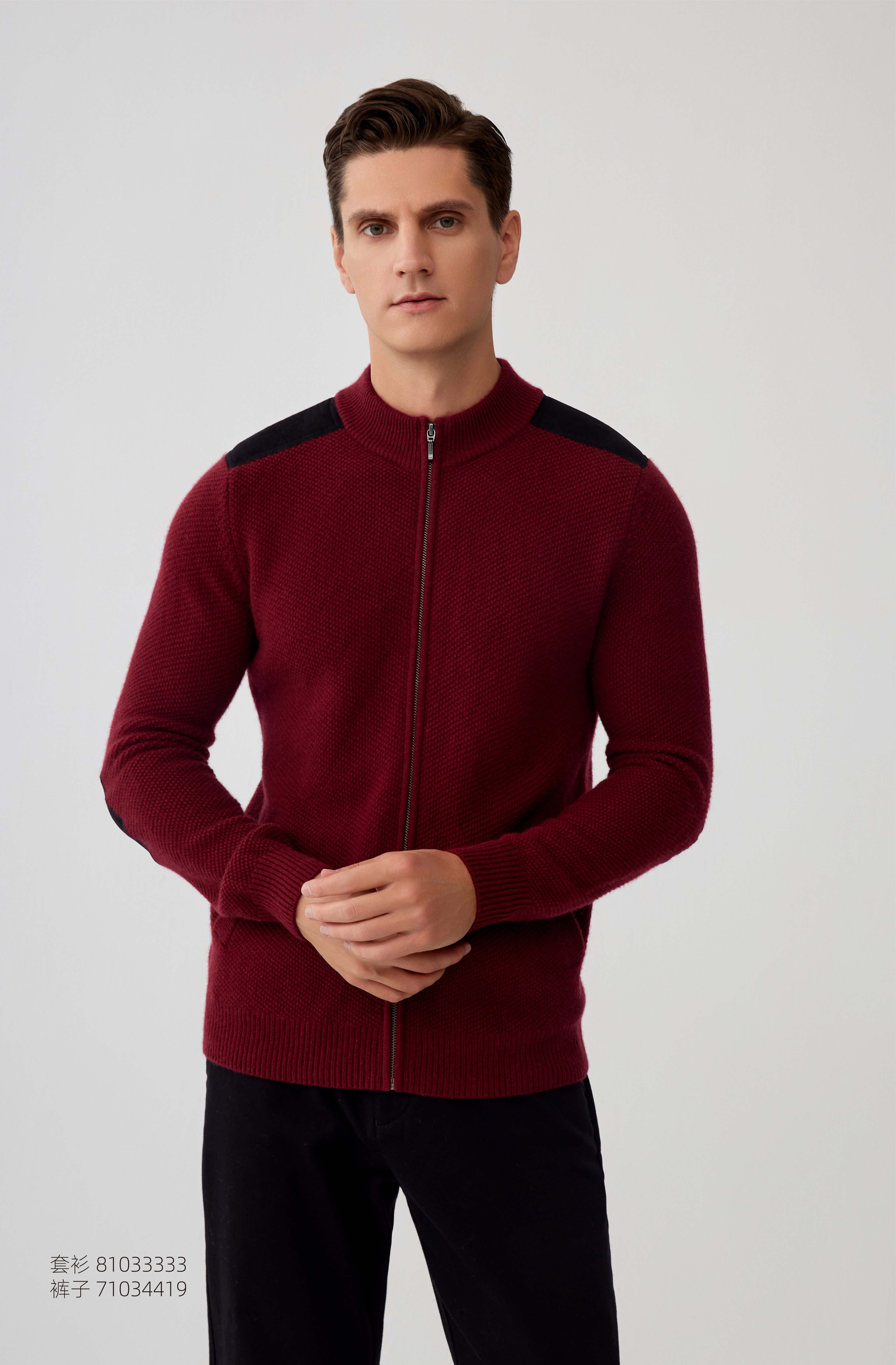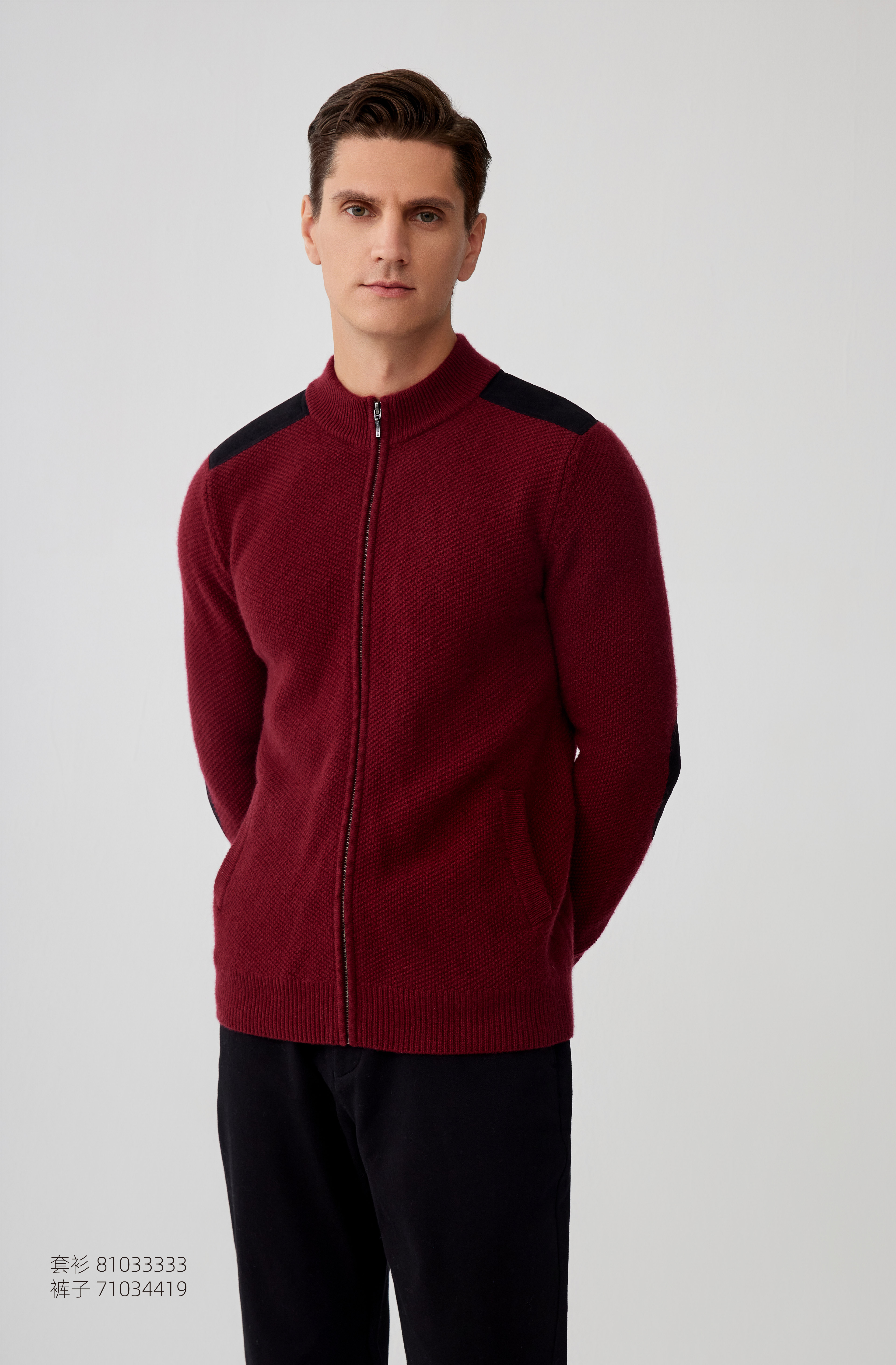 【男士半高领山羊绒撞色开衫】羊绒世家秋冬新品男士100%山羊绒撞色保暖毛衣