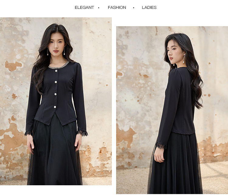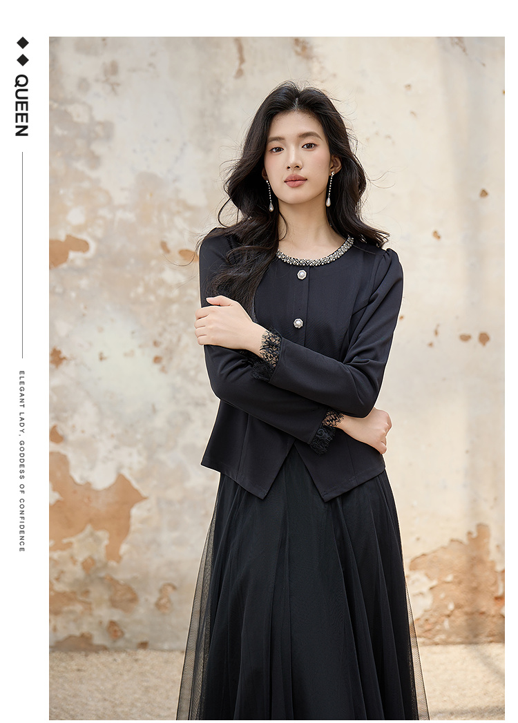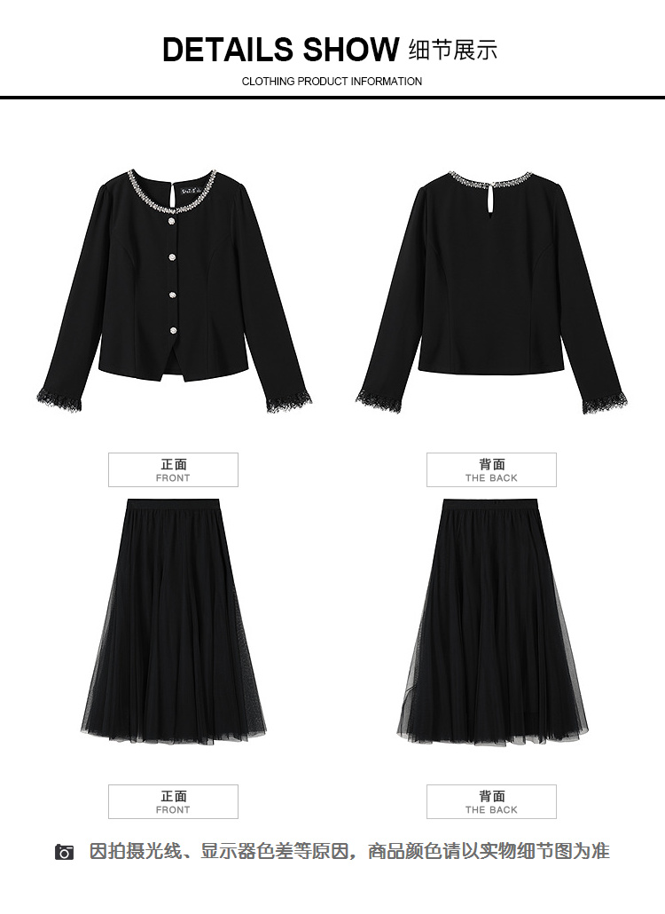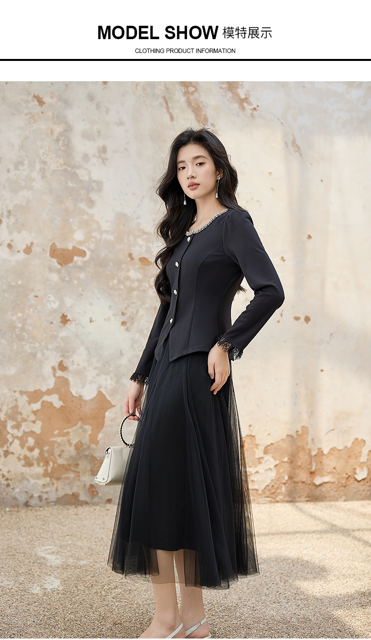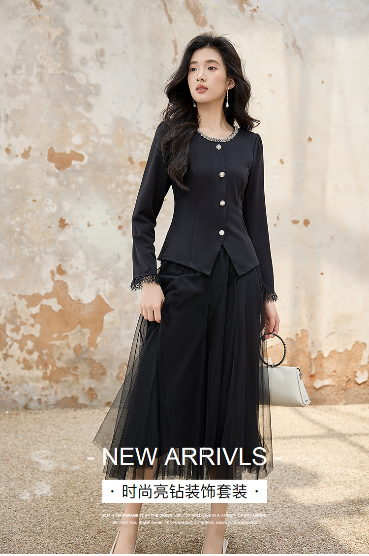 奢姿大码女装2025秋季胖妹妹时尚圆领上衣气质网纱半裙两件套套装9953953603AB