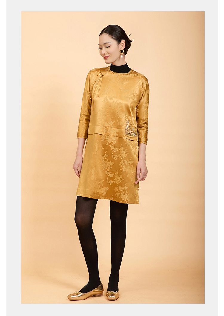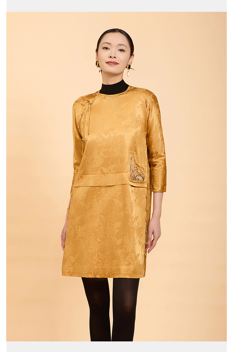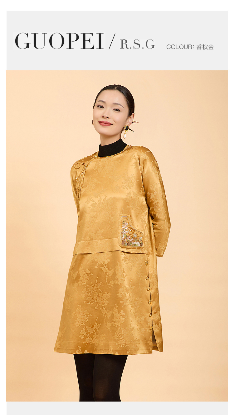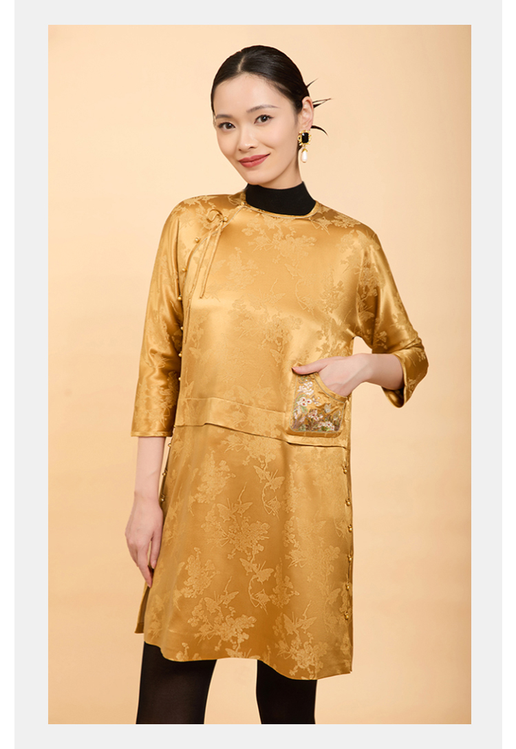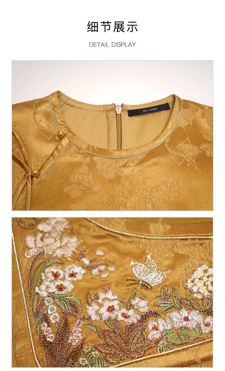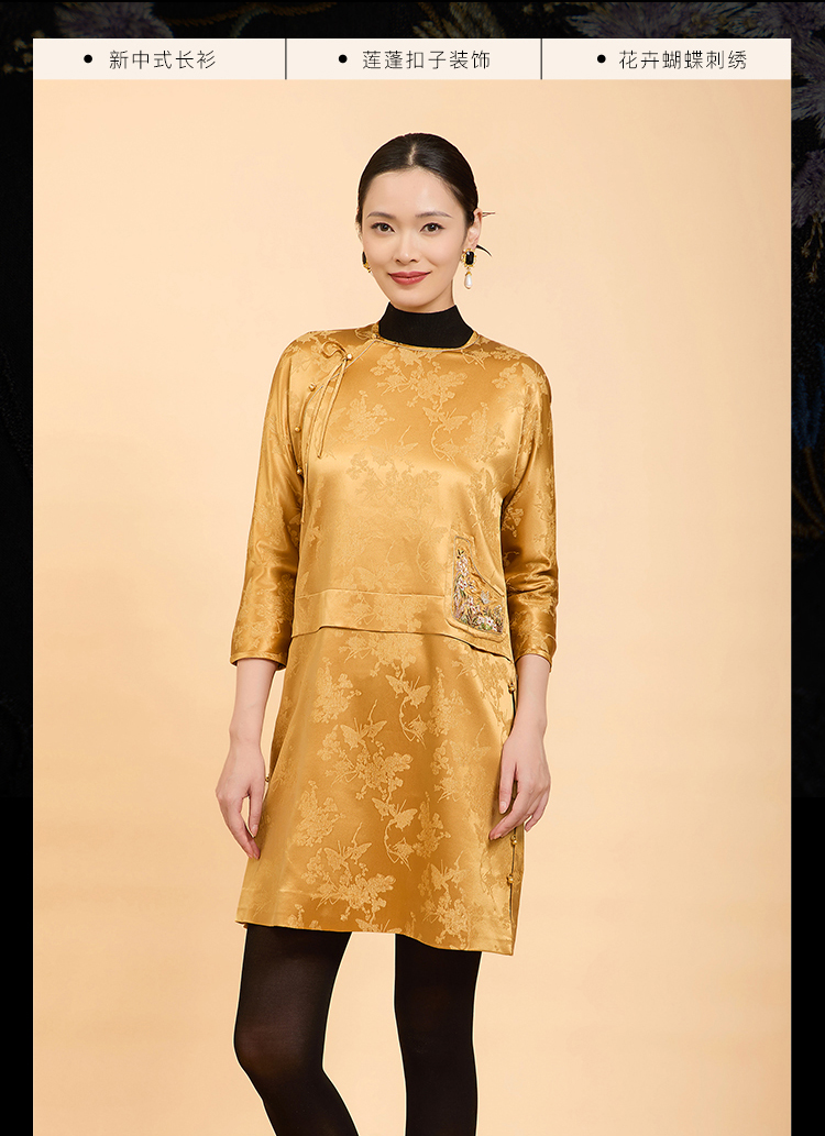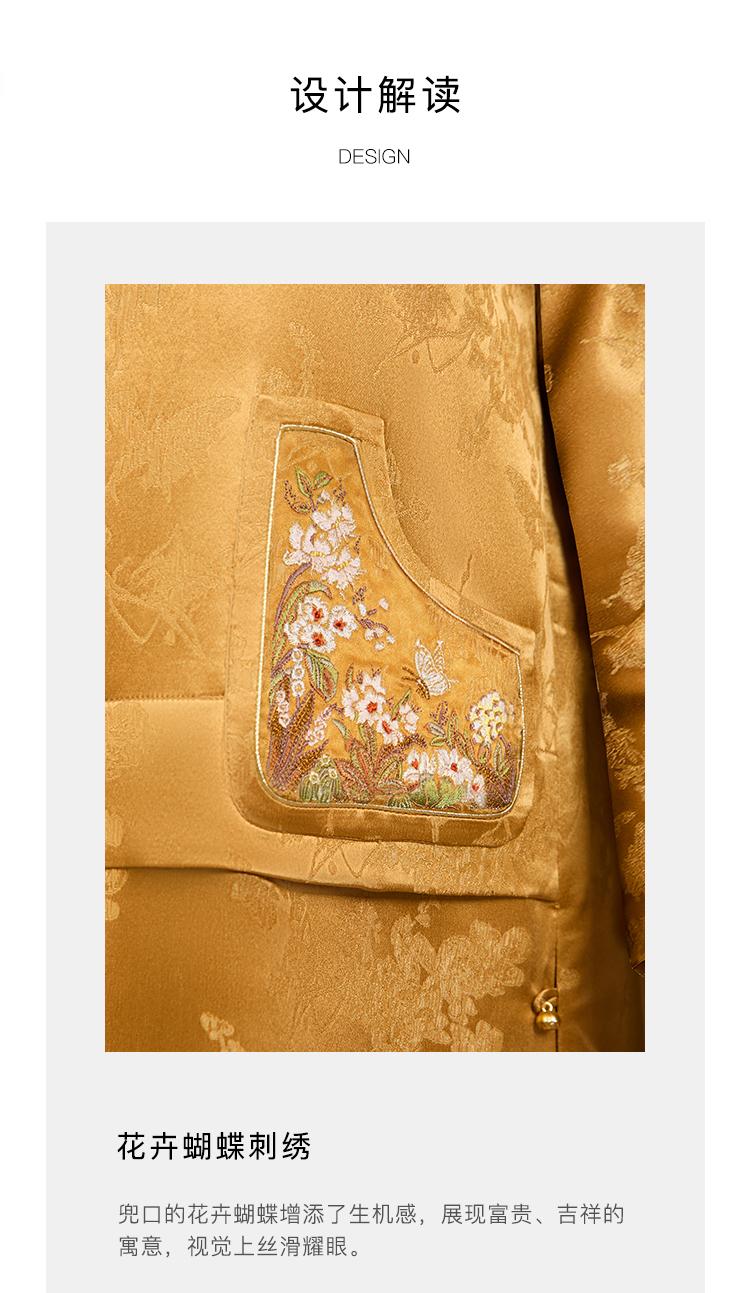 东方境X郭培联名系列:轻高定花卉蝴蝶刺绣彩缎长衫
