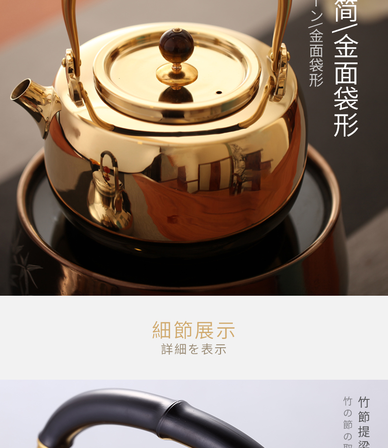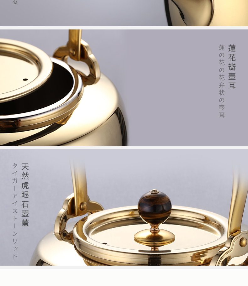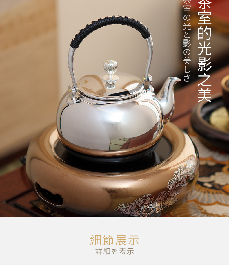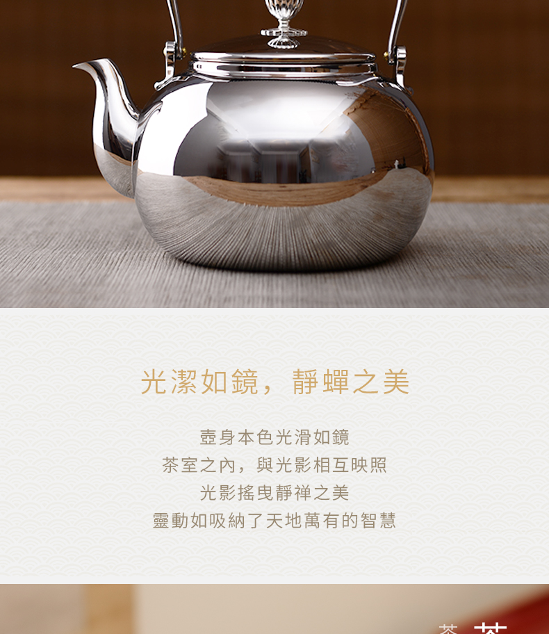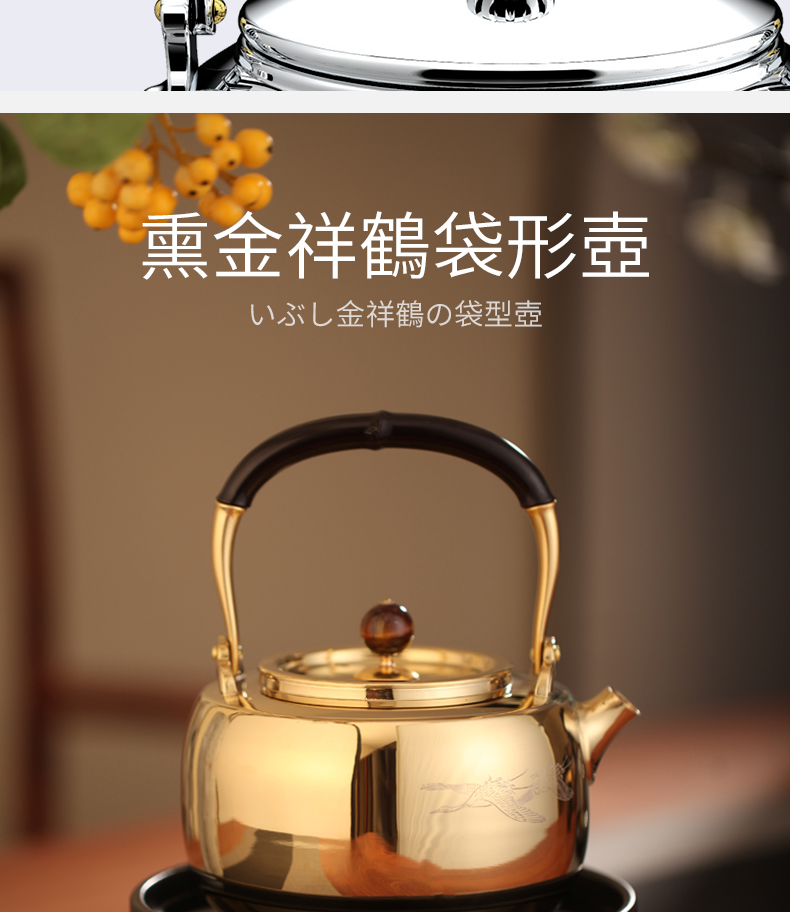 莺歌烧 镜面本色烧水壶 熏金面祥鹤烧水壶 不锈钢壶煮水壶提梁壶家用烧水壶茶具茶道泡茶