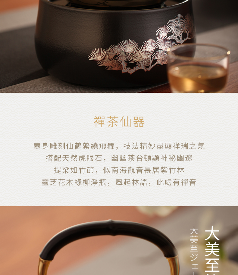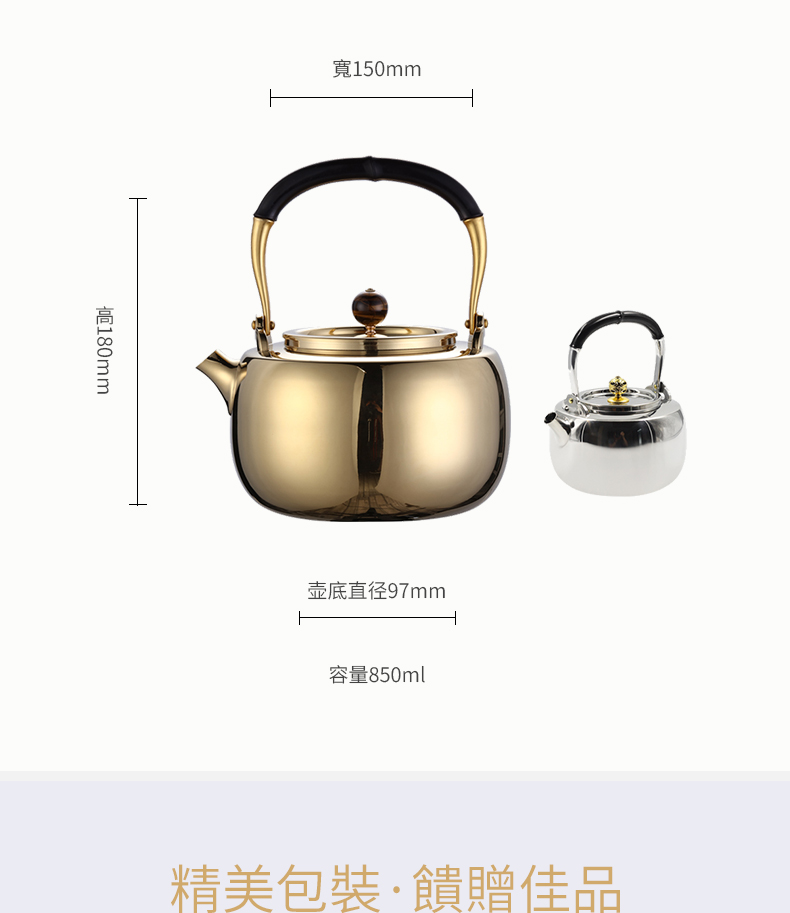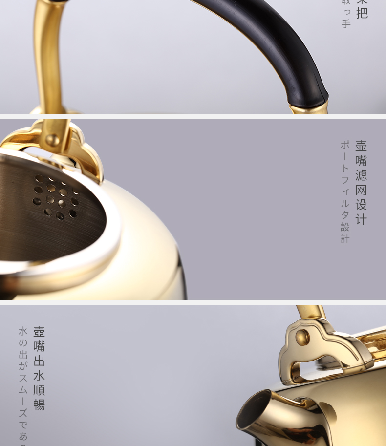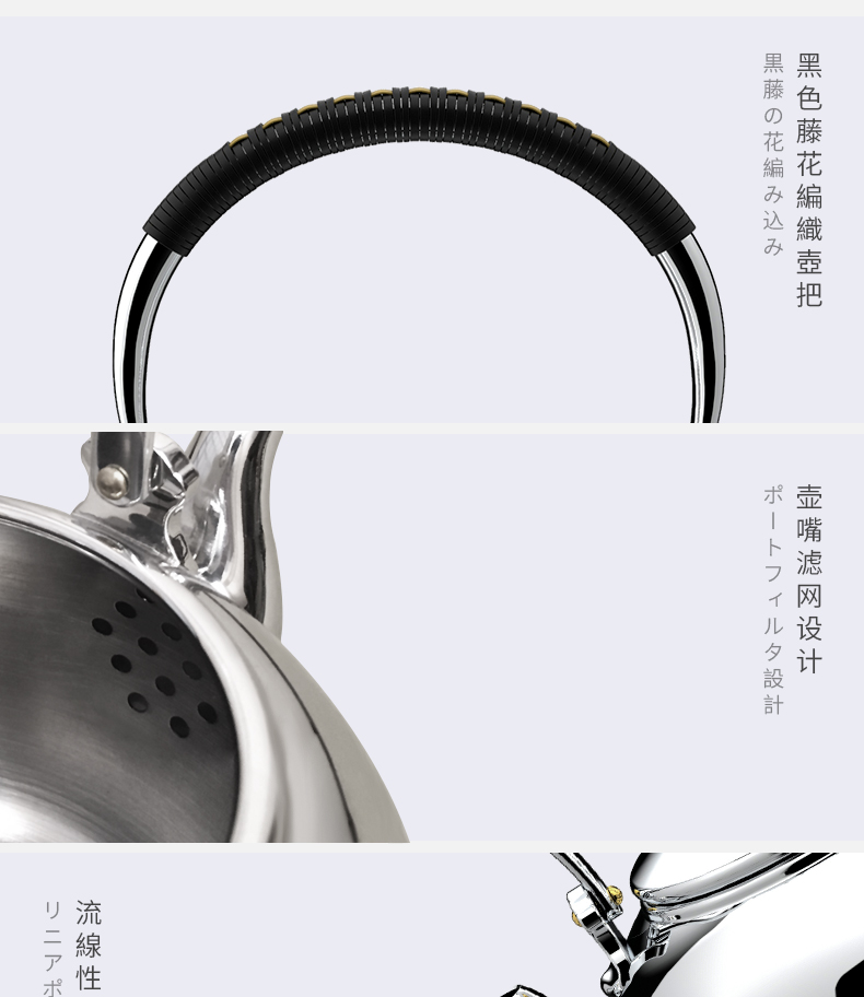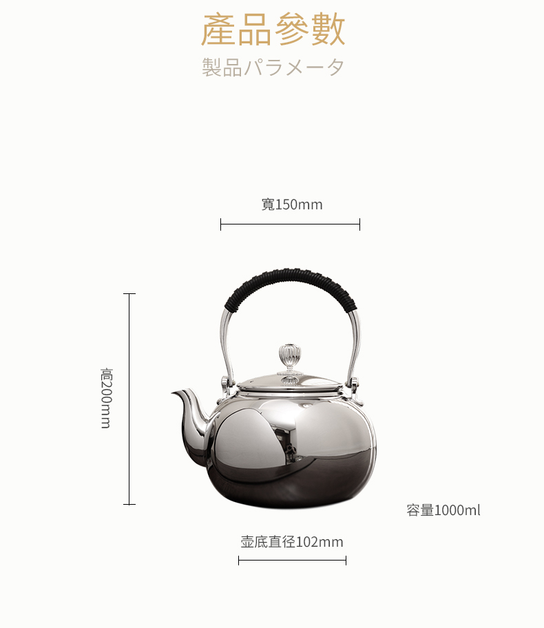 莺歌烧 镜面本色烧水壶 熏金面祥鹤烧水壶 不锈钢壶煮水壶提梁壶家用烧水壶茶具茶道泡茶
