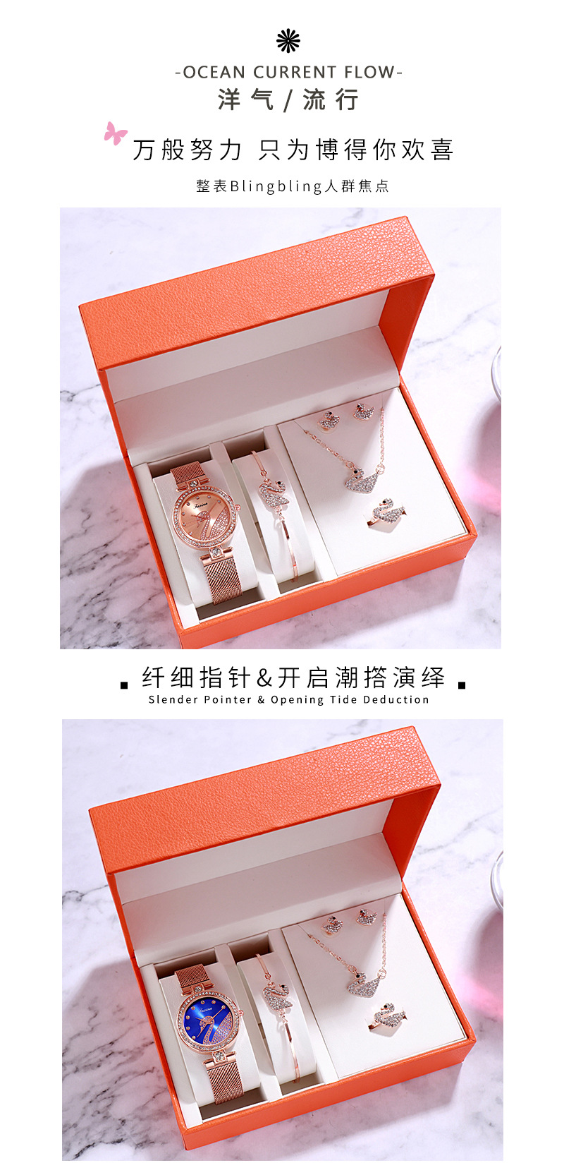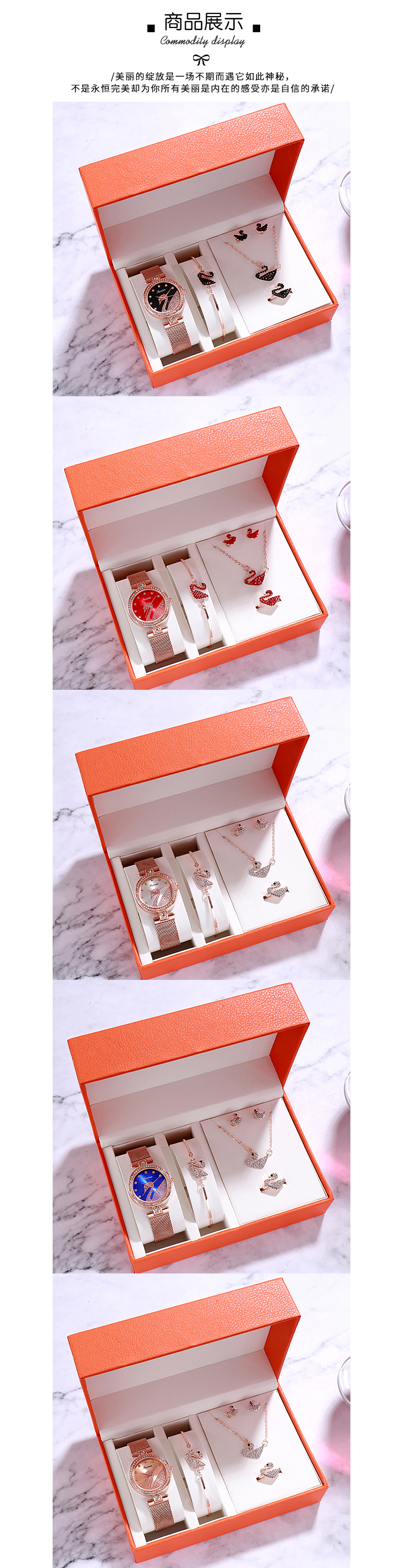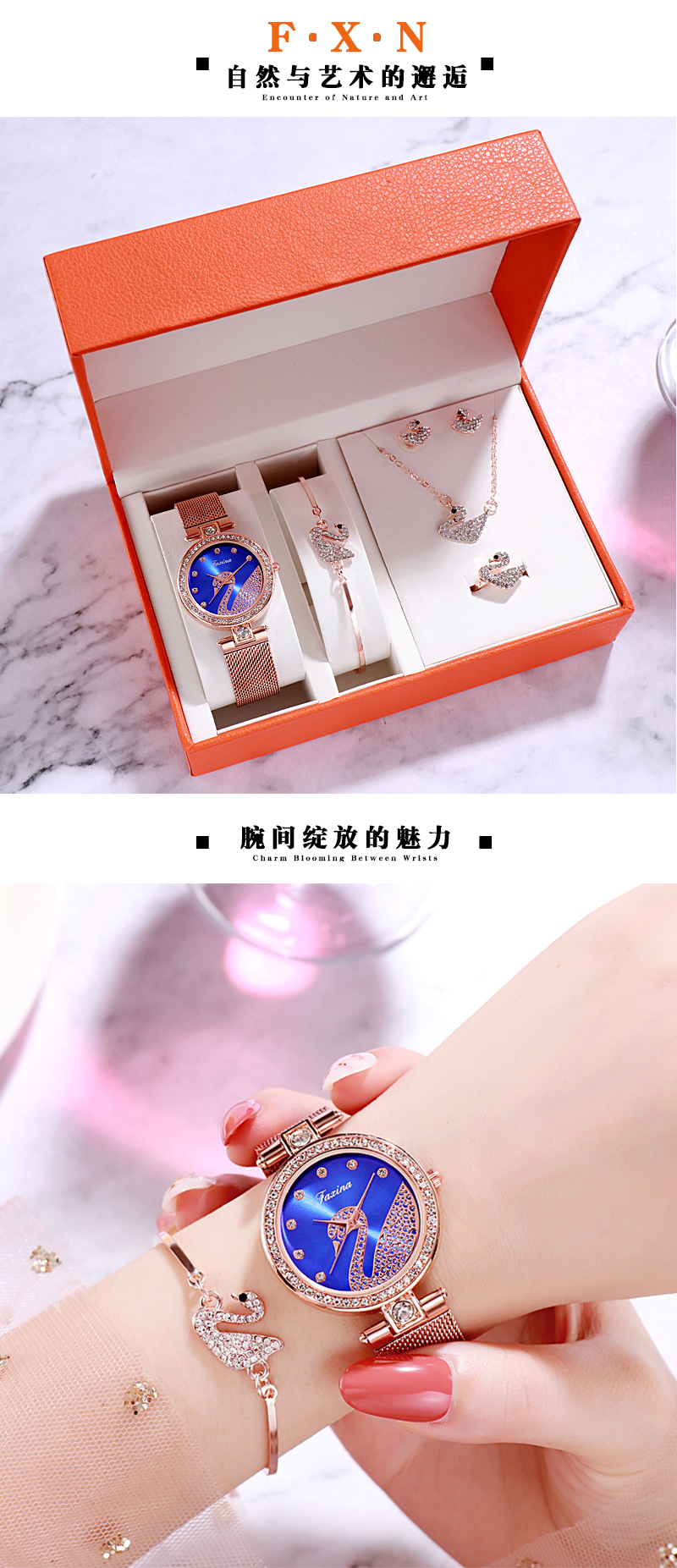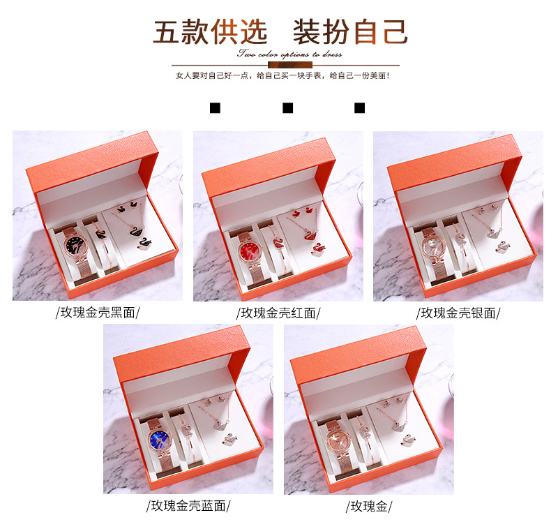 六鑫珠宝 小红书五件套天鹅手链石英手表