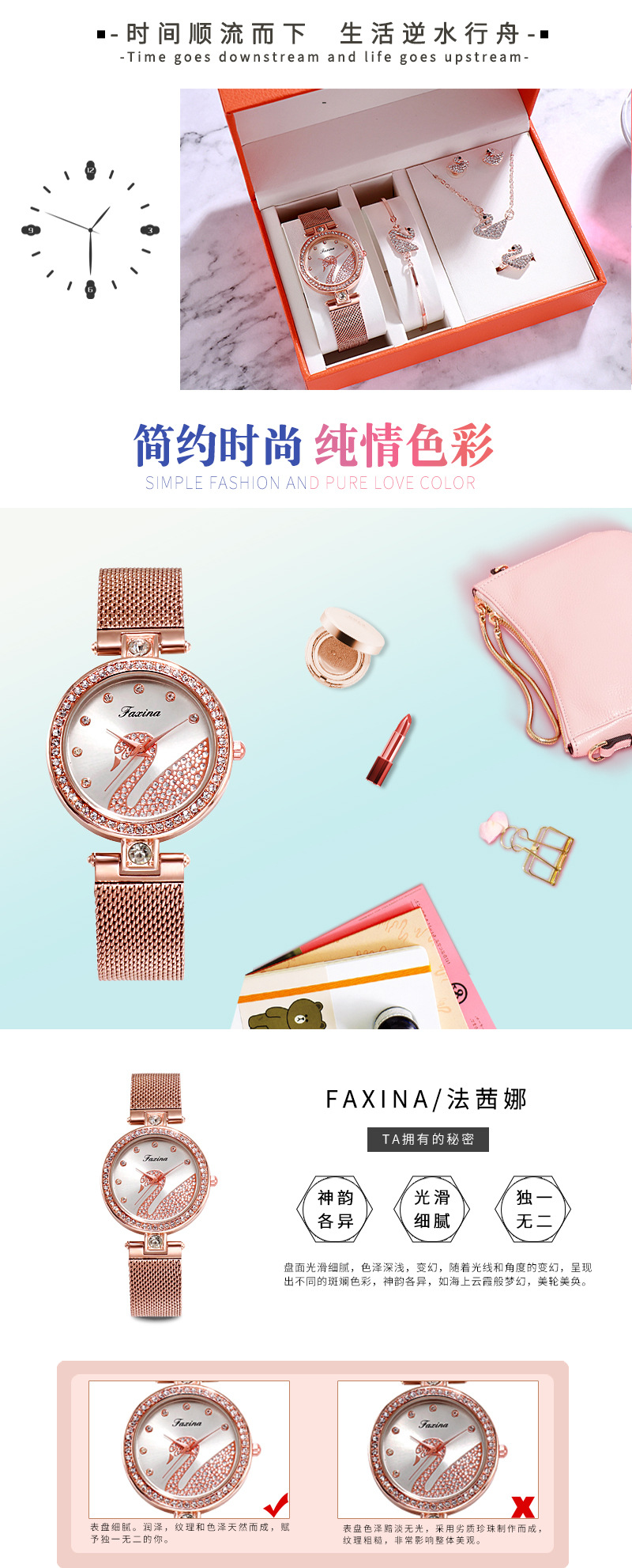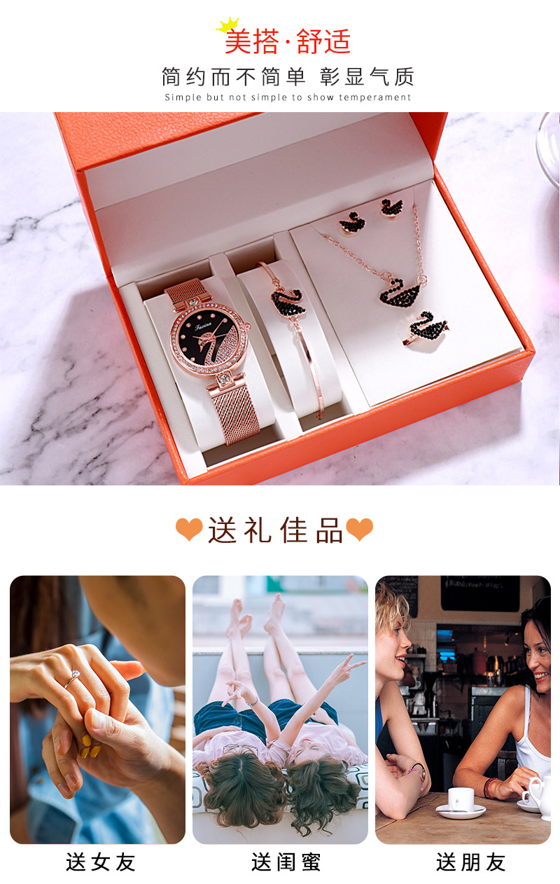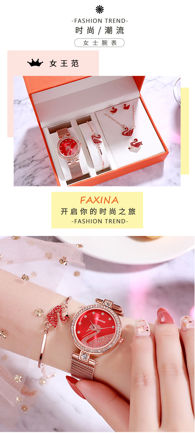 六鑫珠宝 小红书五件套天鹅手链石英手表