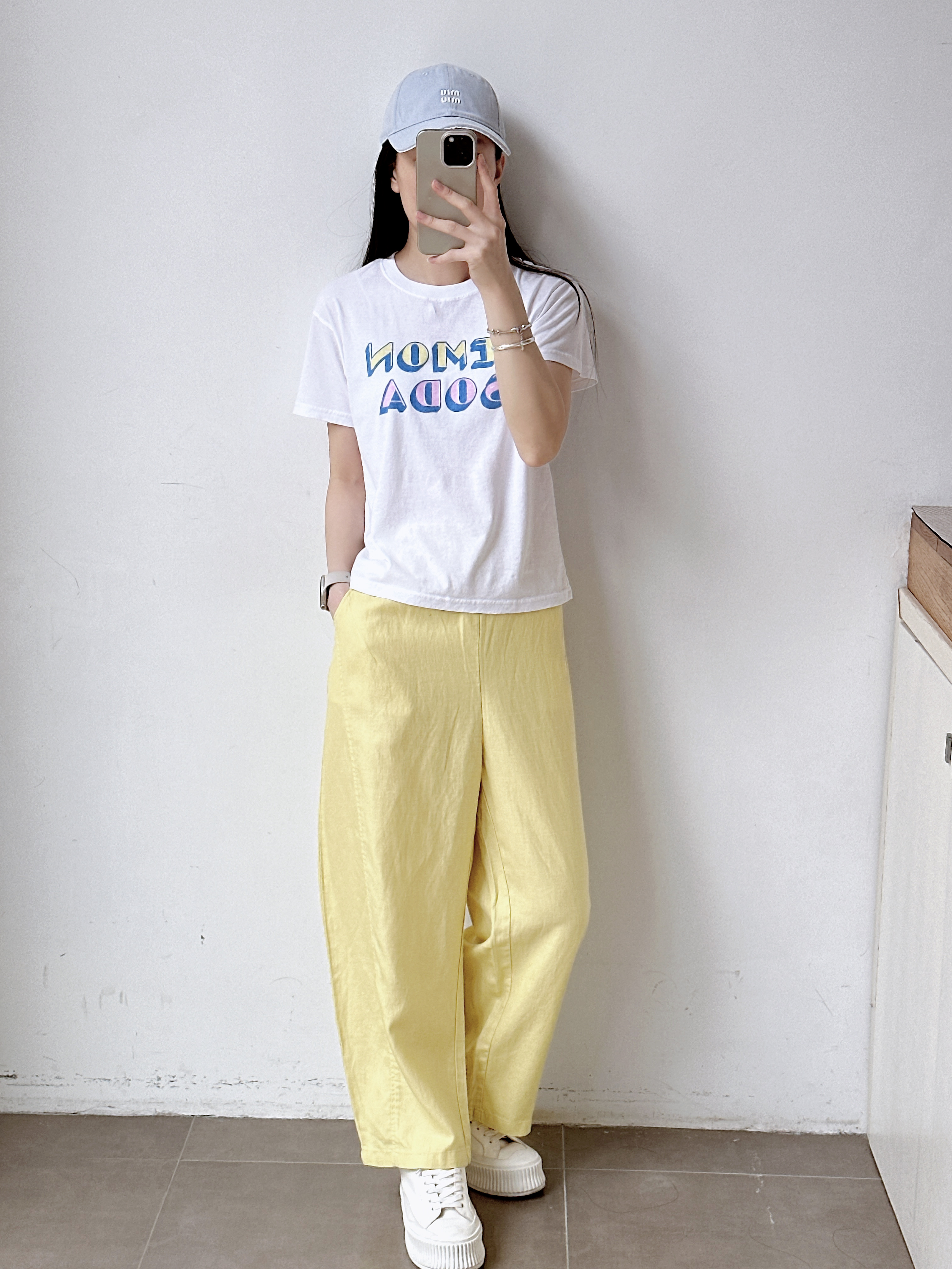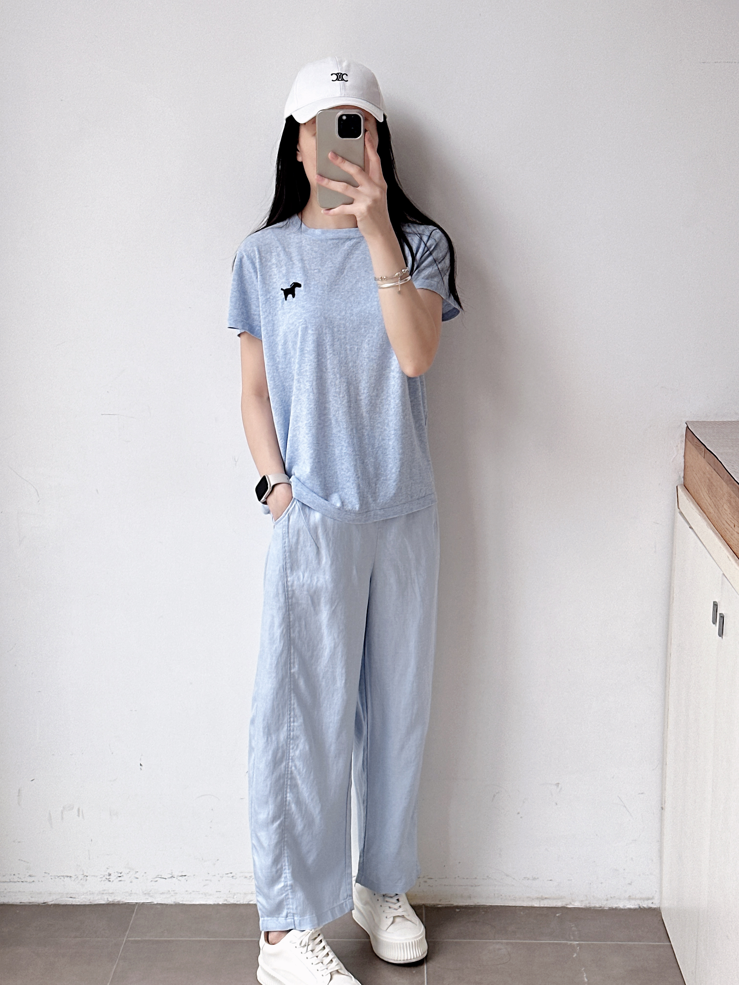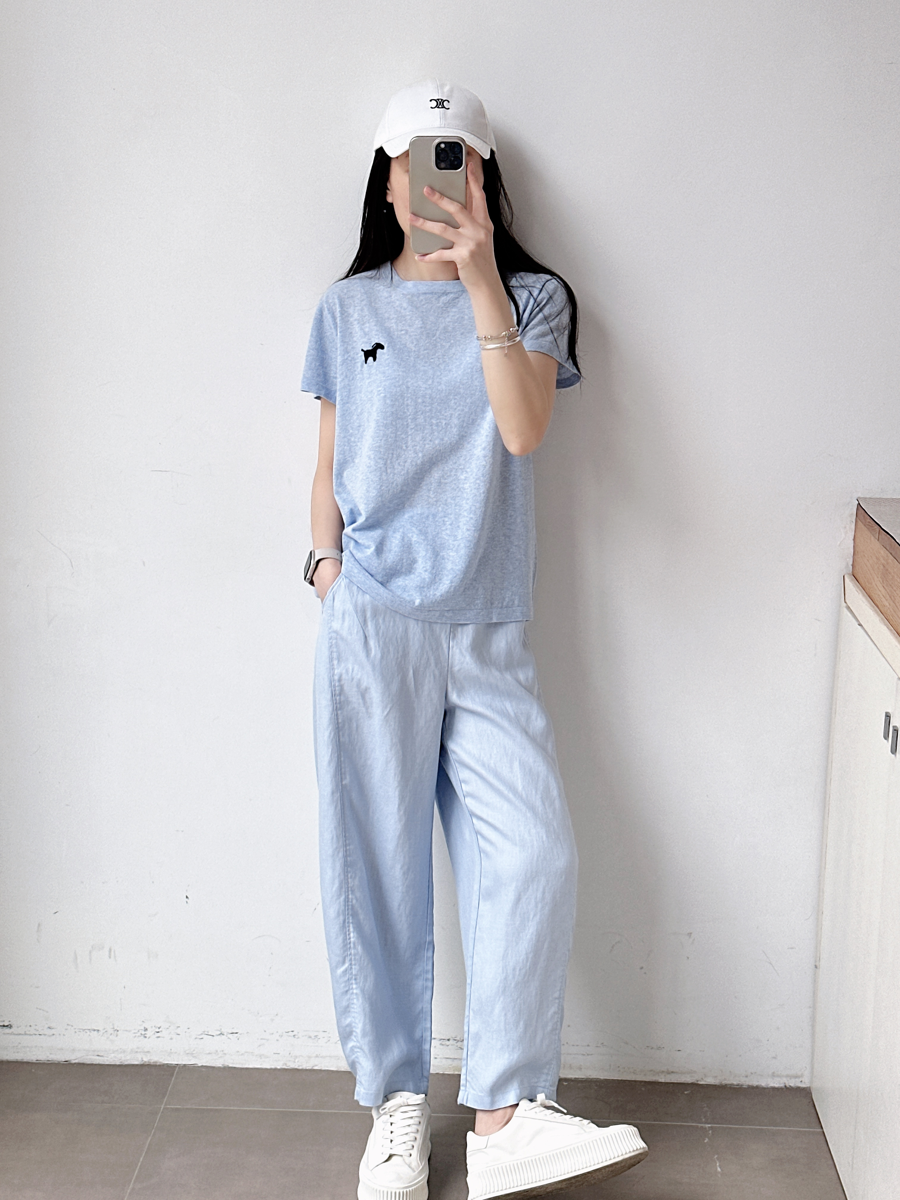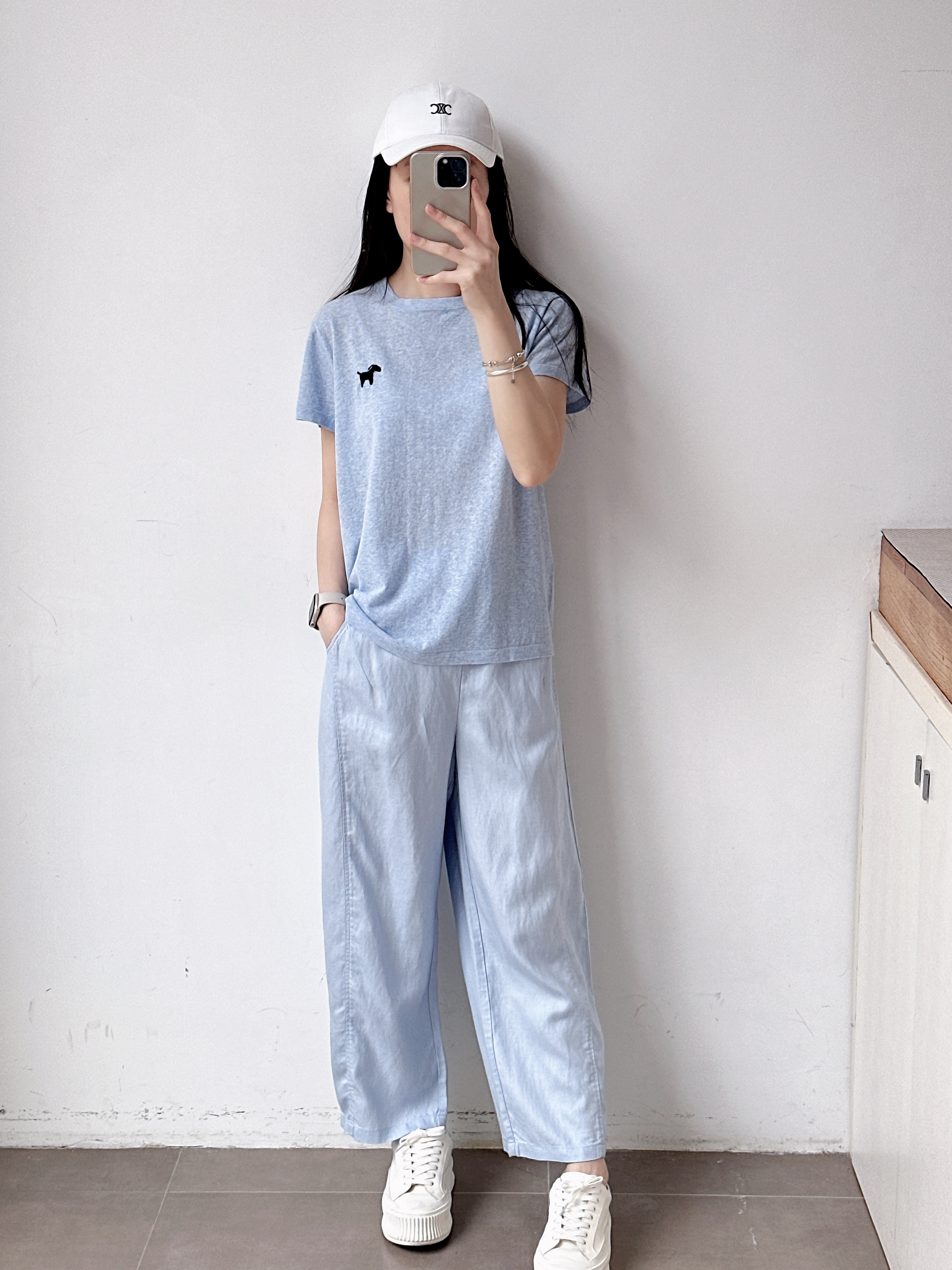 高级亚麻雾霾蓝直筒休闲裤