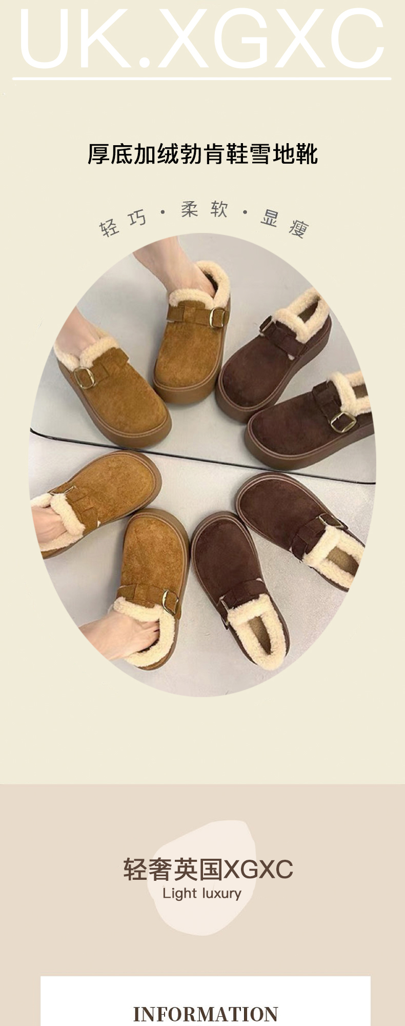 【特价!时髦百搭】【加绒加厚,穿脱便捷】英国XGXC秋冬女款厚底加绒全包勃肯鞋一脚蹬雪地靴