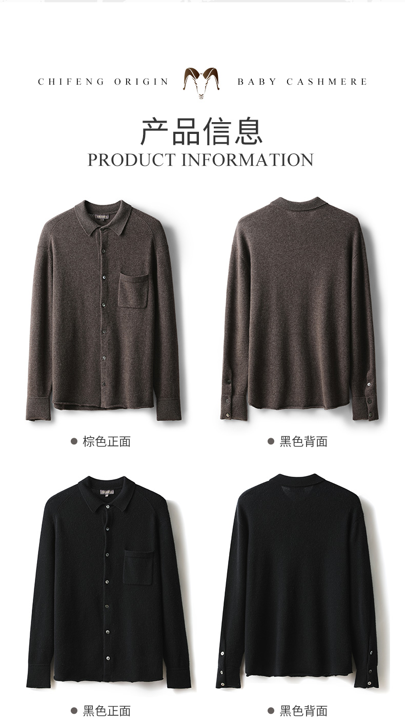 东黎 • 小山羊绒 中性休闲针织秋冬舒适纯色时尚翻领衬衫 21C10