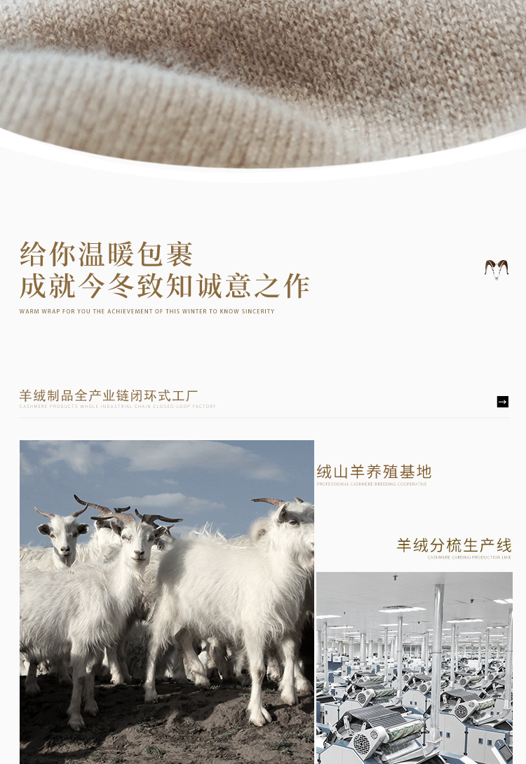 东黎羊绒是赤峰东荣集团自主品牌,自有牧场/羊绒制品全产业链优势,实现了羊绒从“牧场”到“商场”的华丽转变。