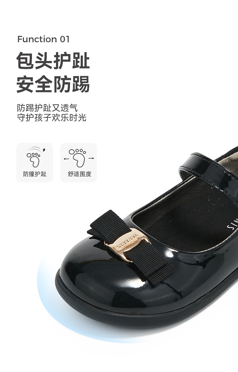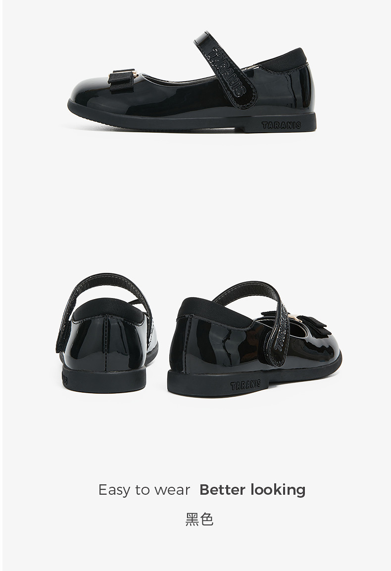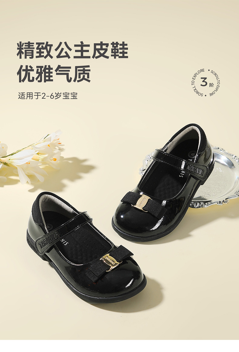 泰兰尼斯春季新款公主鞋女童黑色软底皮鞋洋气演出鞋精致时尚单鞋M03X6A9057