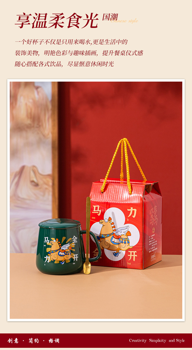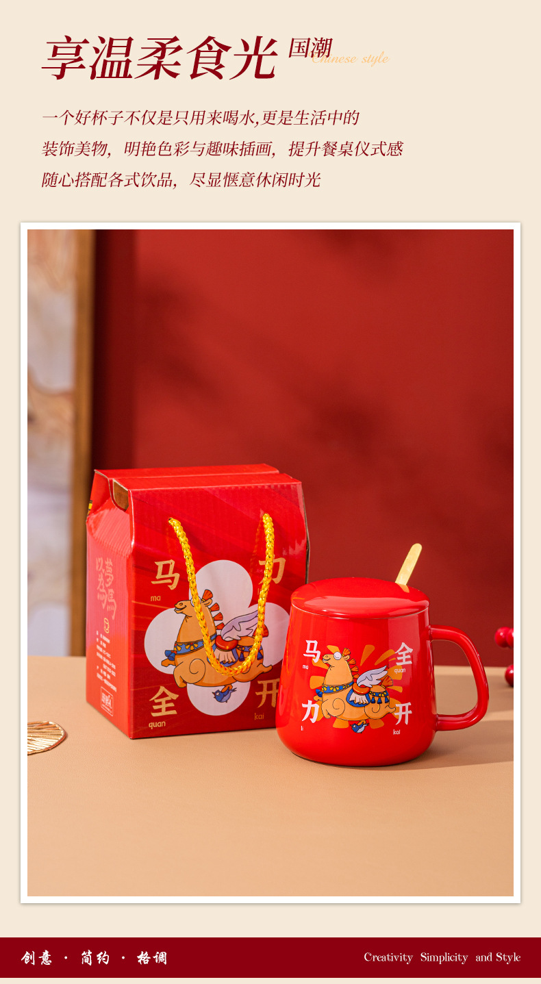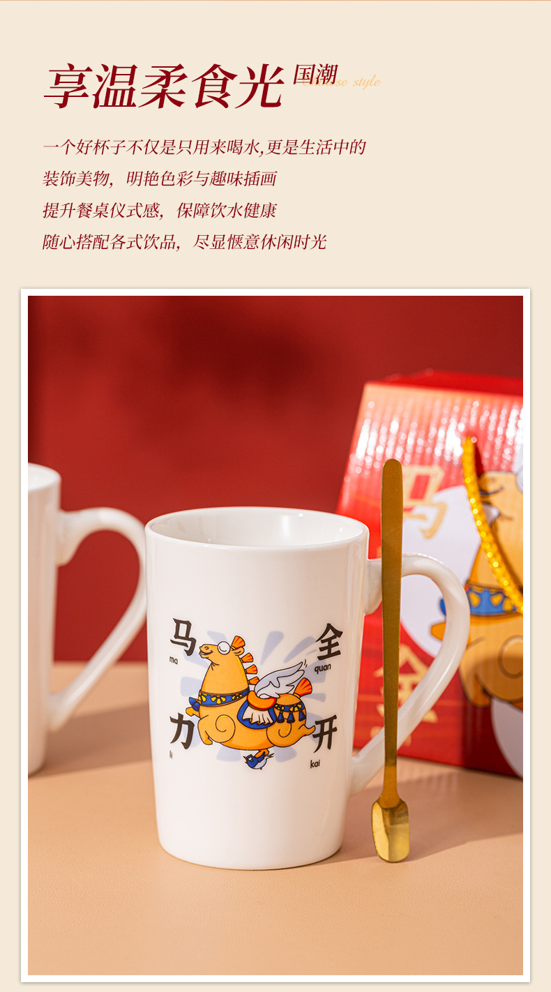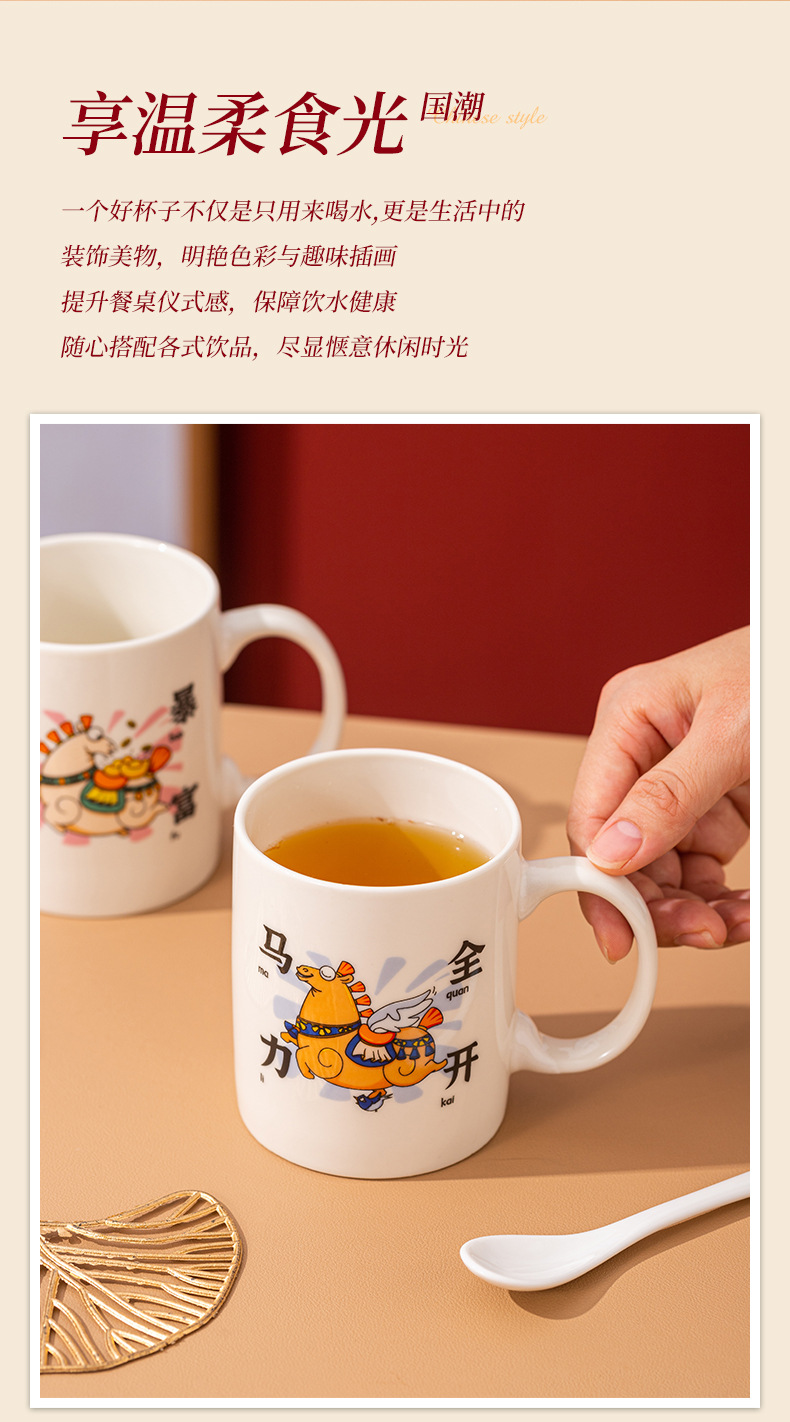 【马年陶瓷杯子】咖啡杯简约马克杯 国潮马力全开杯子礼品水杯