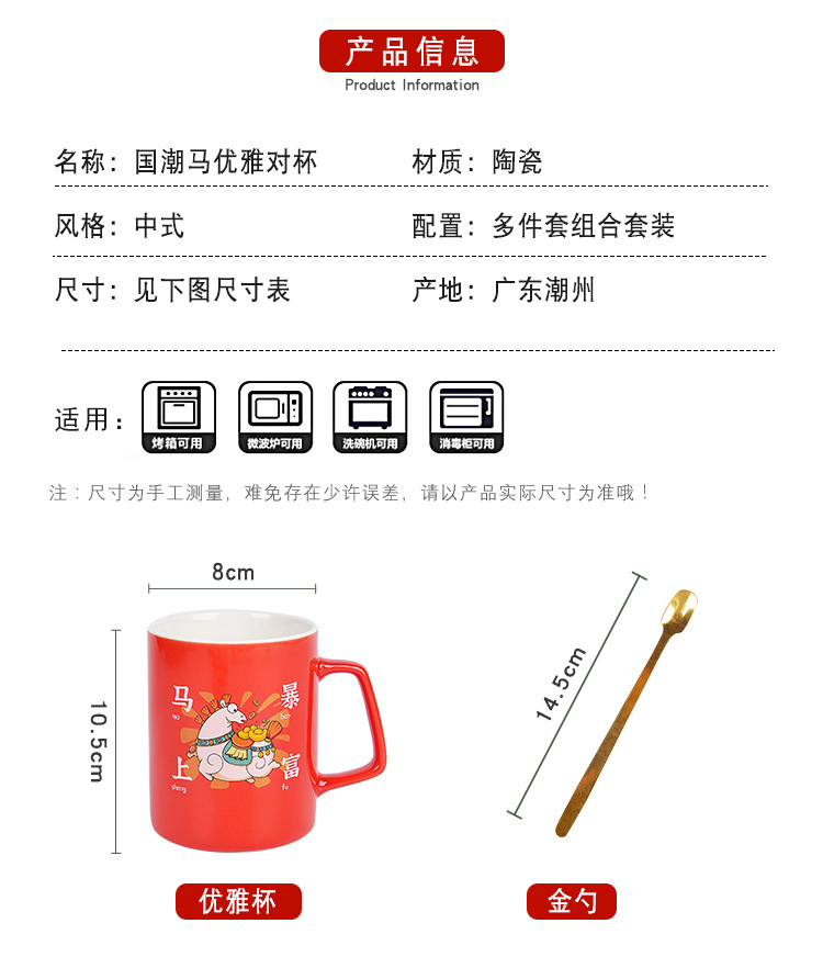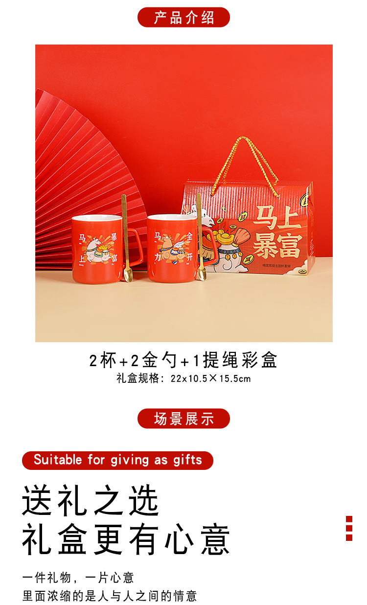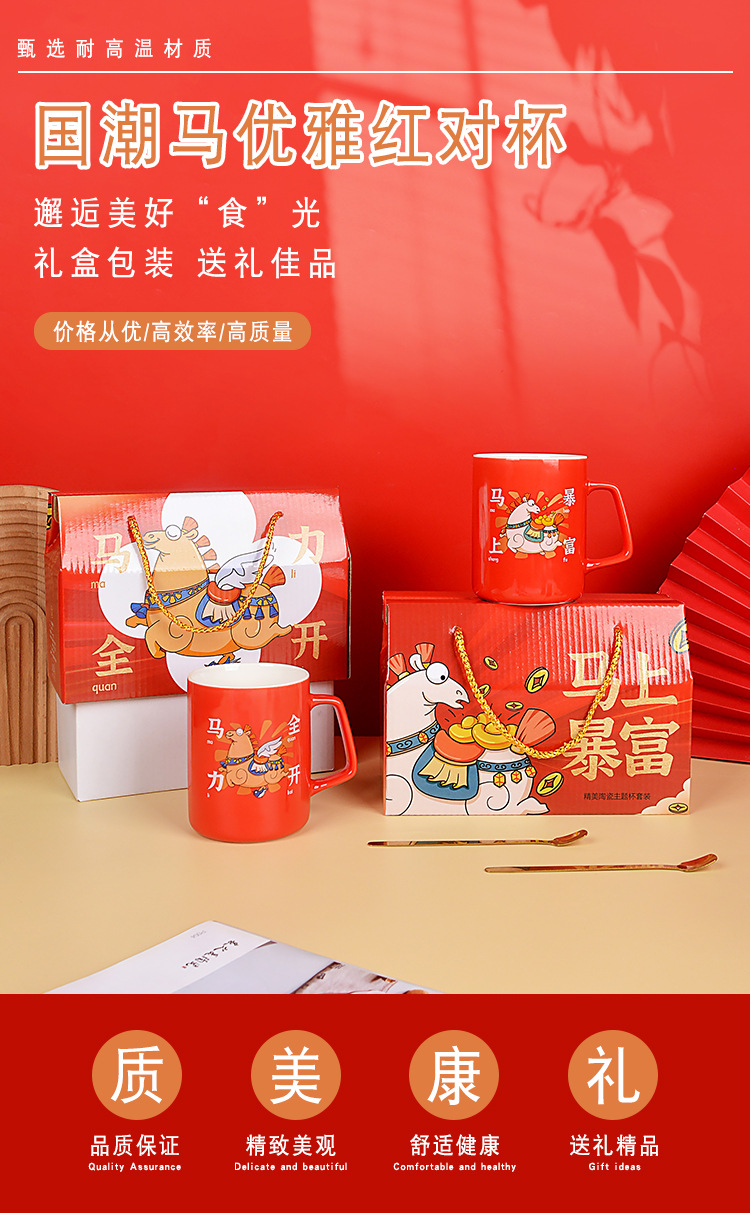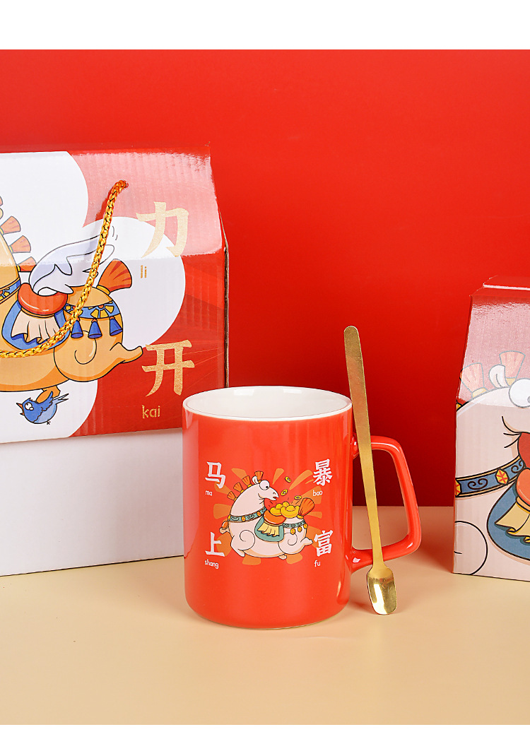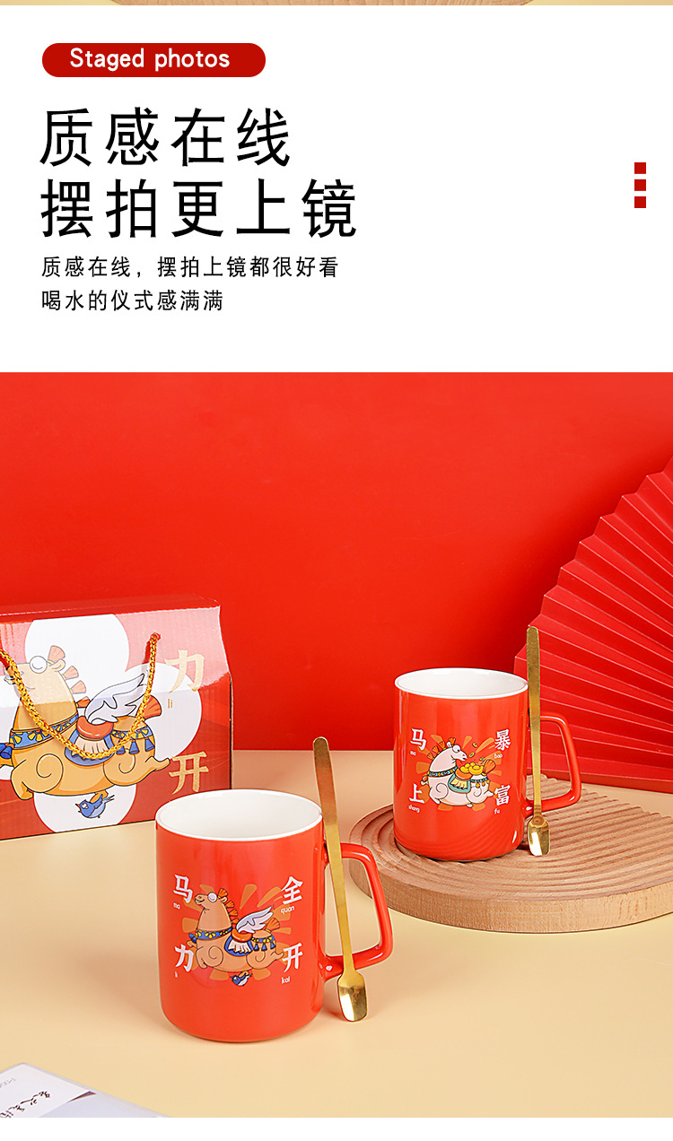 【马年陶瓷杯子】咖啡杯简约马克杯 国潮马力全开杯子礼品水杯