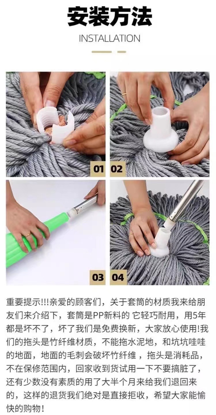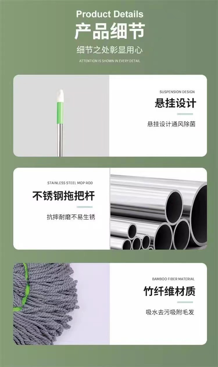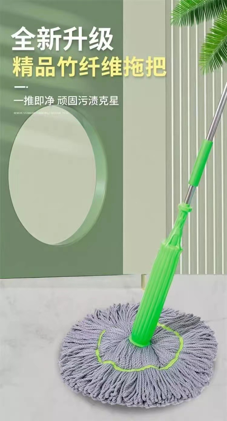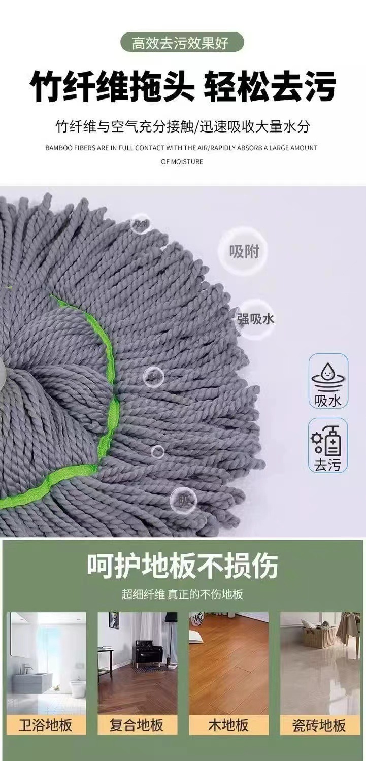 Z2第4代竹纤维不锈钢自拧拖把升级款加厚套筒一秒脱水超大拖头