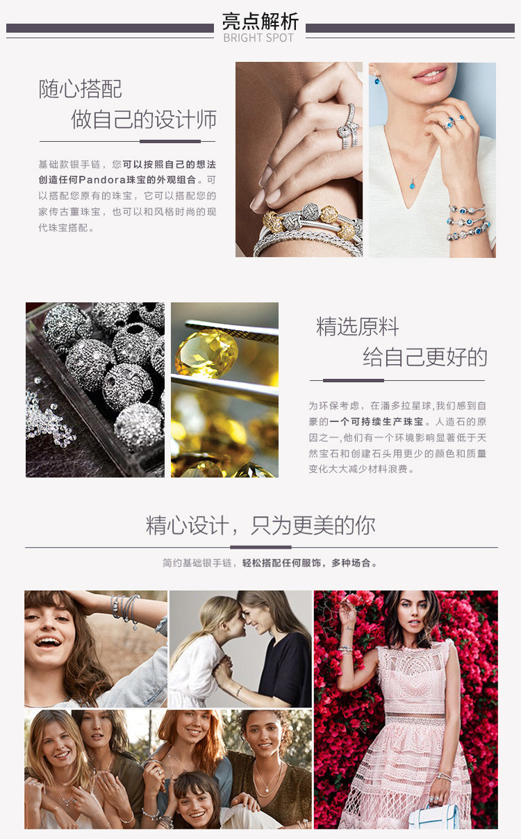 PANDORA/潘多拉 女款925银镂空手链珠串796082PCZ