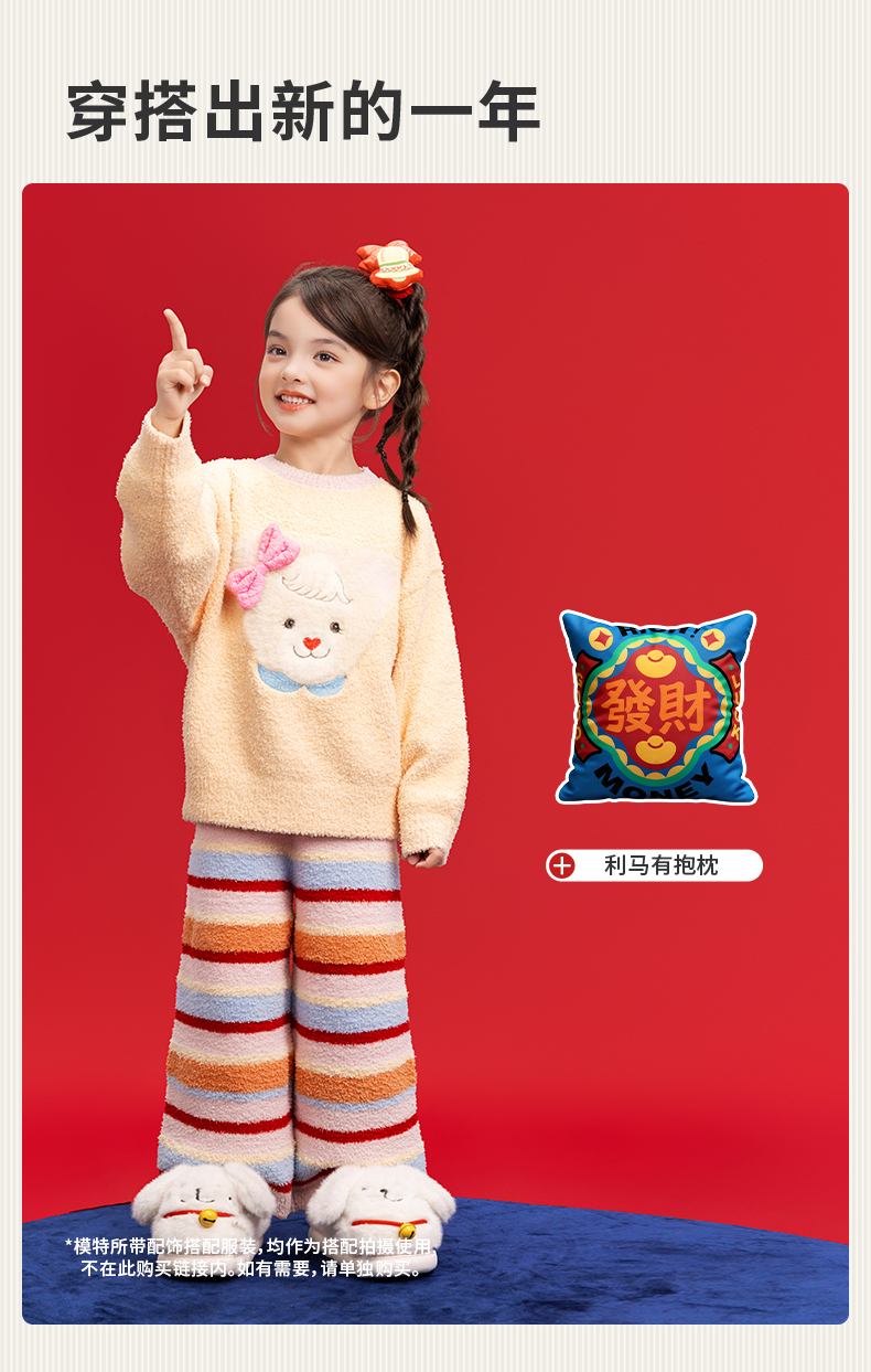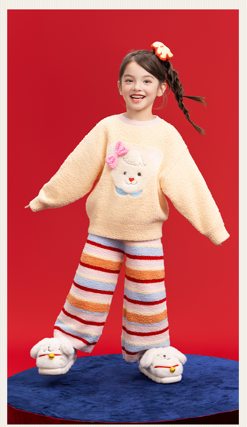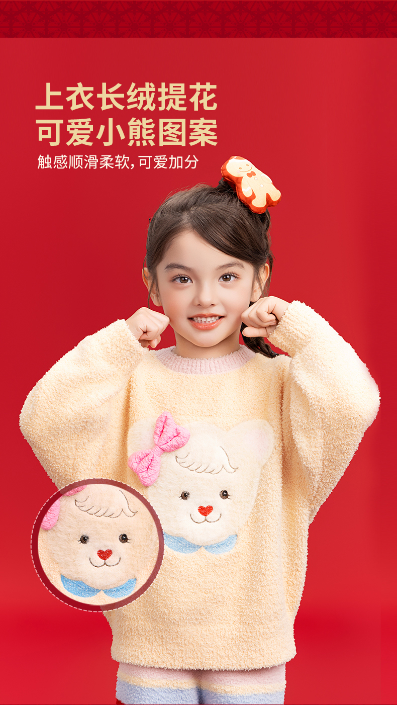 年衣童装家居服套装女童冬季新品儿童内衣睡衣奶油蓓尔家居服套装