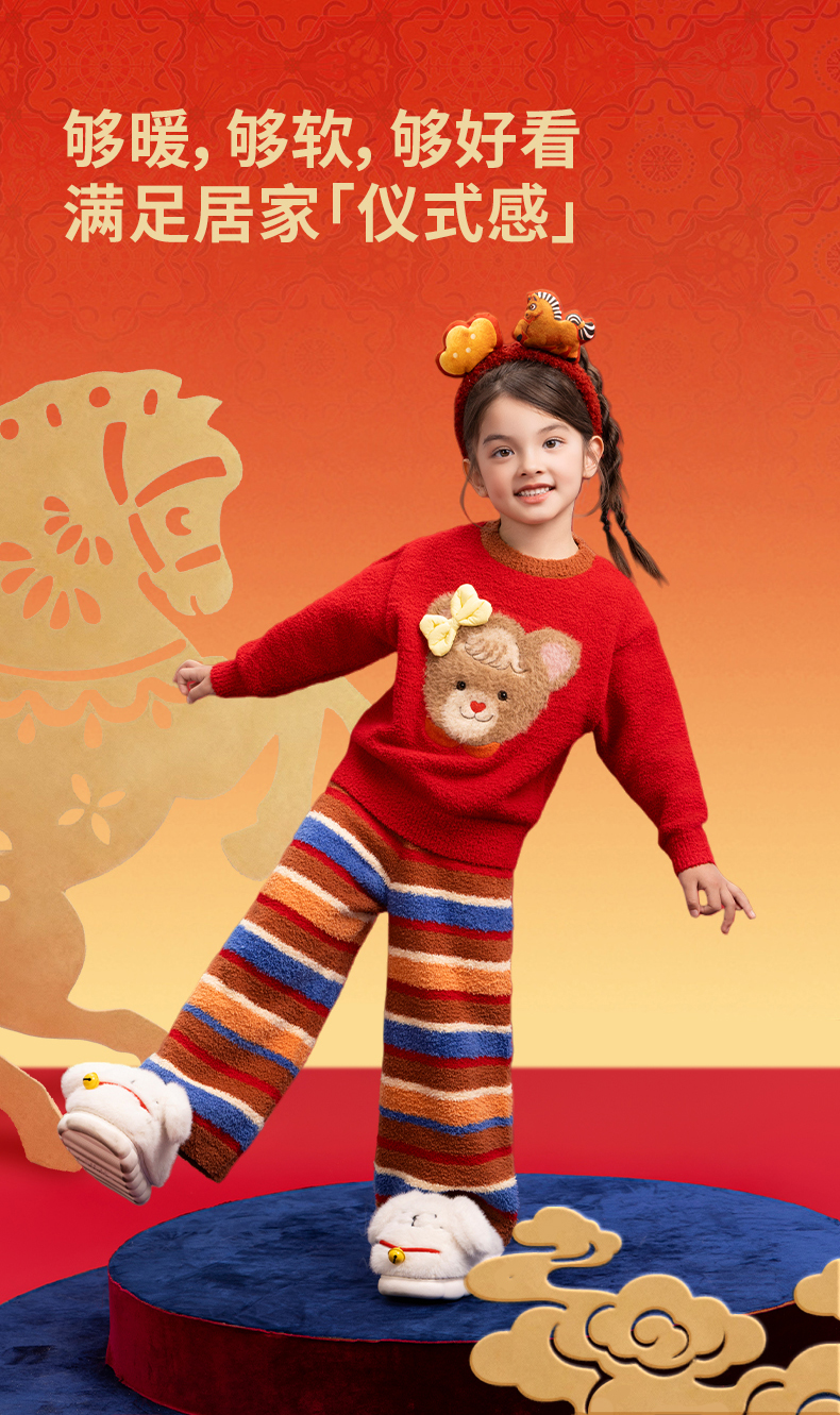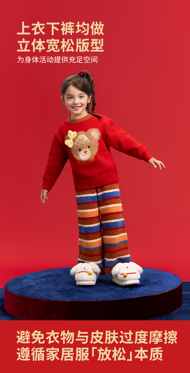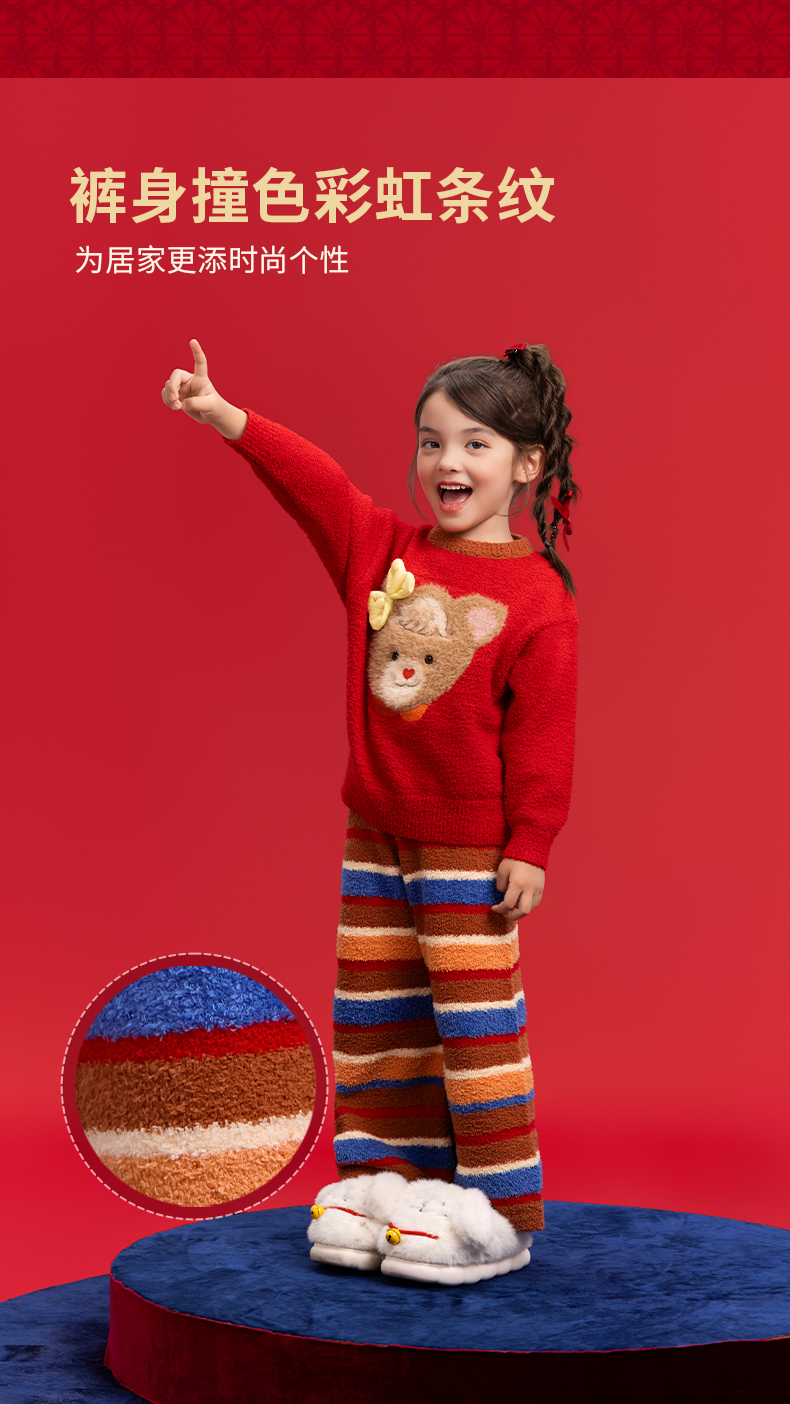 年衣童装家居服套装女童冬季新品儿童内衣睡衣奶油蓓尔家居服套装