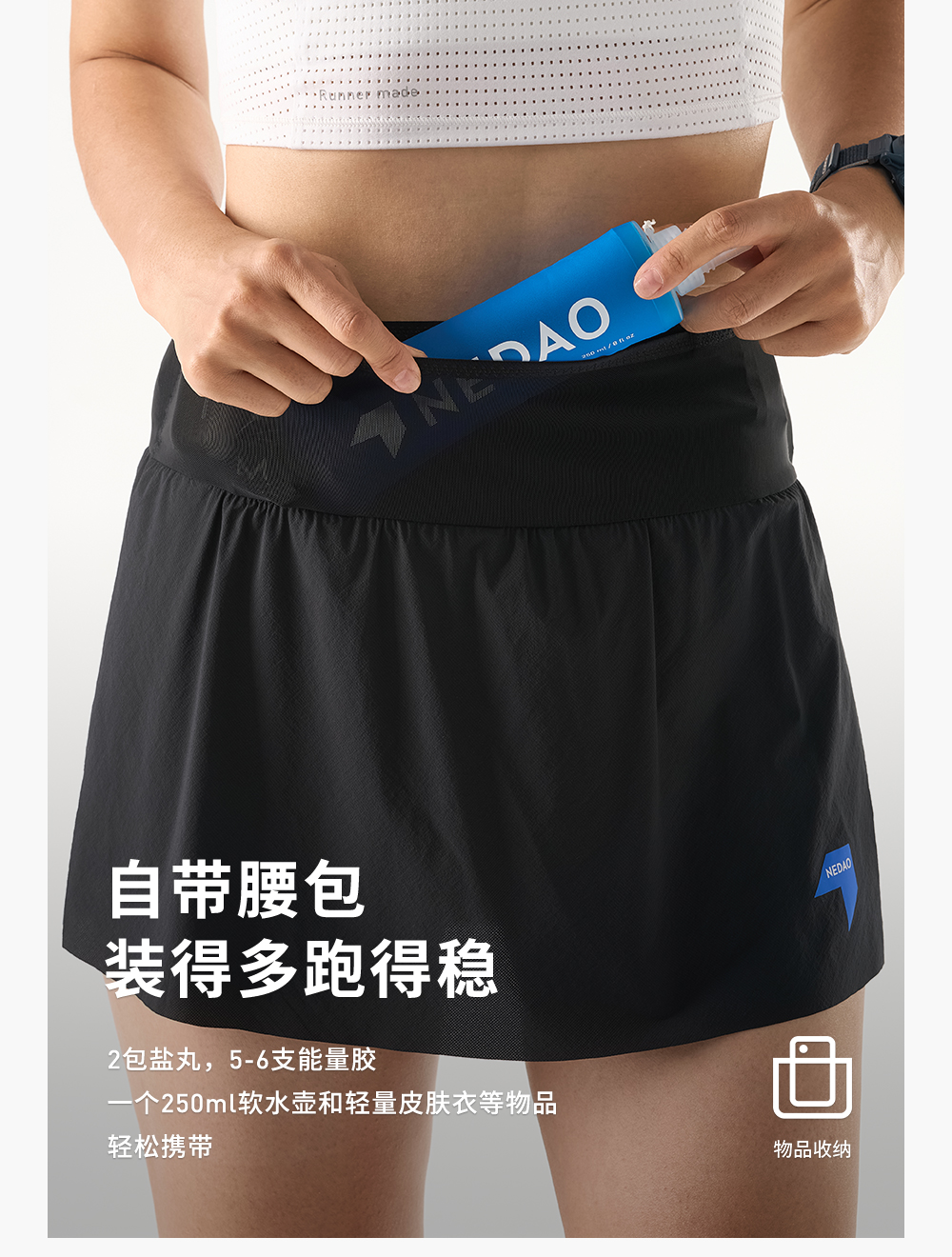 26新品内道跑步短裙女生路跑带腰包装载轻量马拉松跑步训练短裙