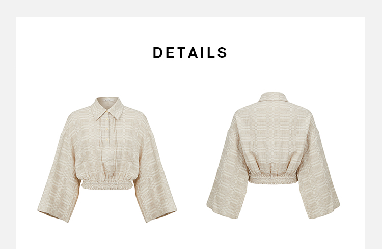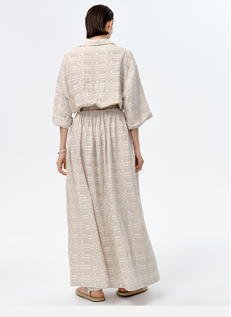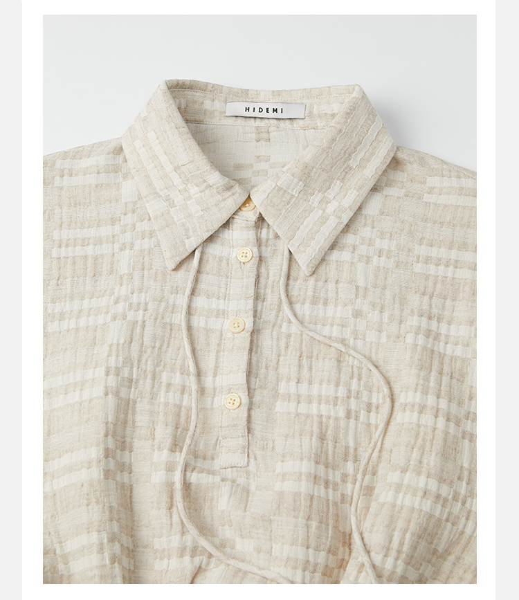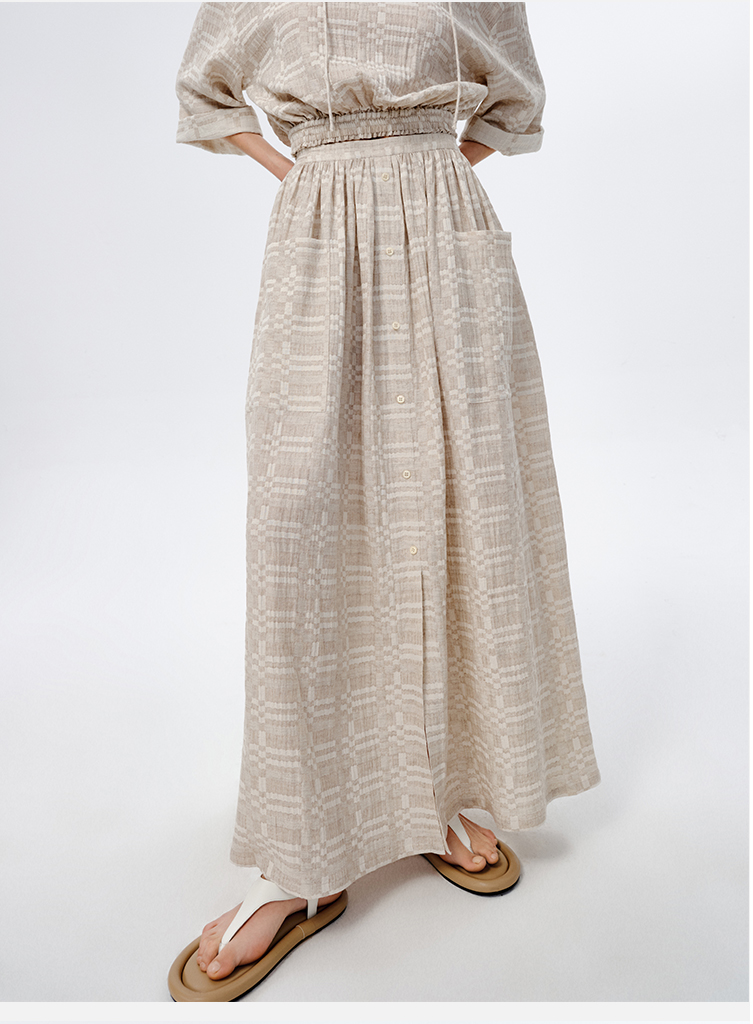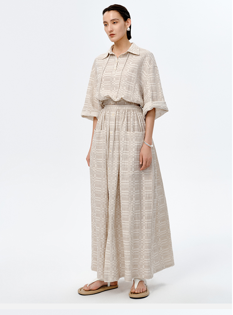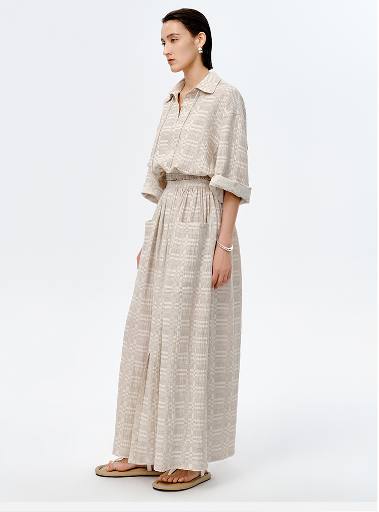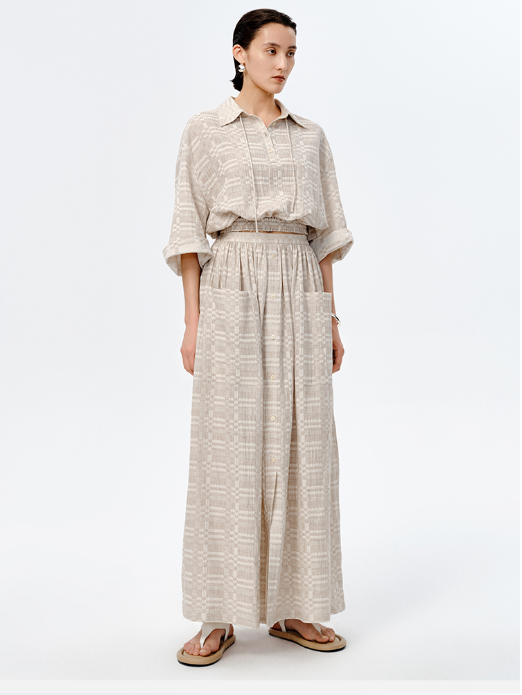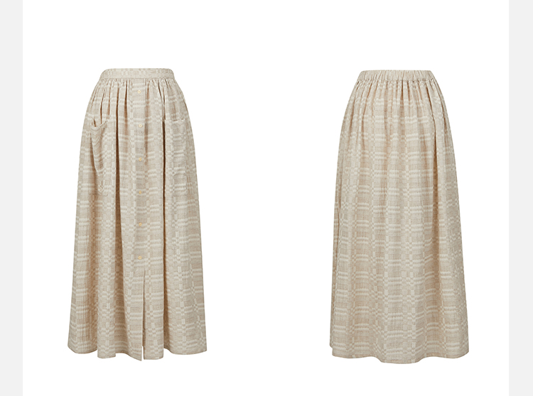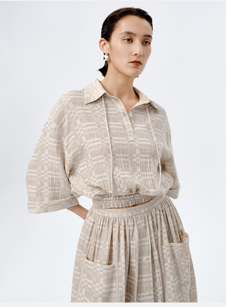 HIDEMI 格纹浮雕色织艺术亚麻套装 衬衫/口袋半裙