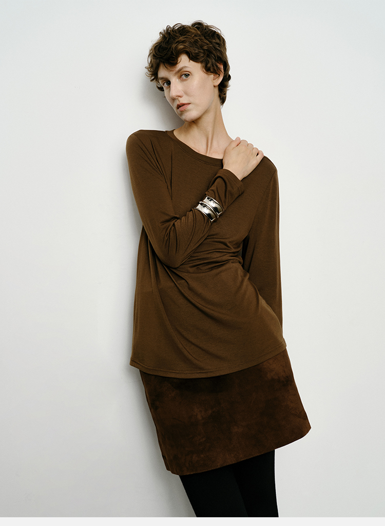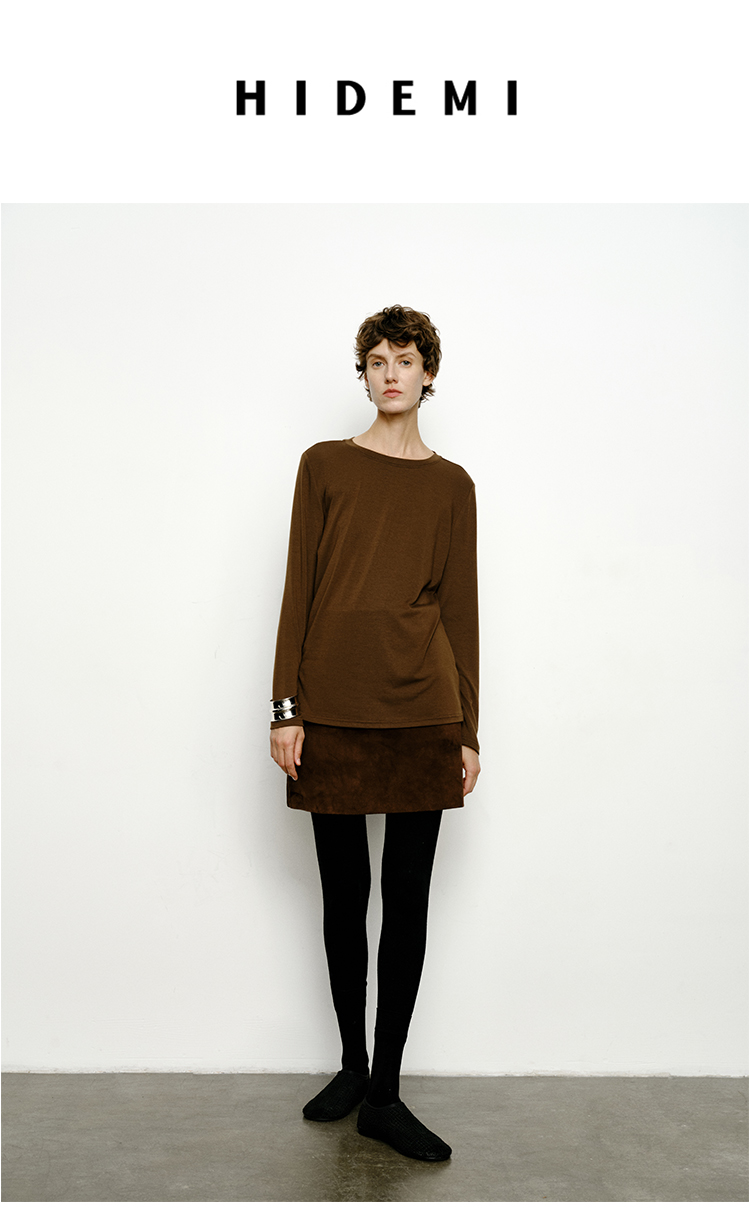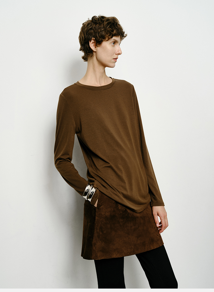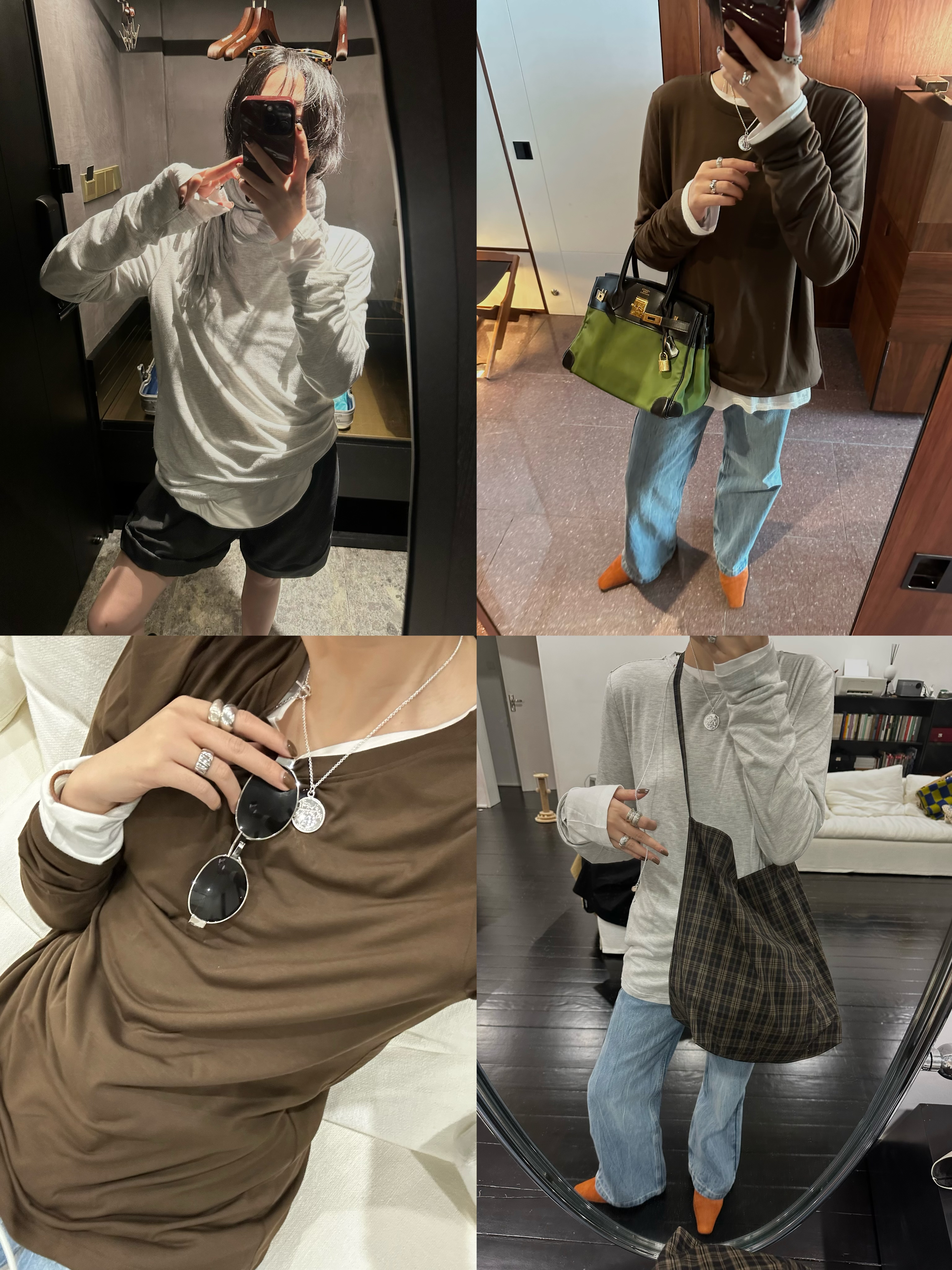 HIDEMI 叠穿神器 极简圆领超软糯宽松廓形长袖亲肤长袖T恤 巧克力色/浅灰色/黑色/白色