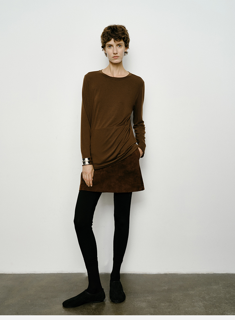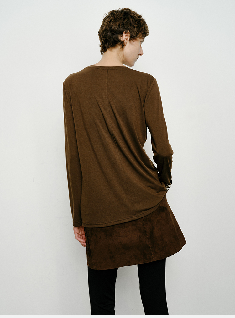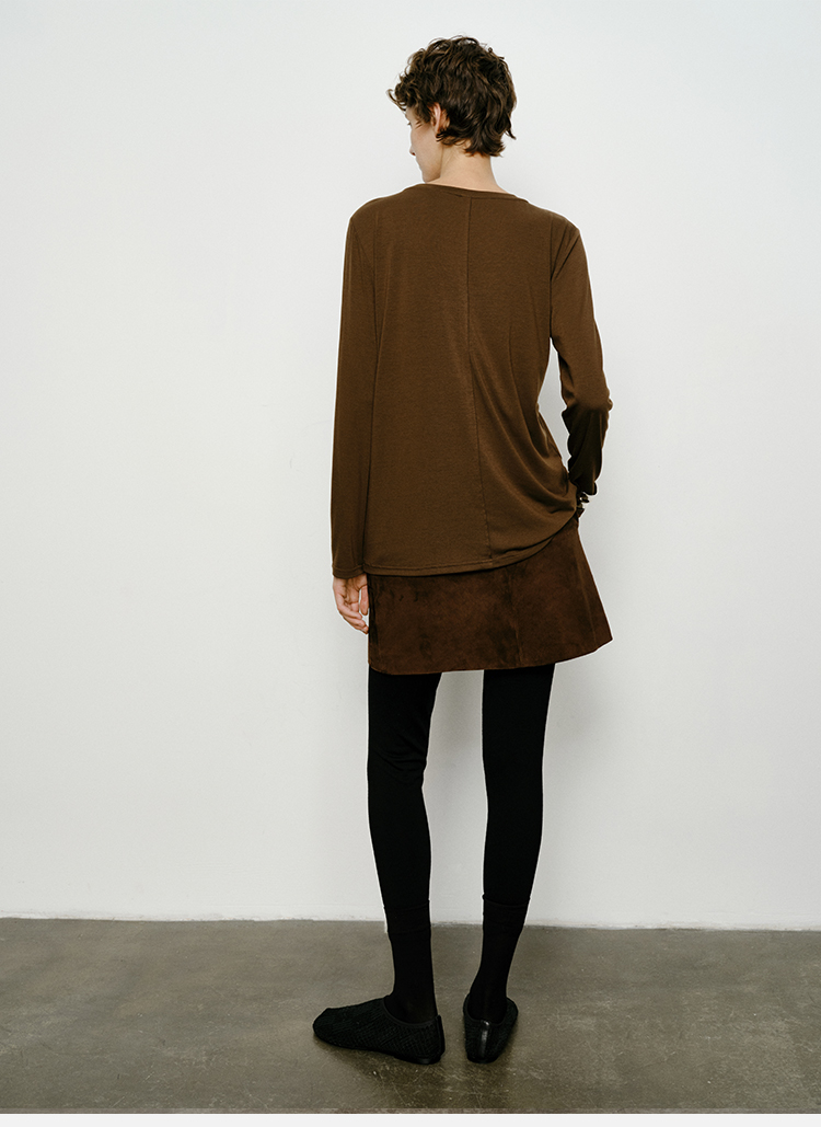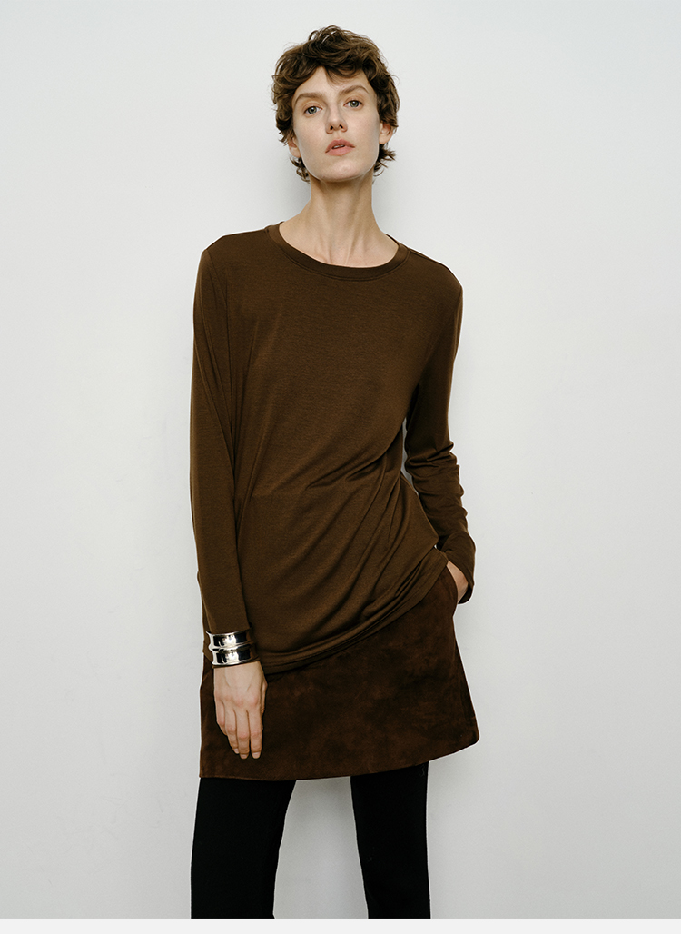 HIDEMI 叠穿神器 极简圆领超软糯宽松廓形长袖亲肤长袖T恤 巧克力色/浅灰色/黑色/白色