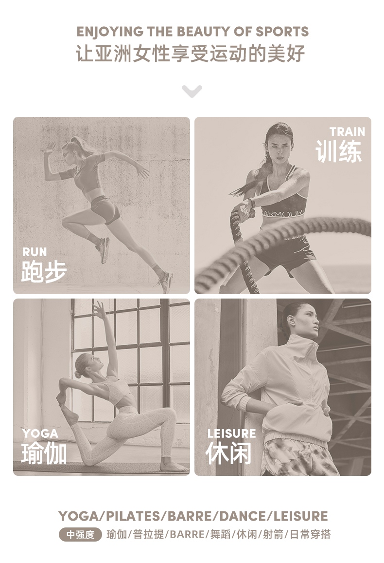 IYOGA品牌的产生源于对瑜伽以及各种运动的热爱, 并努力把瑜伽运动的理念,融入于服装的每一个细节与每一个工艺之中。我们的设计结合了瑜伽运动,休闲时尚,健身跑步等因素,让服装对运动起到良好的保护。