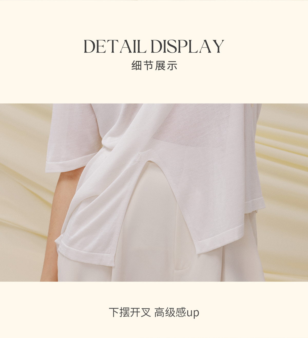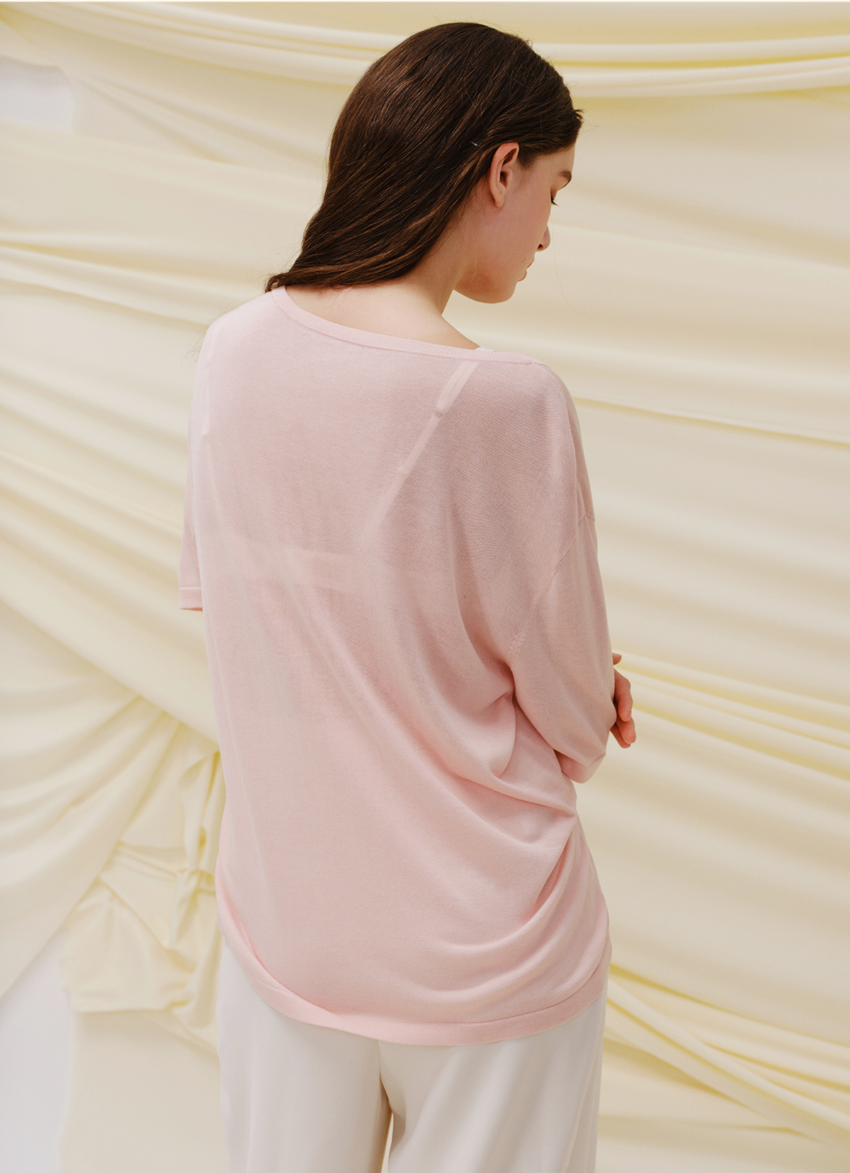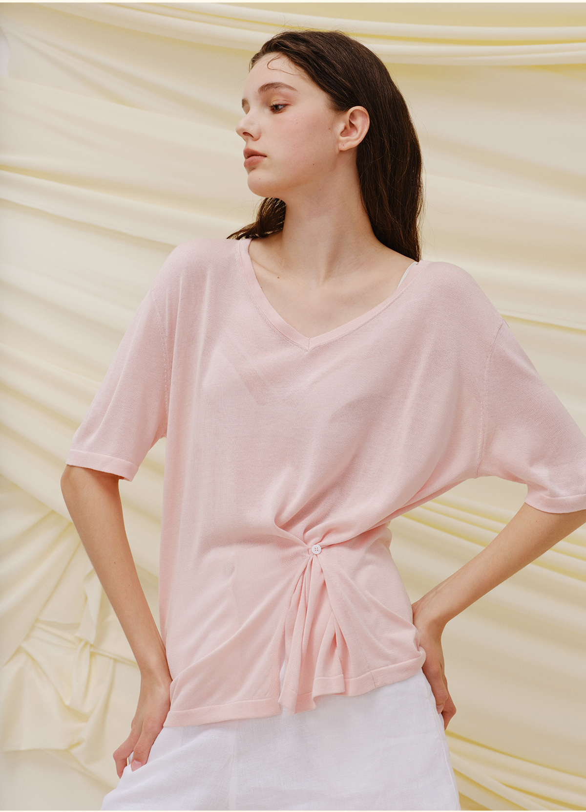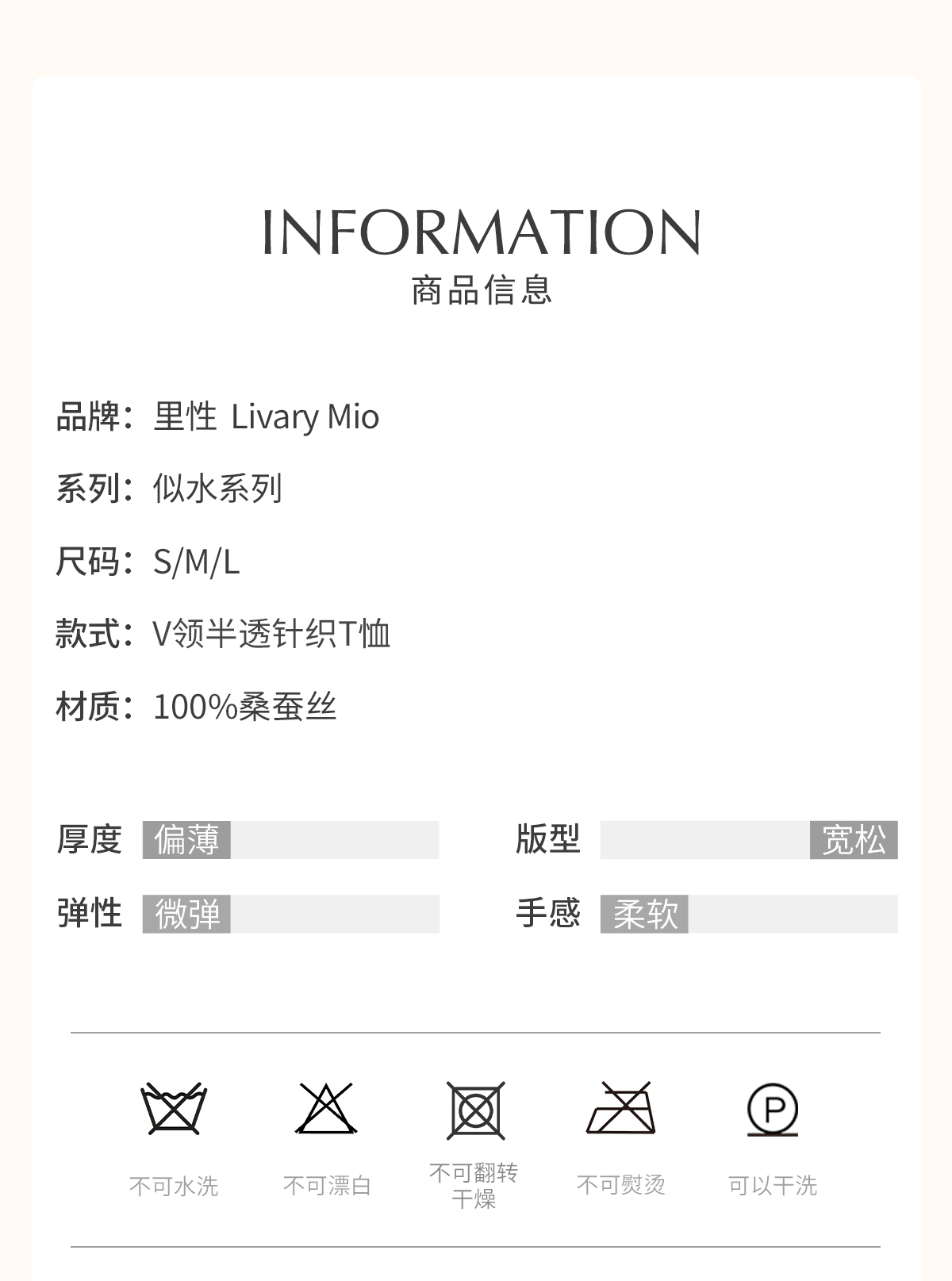 里性 LIVARY MIO 似水-Watery V领半透真丝针织T恤不规则下摆短袖