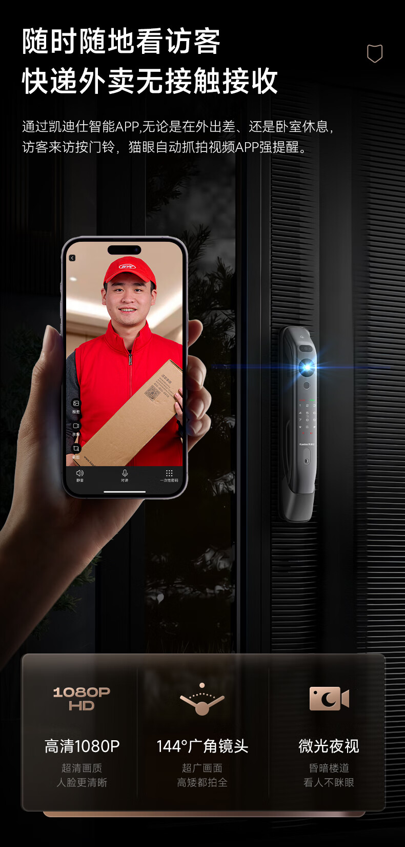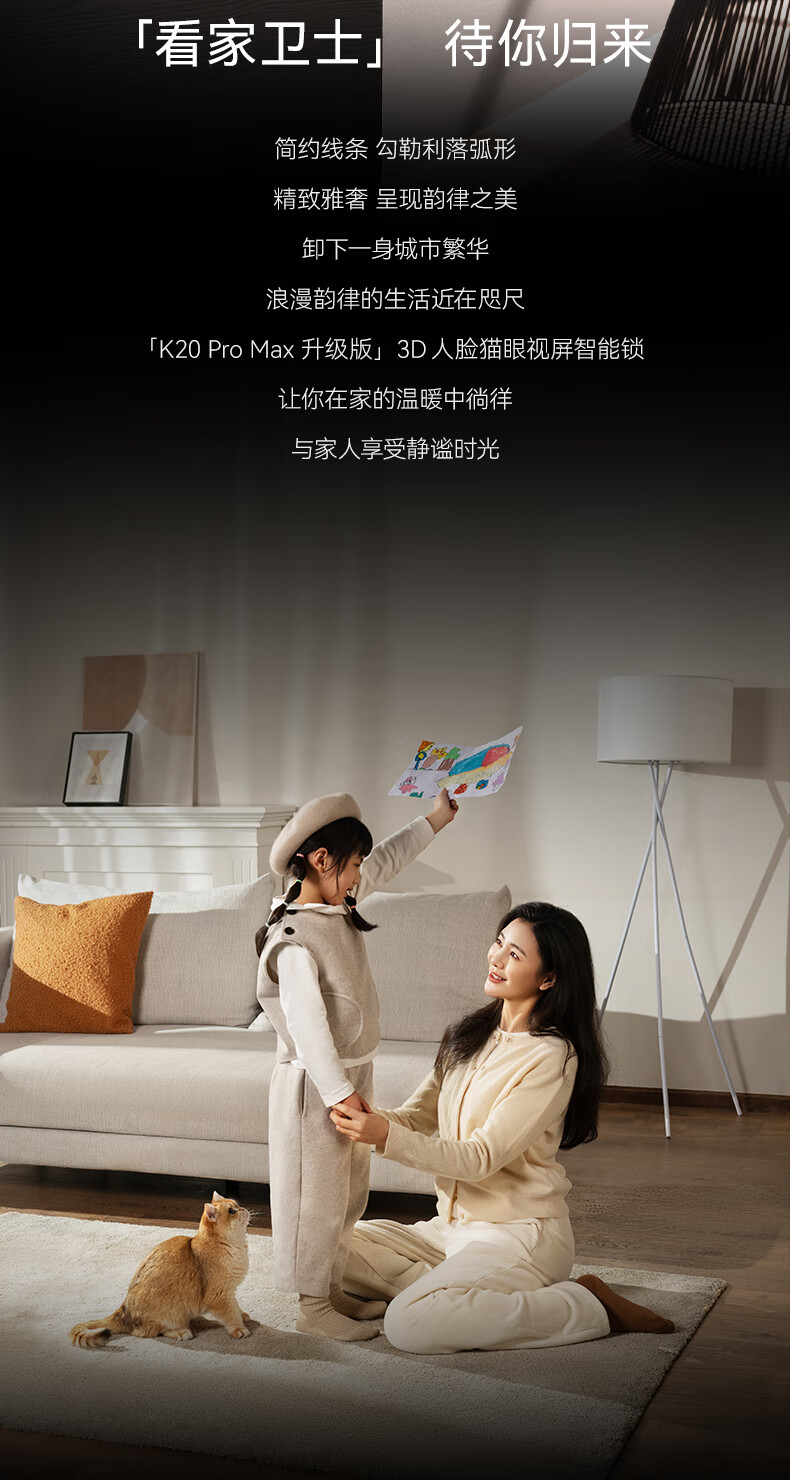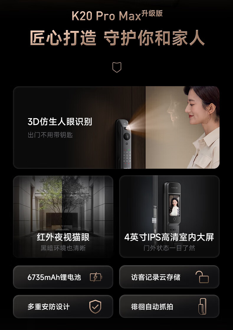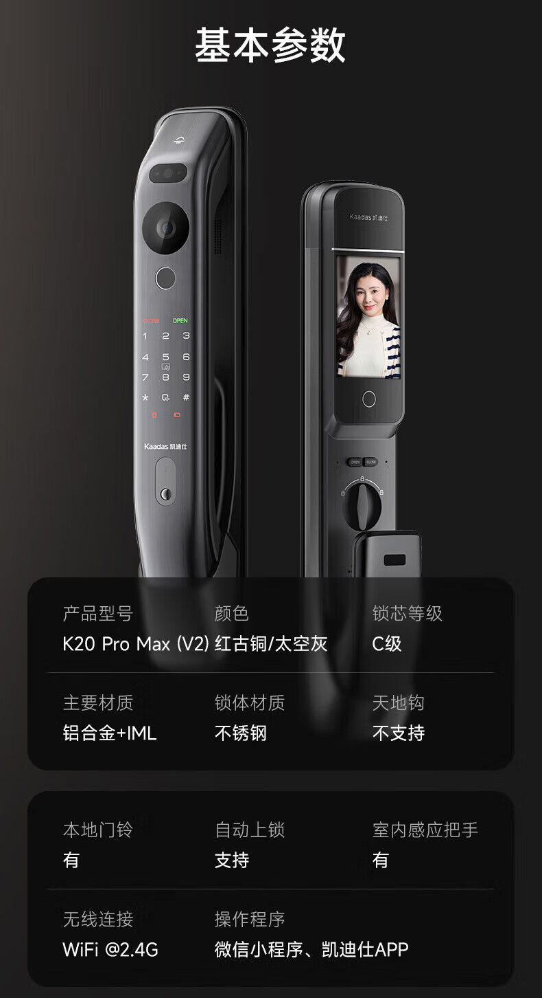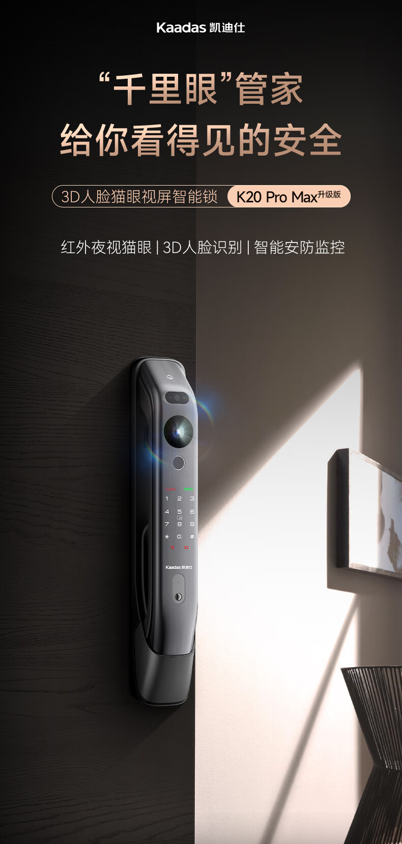 凯迪仕(kaadas)智能锁K20 Pro Max升级版3D人脸大屏监控 智能门锁 指纹锁 太空灰