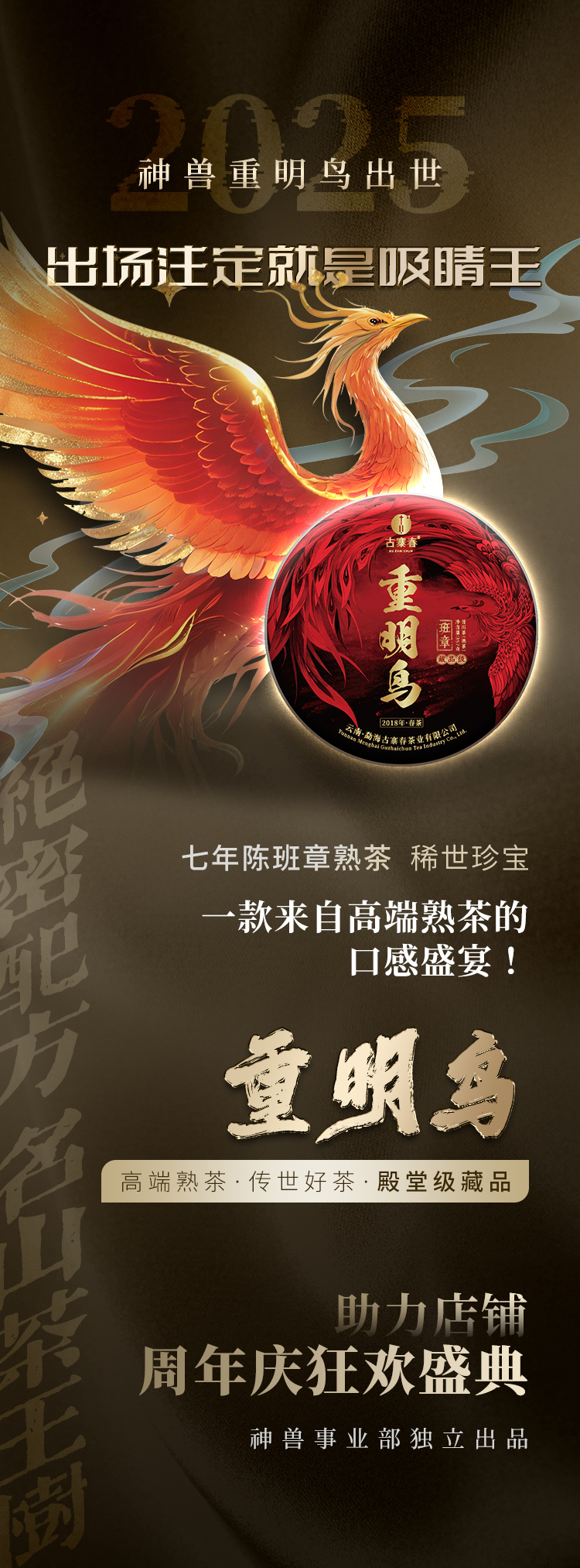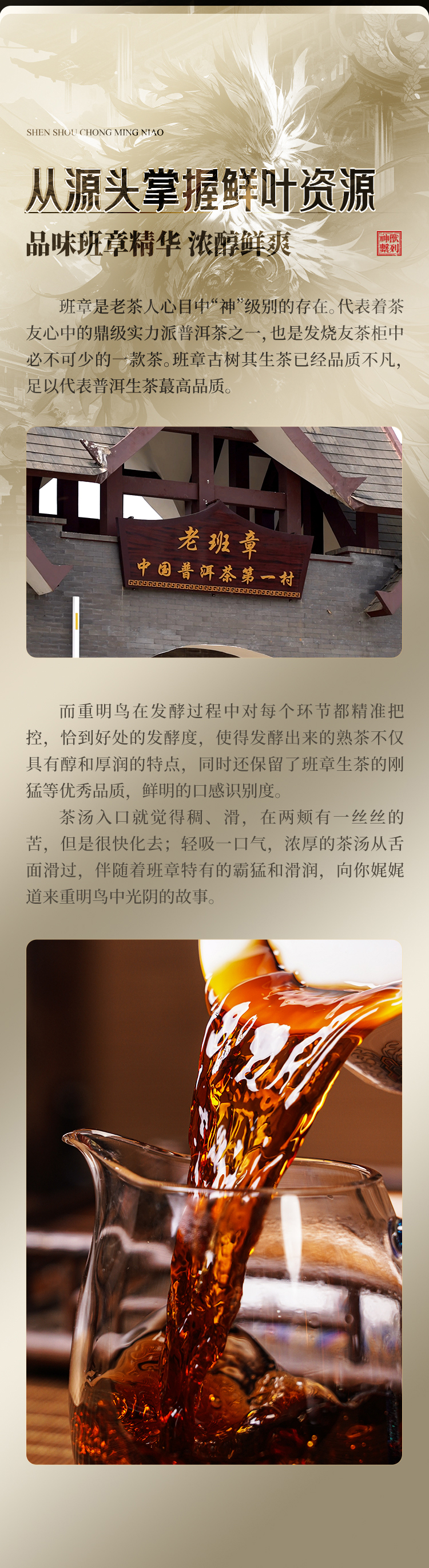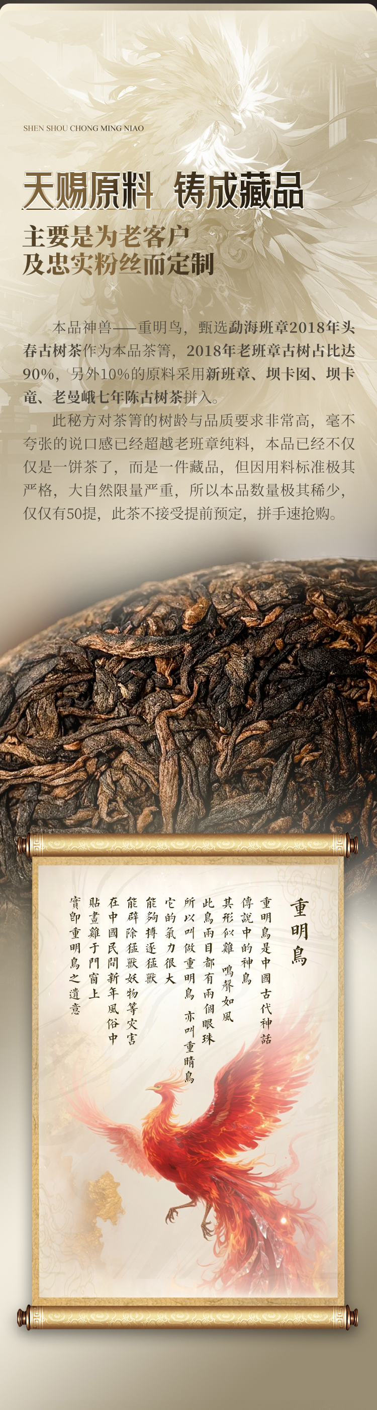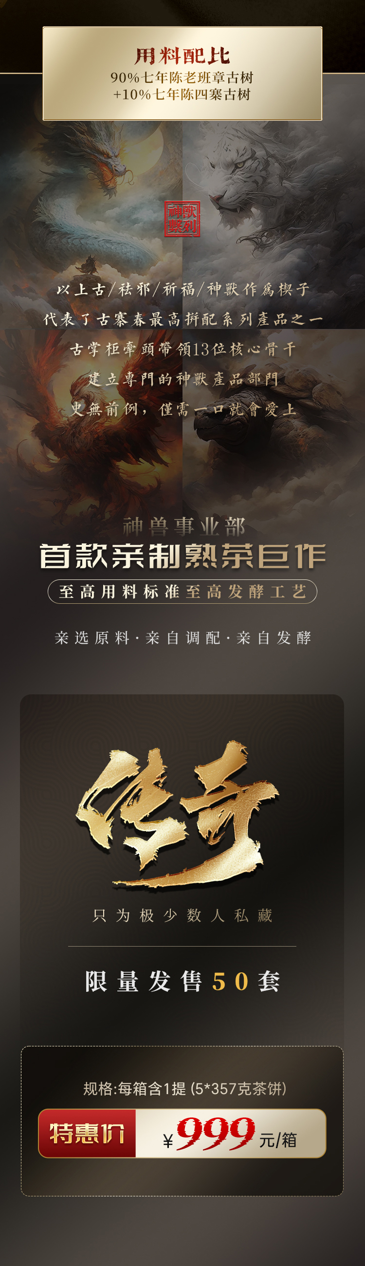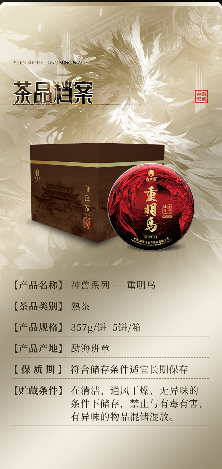 最后几提!售罄绝版【神兽重明鸟】7年陈班章高端熟茶,神兽事业部亲制首款熟茶,品味班章精华浓醇鲜爽,357克/饼*5