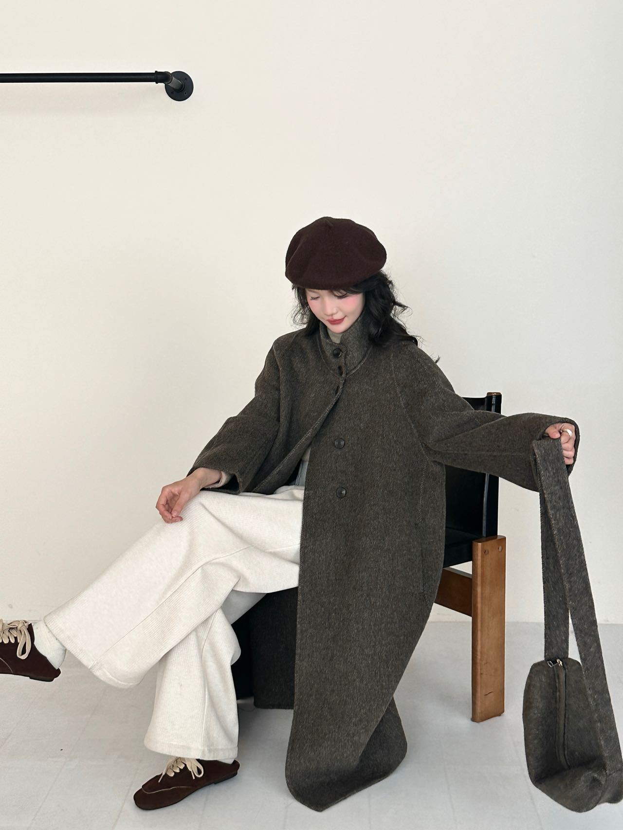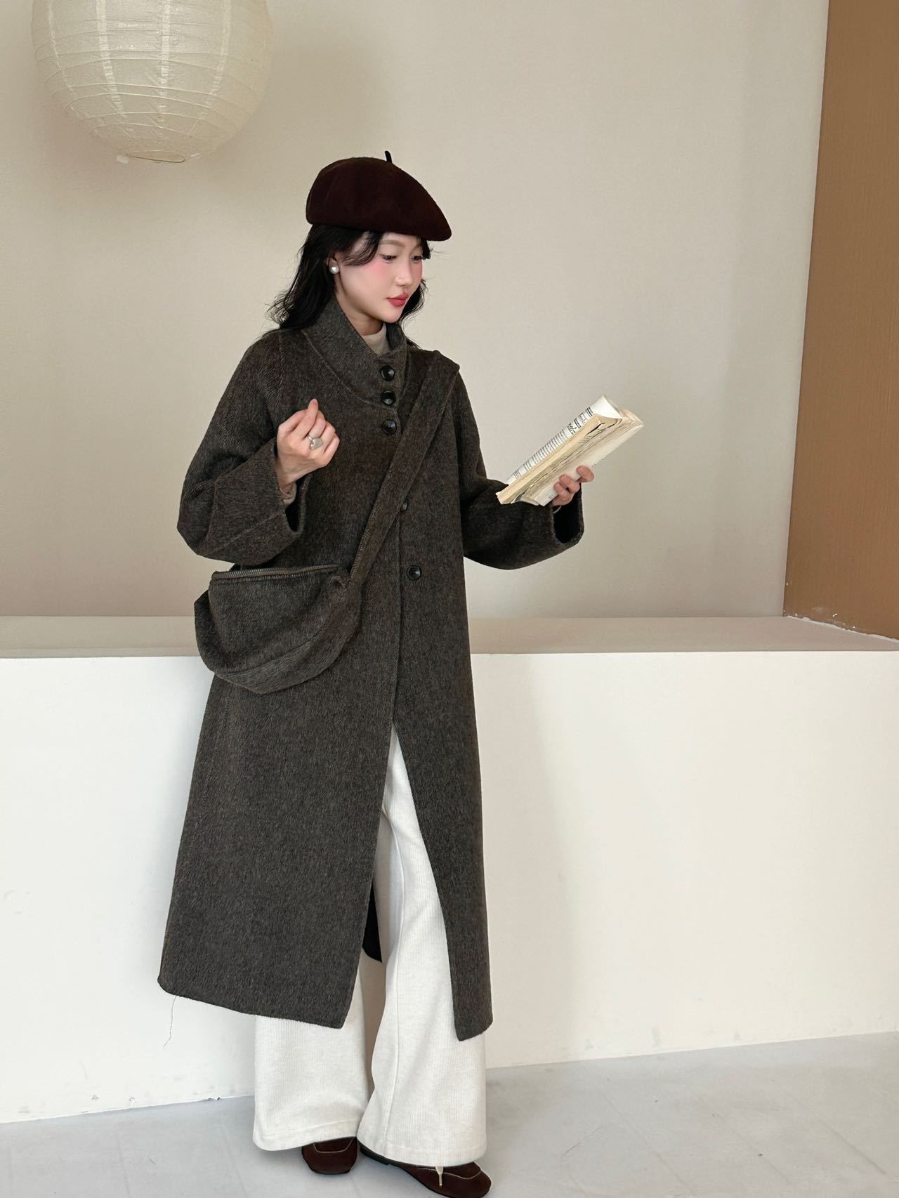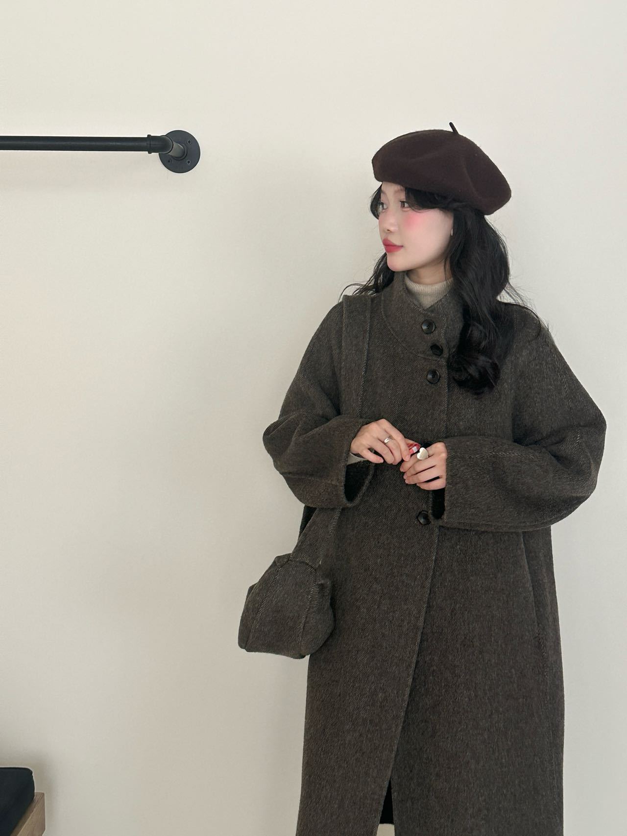 【YW】无忧购秋冬韩版送包包两件套韩系减龄宽松型呢子大衣(截单后3-5天发货)