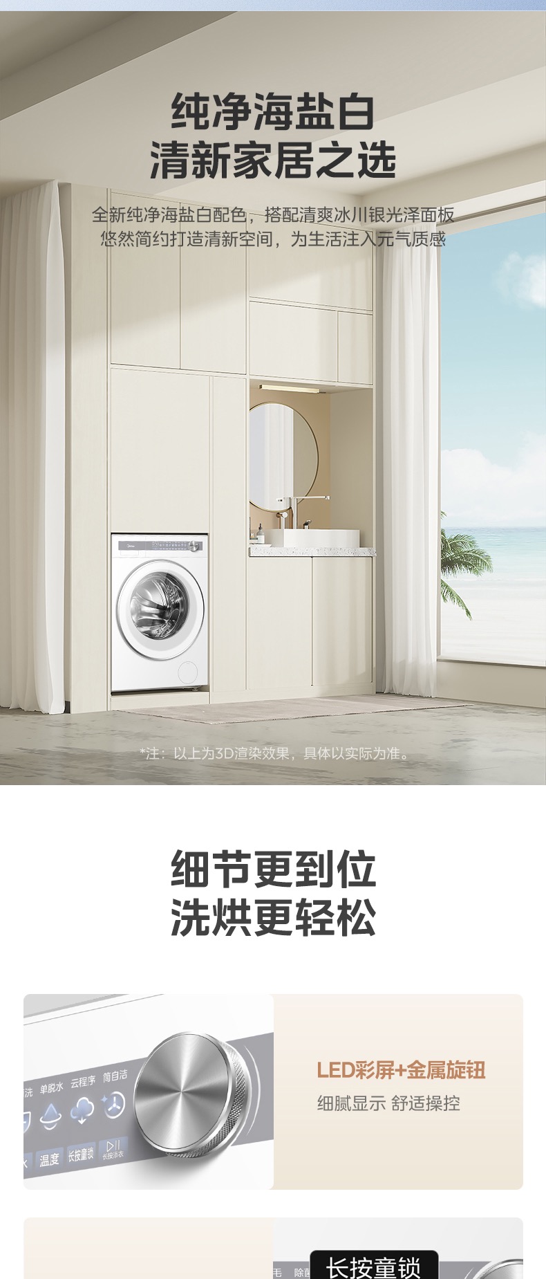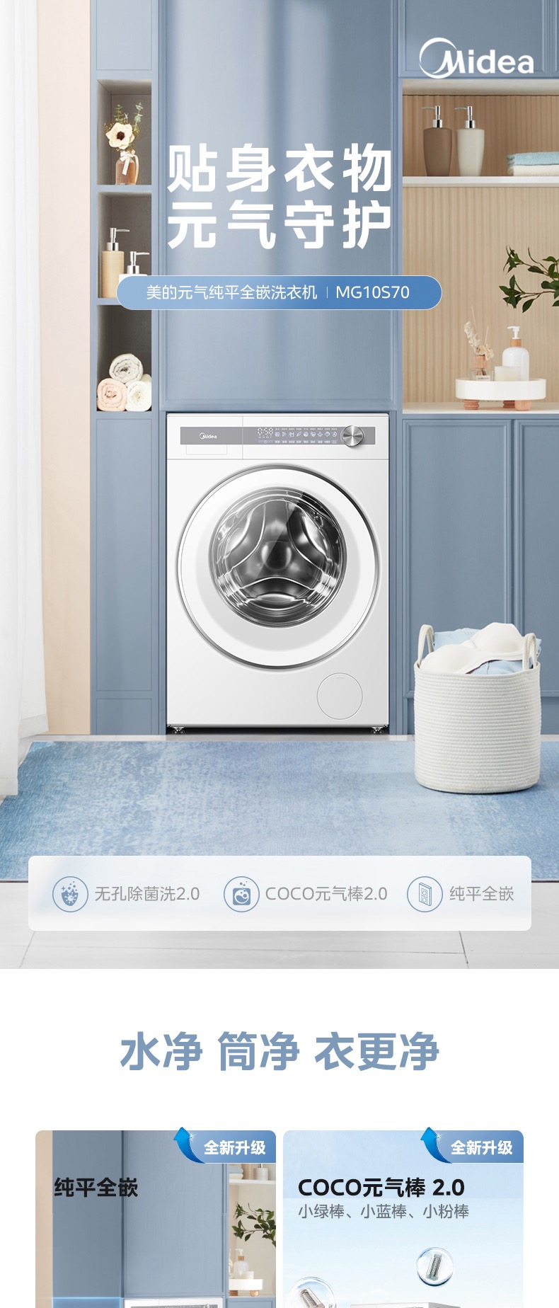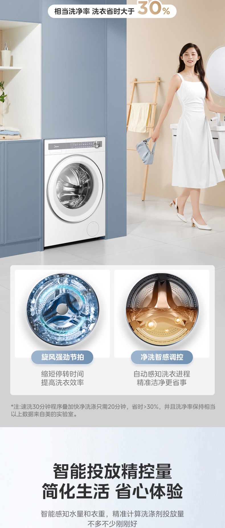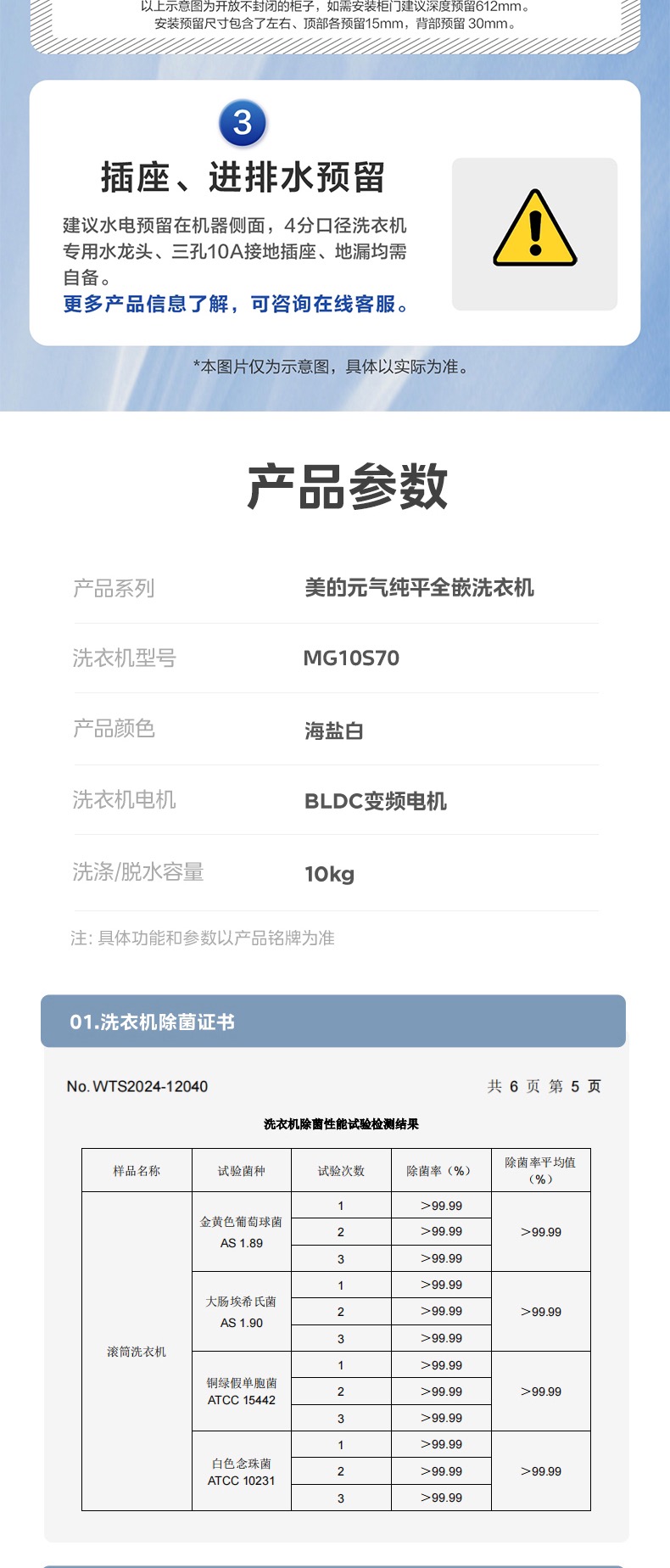 美的(252188)洗衣机 MG10S70 滚筒洗衣机 海盐白 220V,1Ph 50Hz 转速1400 不带银离子