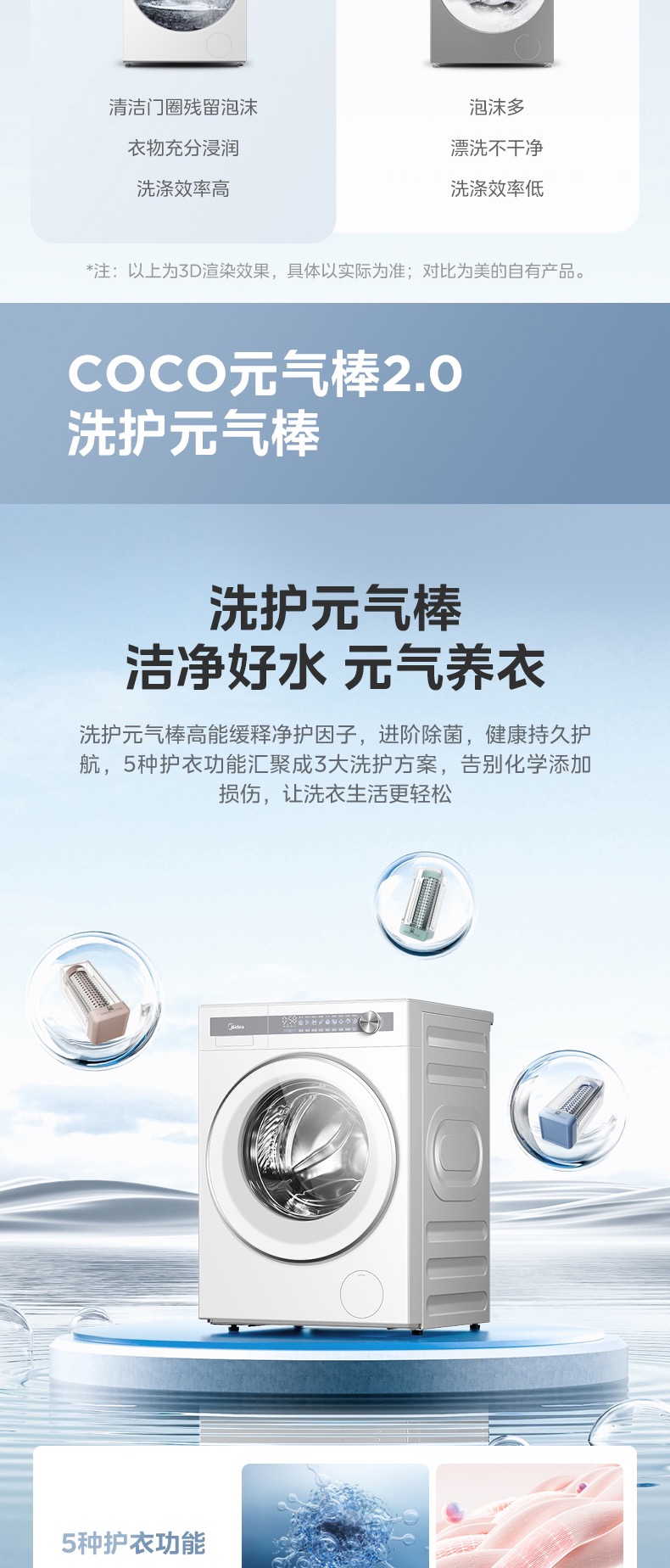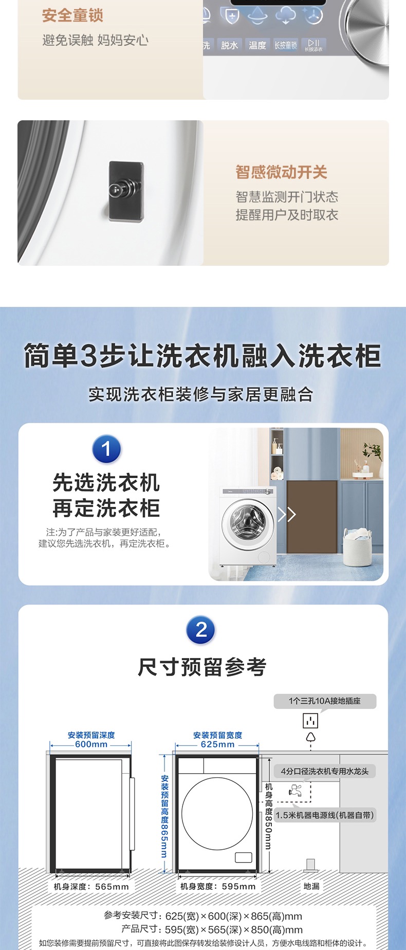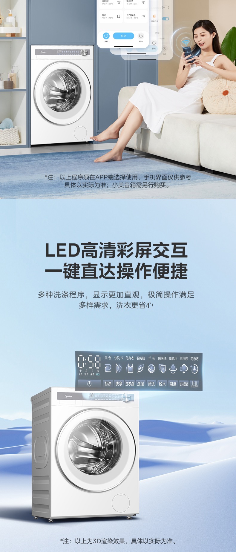 美的(252188)洗衣机 MG10S70 滚筒洗衣机 海盐白 220V,1Ph 50Hz 转速1400 不带银离子