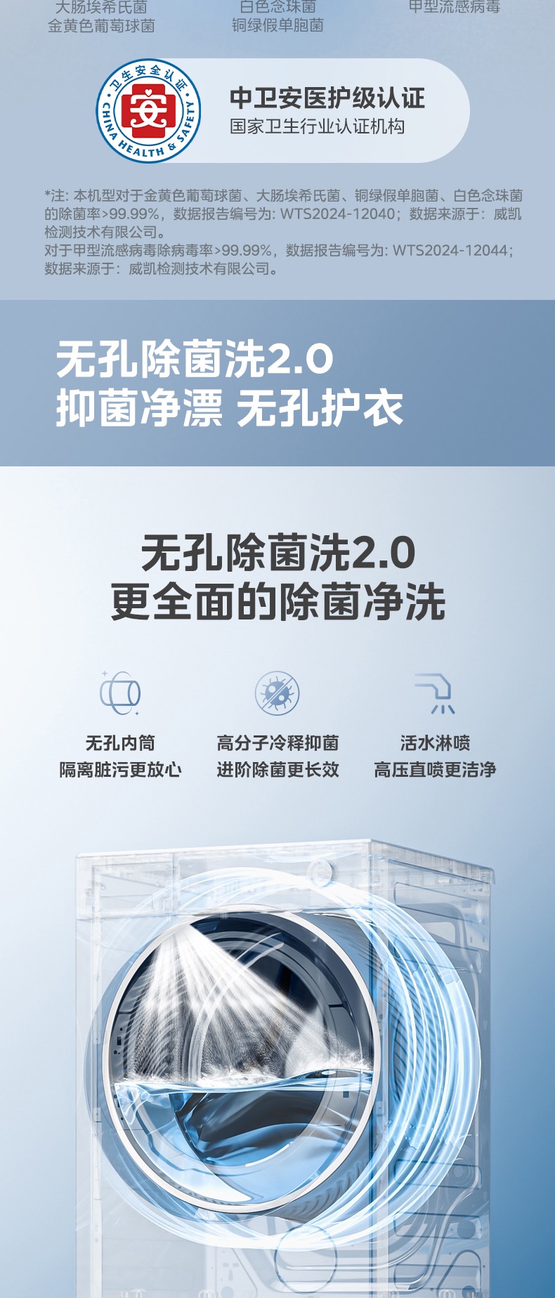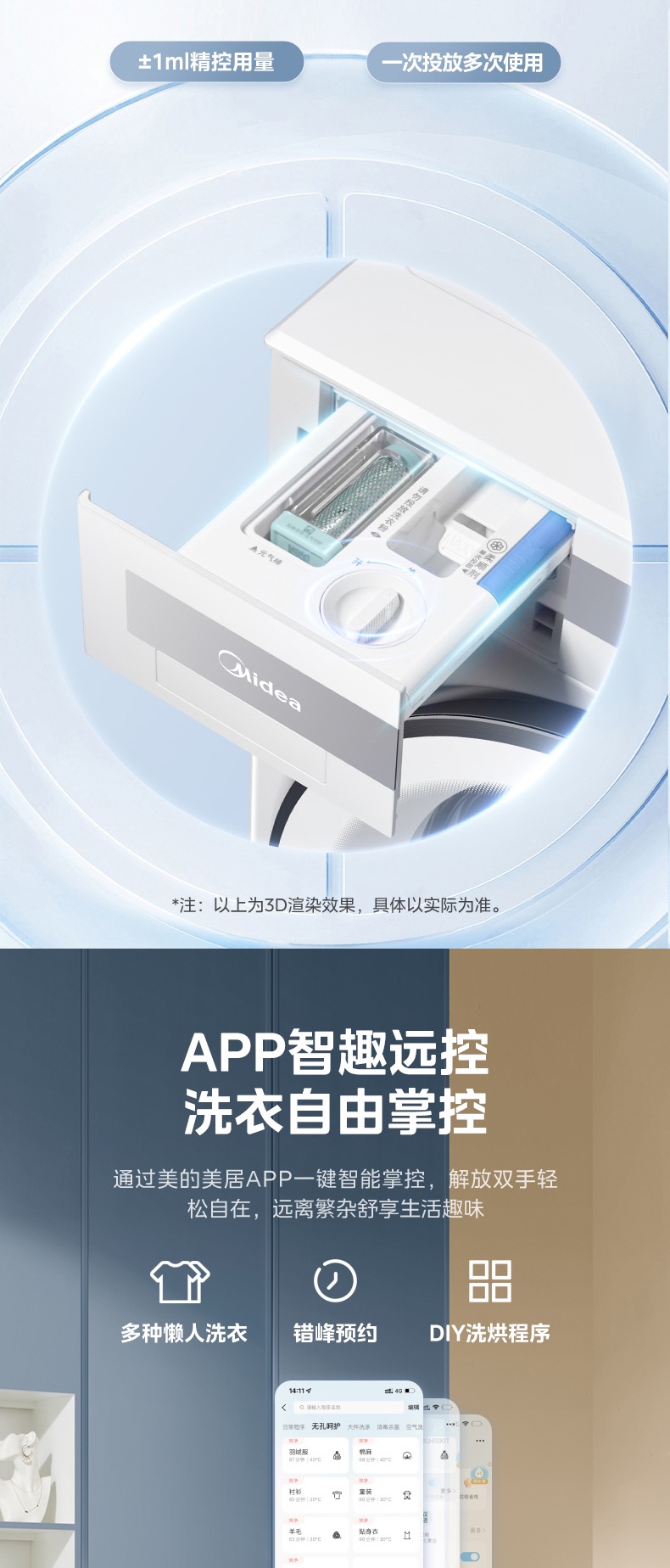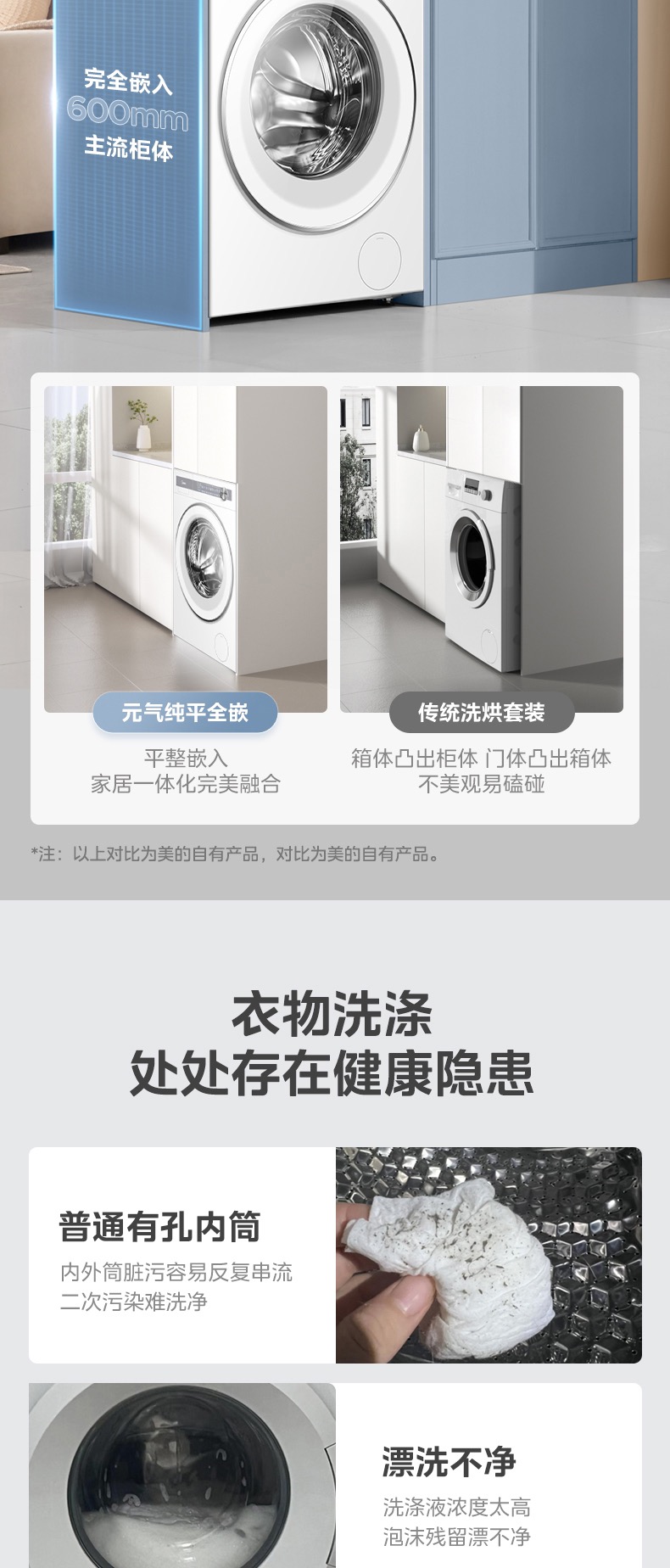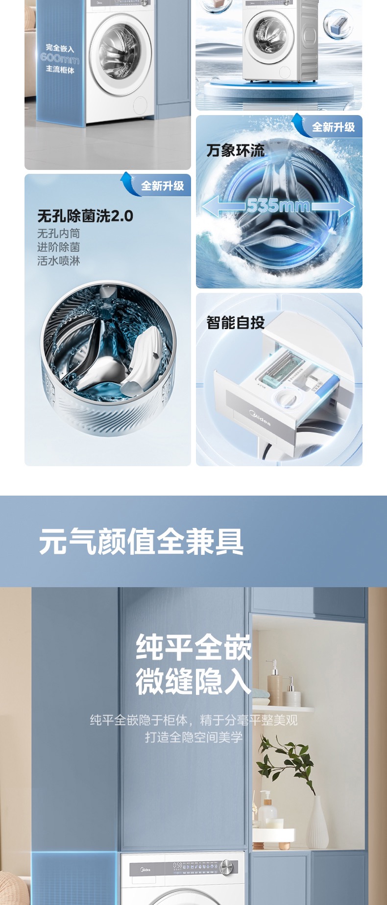 美的(252188)洗衣机 MG10S70 滚筒洗衣机 海盐白 220V,1Ph 50Hz 转速1400 不带银离子