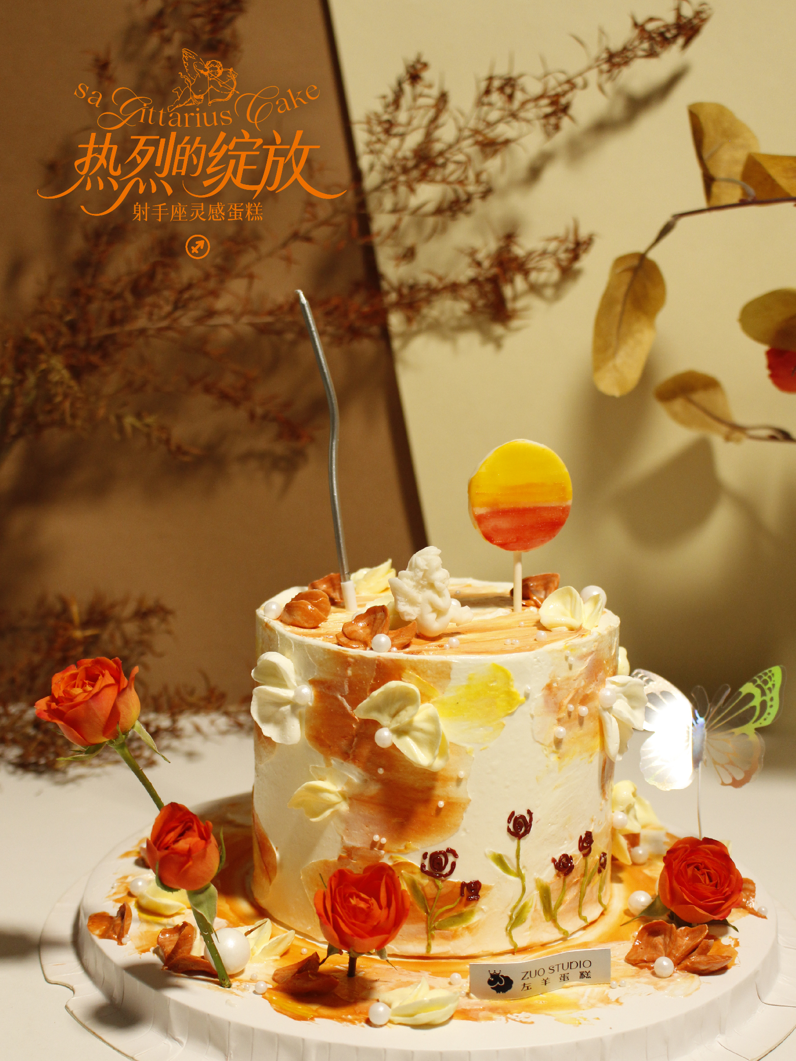 射手座灵感蛋糕【热烈的绽放】1.5磅 香草奶油芒果夹心口味 | 左羊