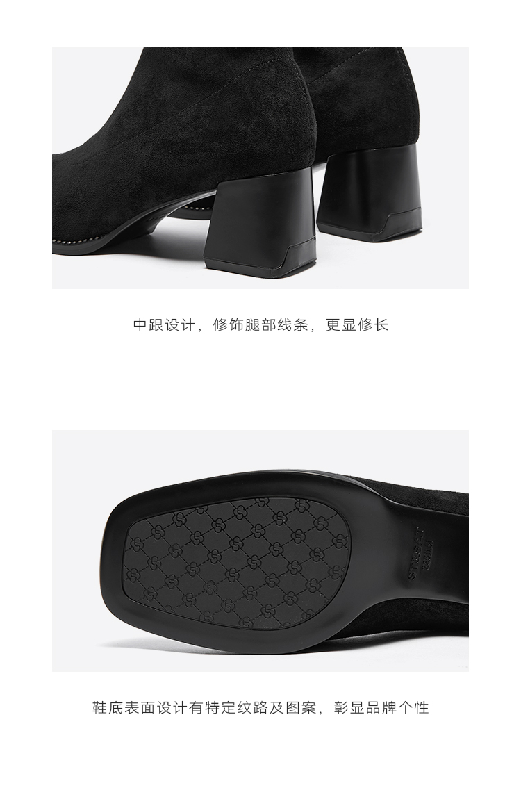 星期六质感绒面显瘦百搭粗跟短靴SSC4116413