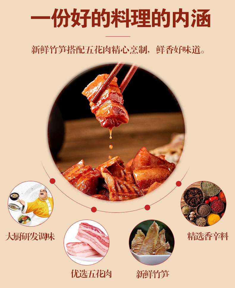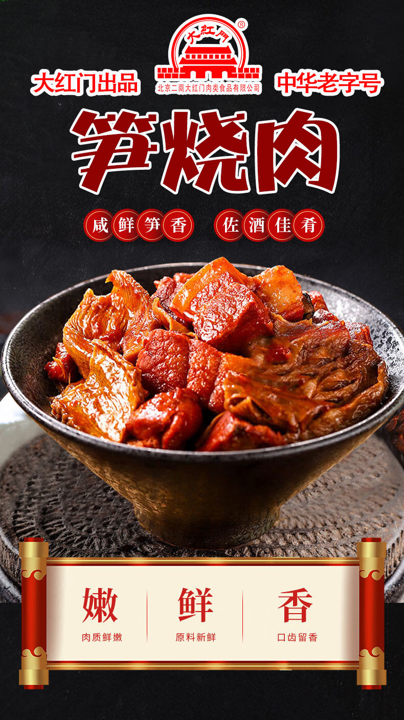 大红门笋烧肉,10袋组合,国企二商集团出品,中华老字号,精选新鲜竹笋、五花肉匠心制作,竹笋脆嫩营养丰富,肉质软烂,入口鲜香回味,醇香满口,令人食欲大开M