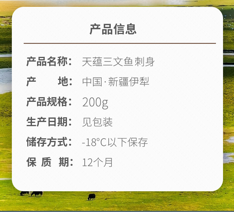 【规格】刺身200g/盒、鱼段200g/盒、鱼片100g/袋