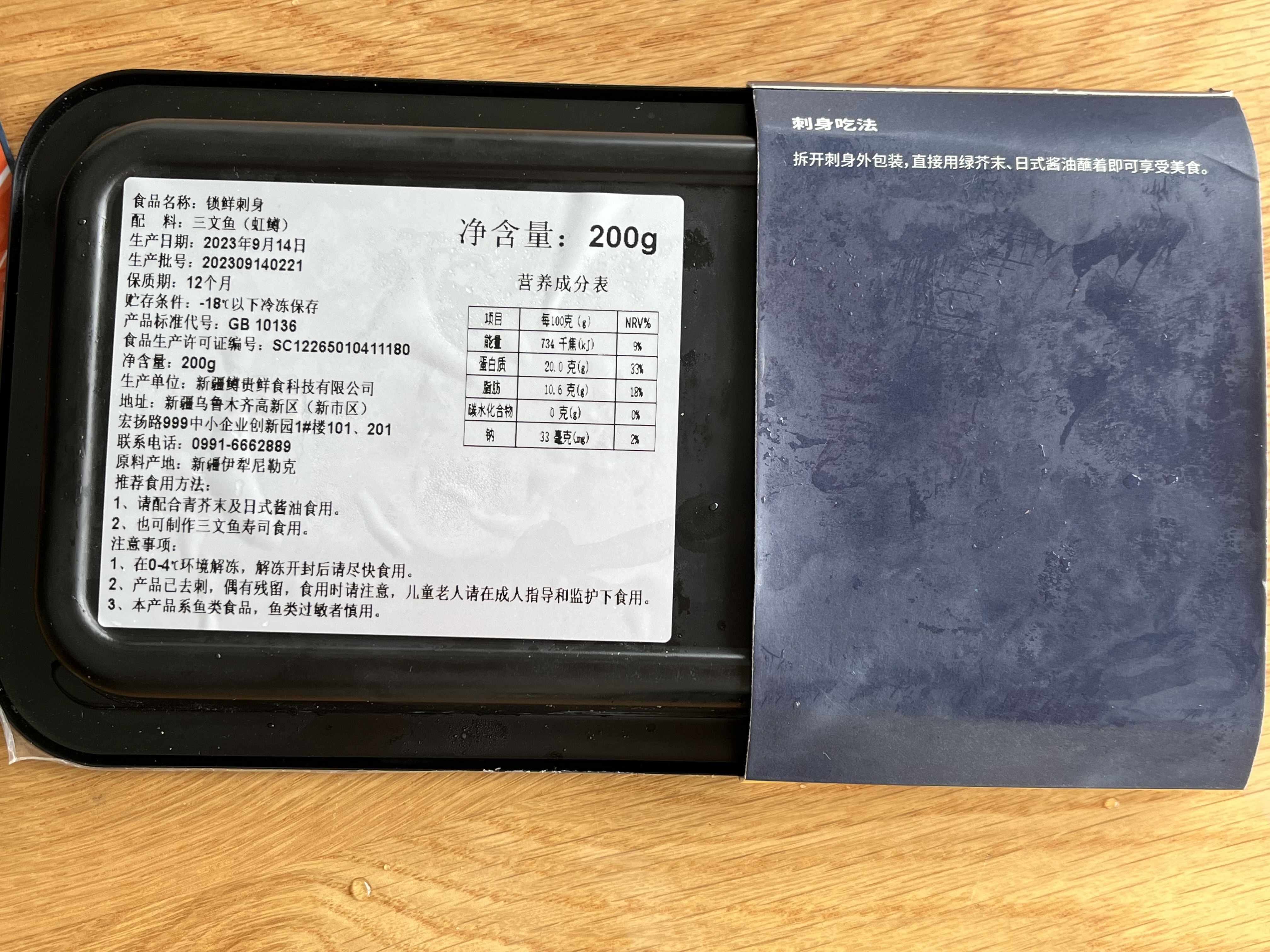 ③关于小刺:三文鱼段为鲜鱼带皮原切,故鱼肉中有小刺,儿童老人请在成人指导和监护下食用,食用时请特别注意;