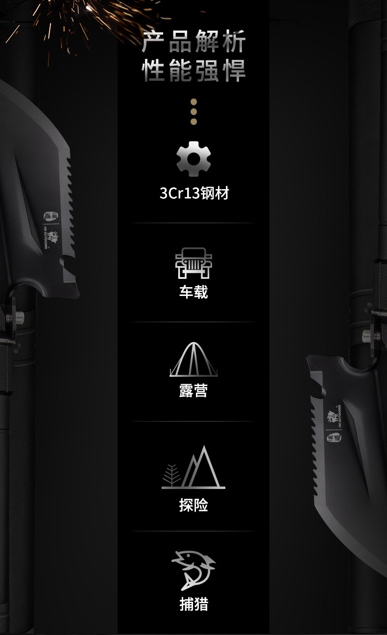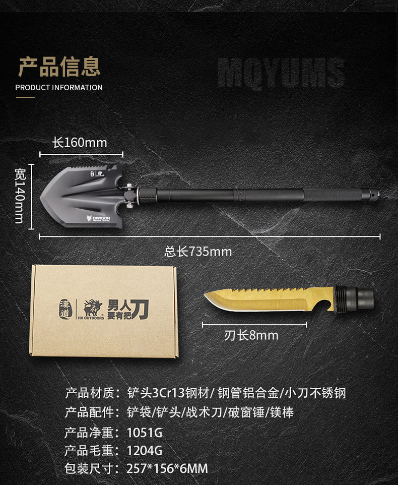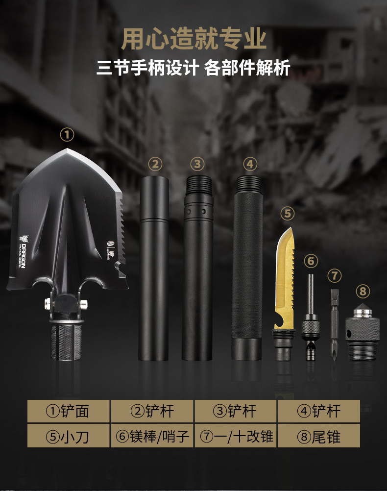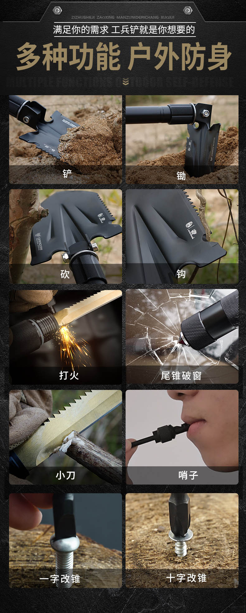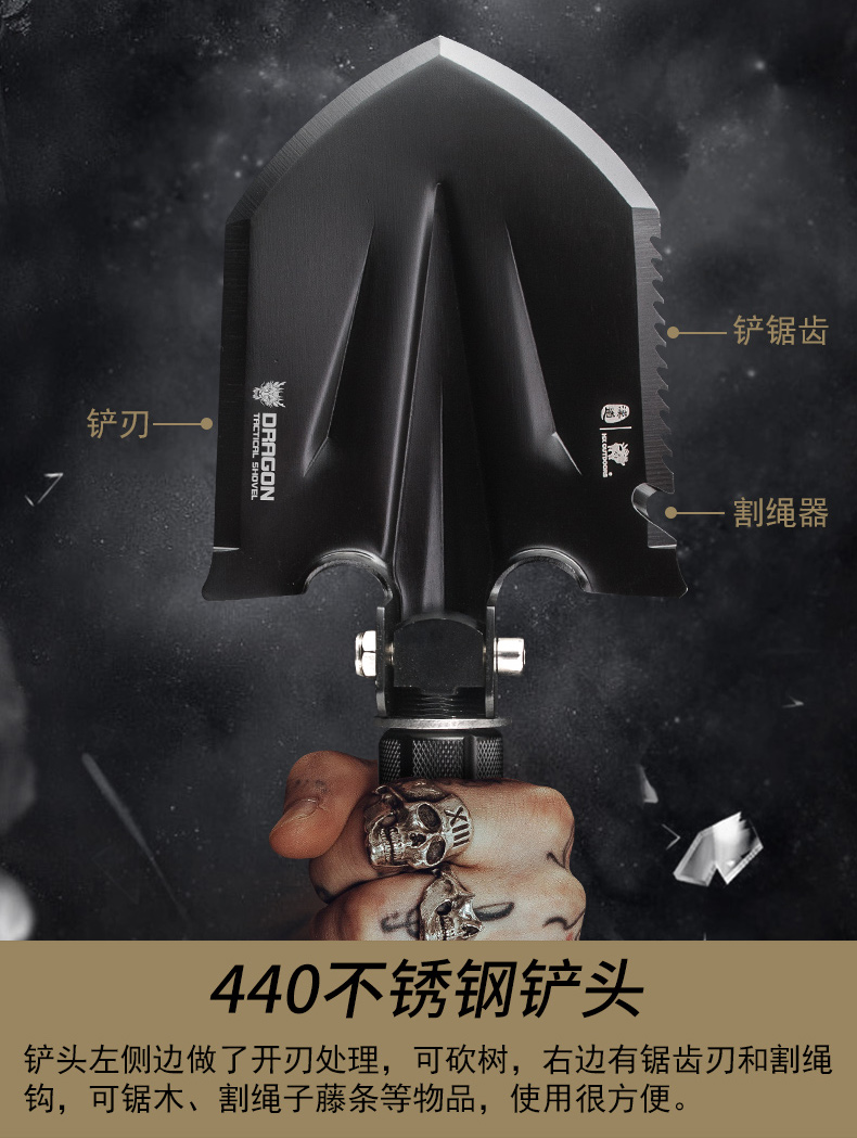 汉道【蛟龙战术铲】中国工兵铲户外多功能铁锹兵工铲军工铲军版