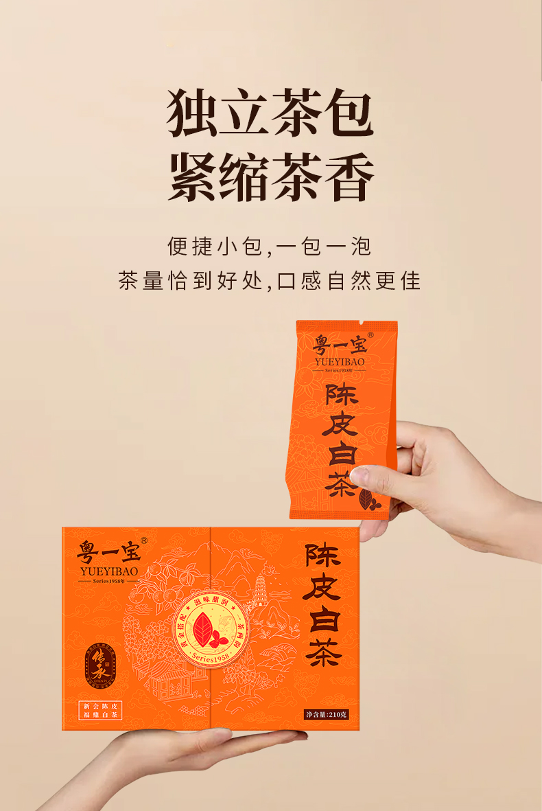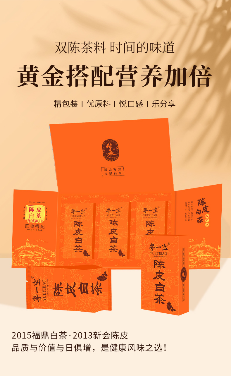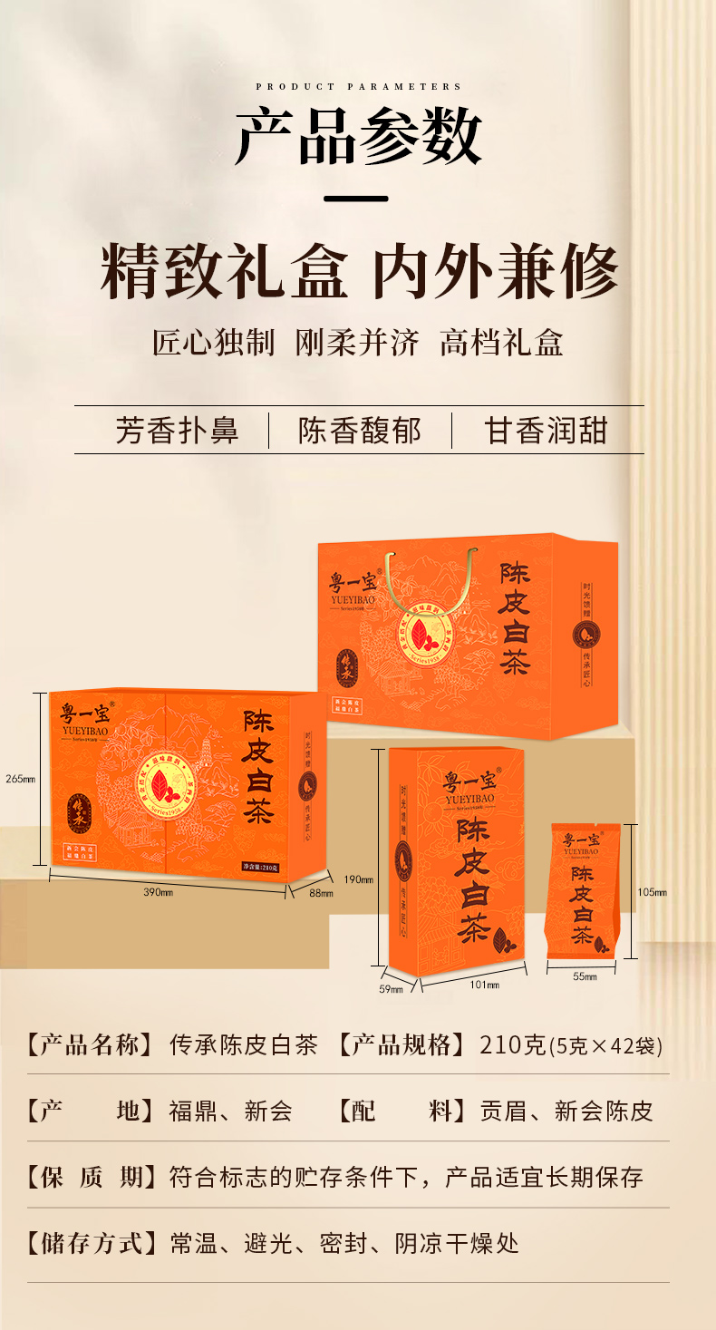 粤一宝 传承陈皮白茶礼盒 福鼎老白茶 新会陈皮 独立装紧压茶叶
