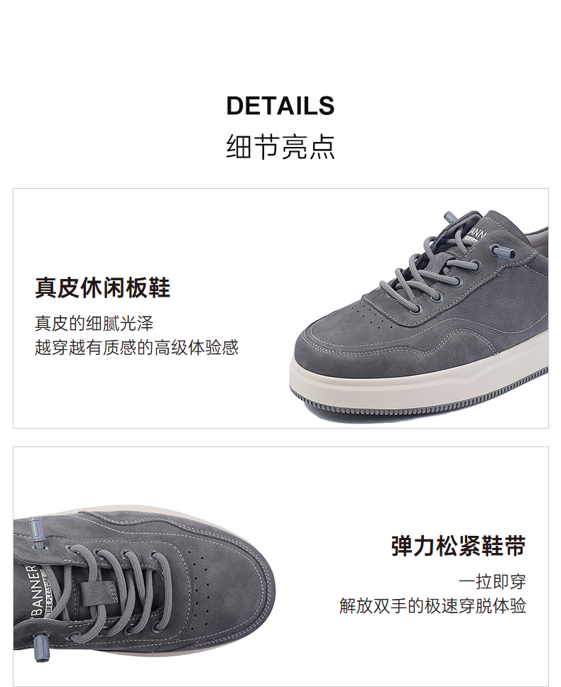 4楼千百度2025秋季真皮板鞋透气真皮鞋垫橡胶大底便穿男鞋A25407573