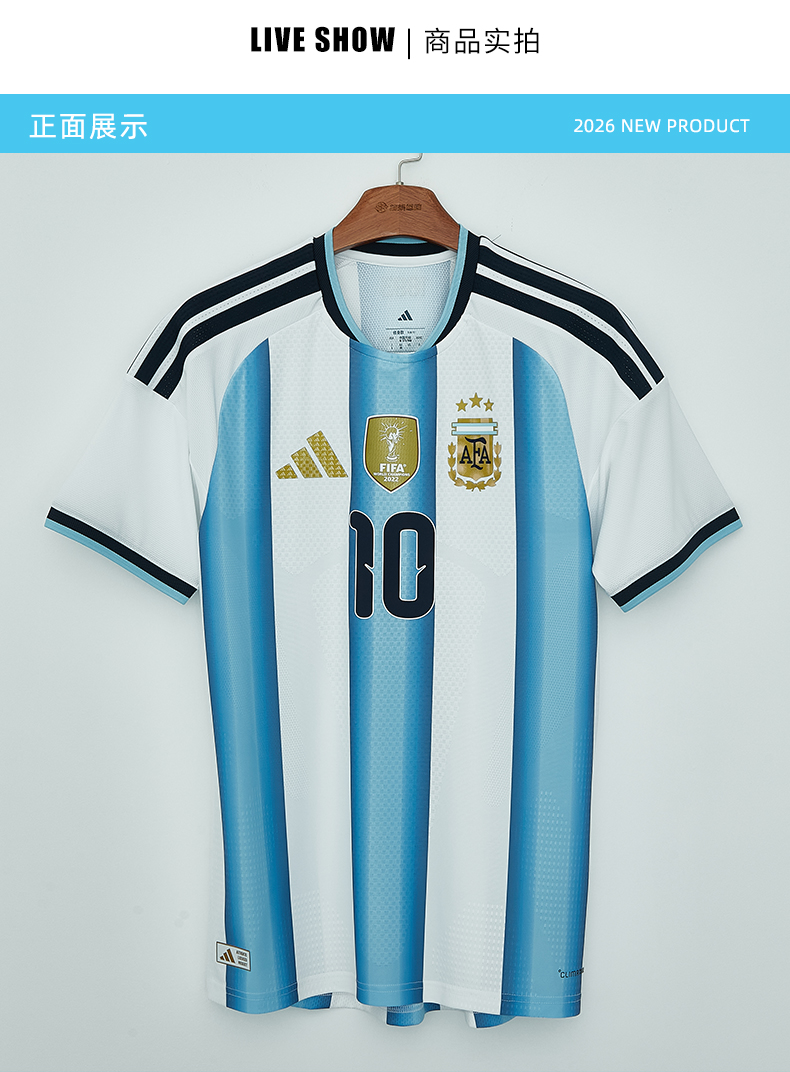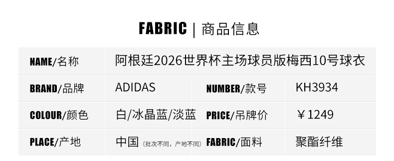 SFS阿迪达斯2026阿根廷主场球员版梅西印号球衣 KH3934