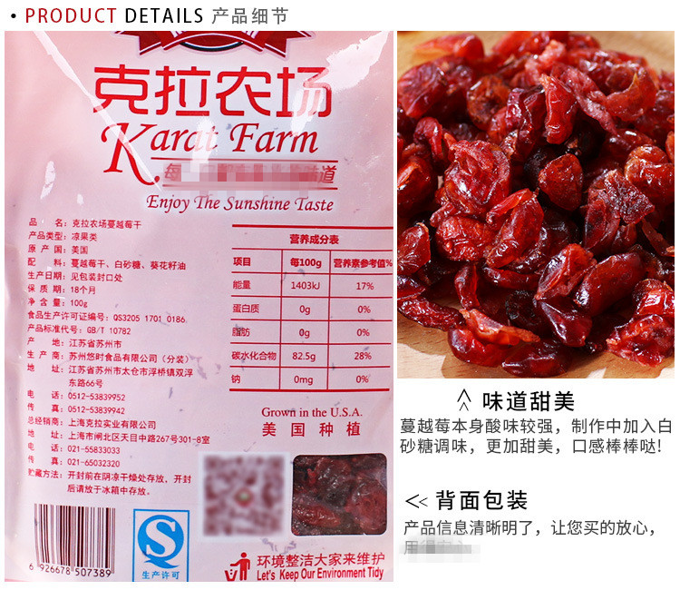 克拉农场蔓越莓干 100g 烘焙 小红莓 蛋糕面包蔓越莓饼干原料