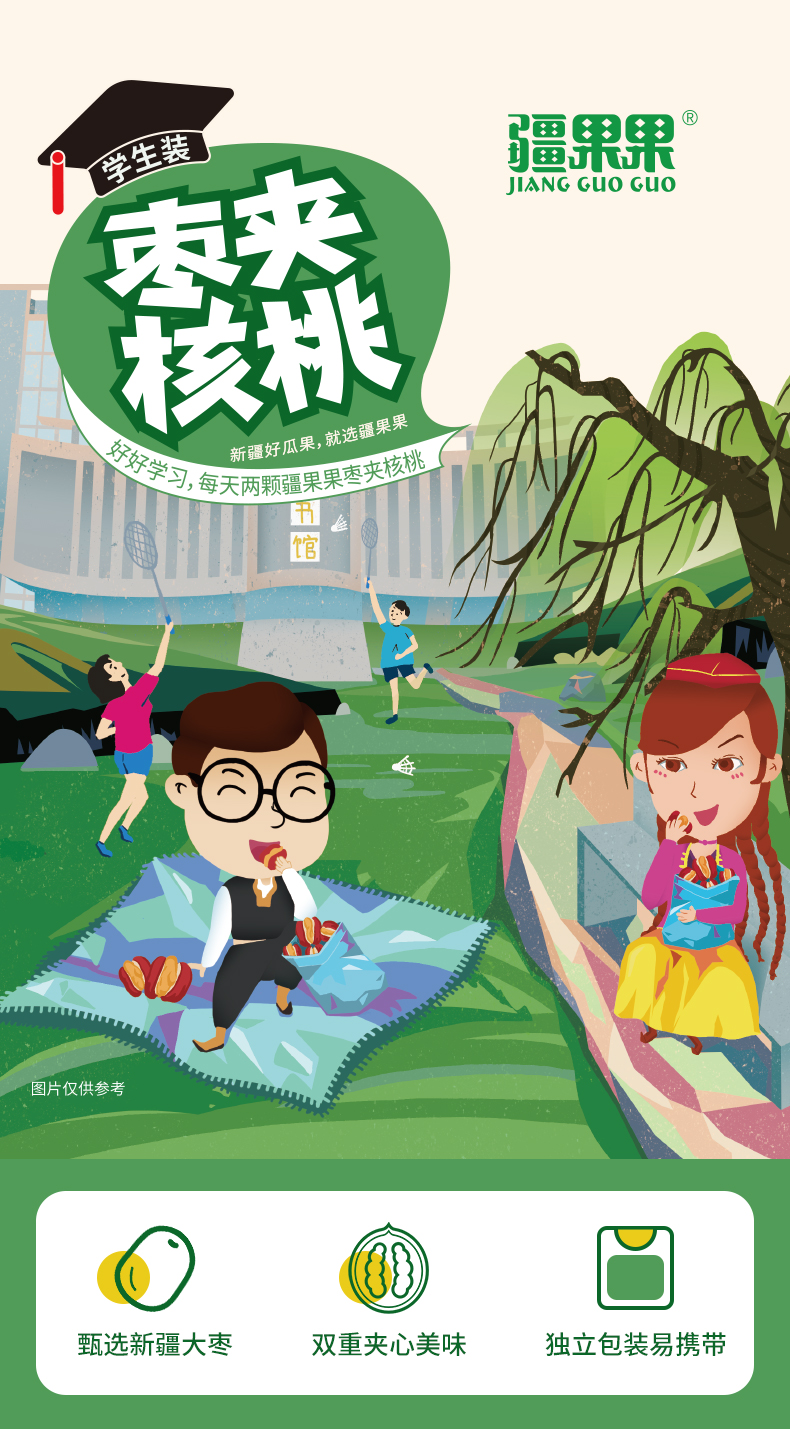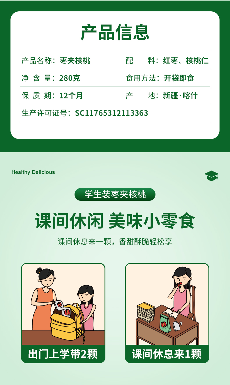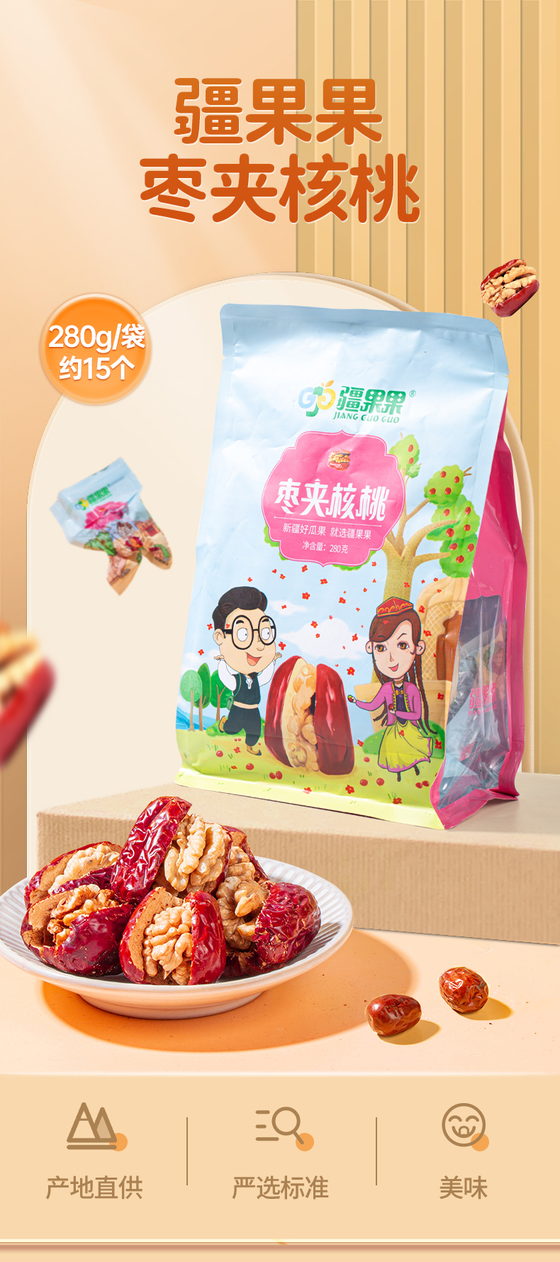 【严选】疆果果零食坚果学生装枣夹核桃仁280g/袋(厂家直发)