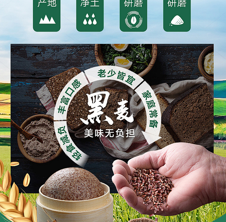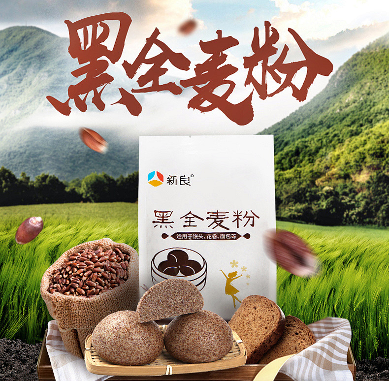 新良黑全麦面粉 500g 含麦麸 馒头花卷包子全麦面粉